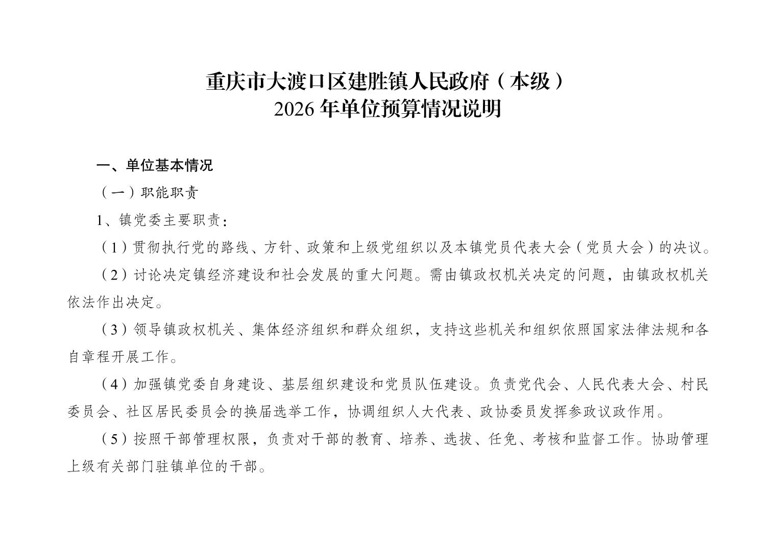 重庆市大渡口区建胜镇人民政府(本级)2026年单位预算情况说明