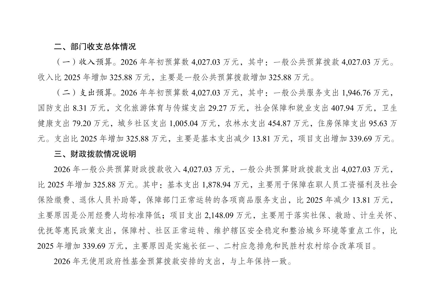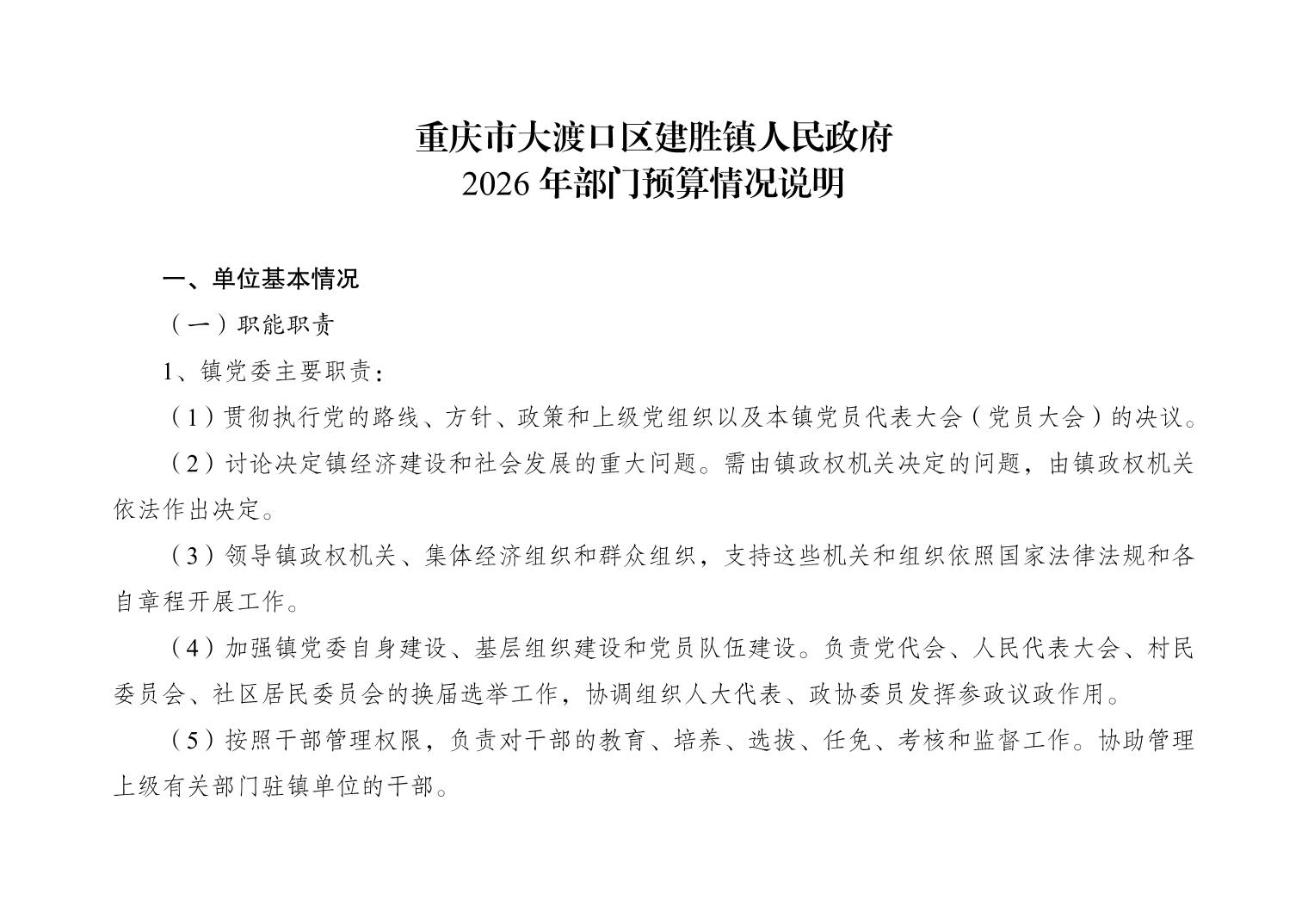 重庆市大渡口区建胜镇人民政府2026年部门预算情况说明