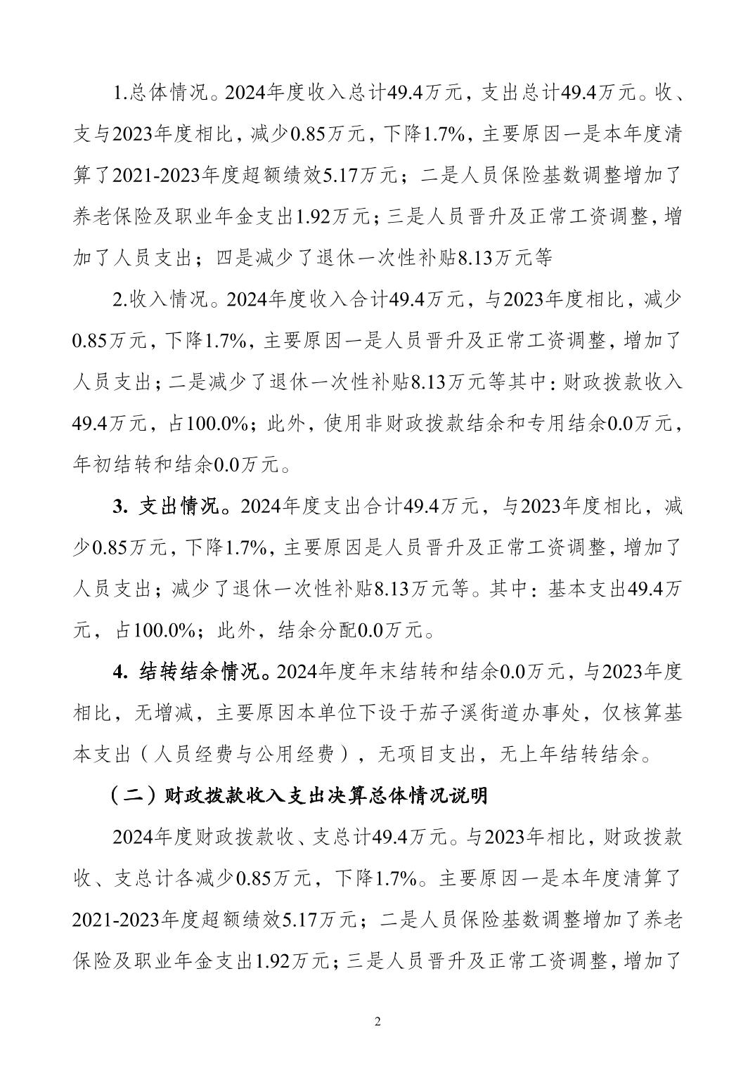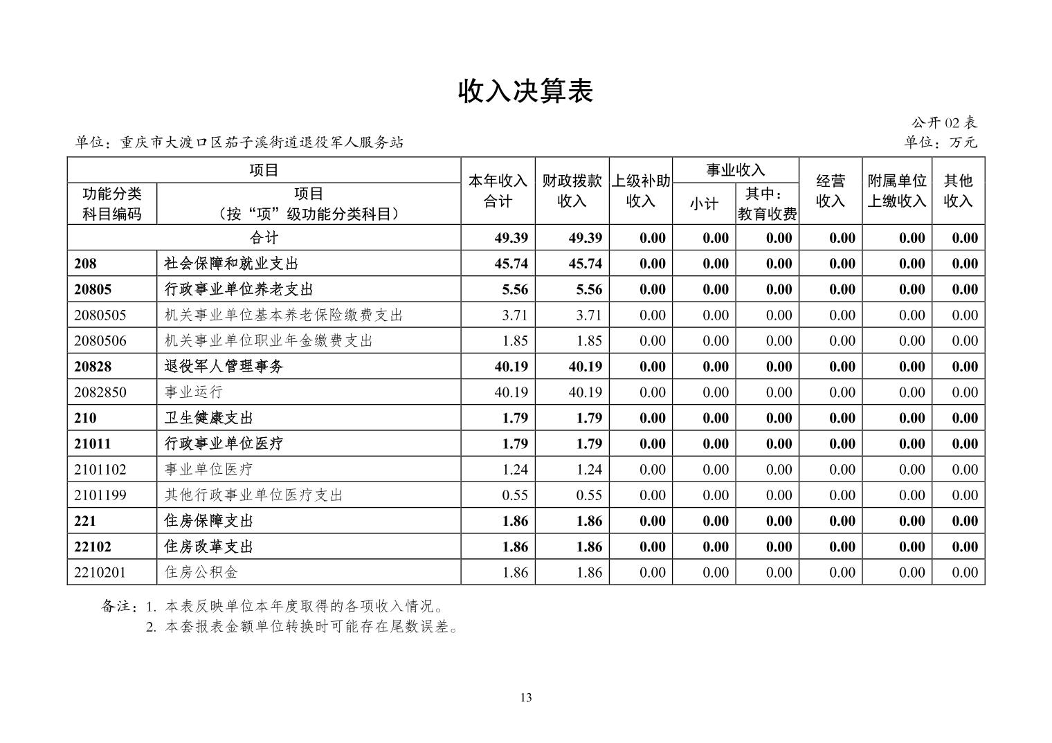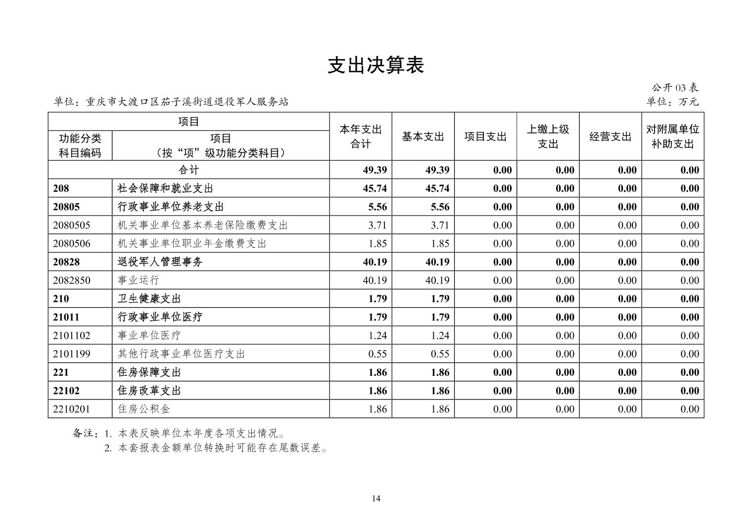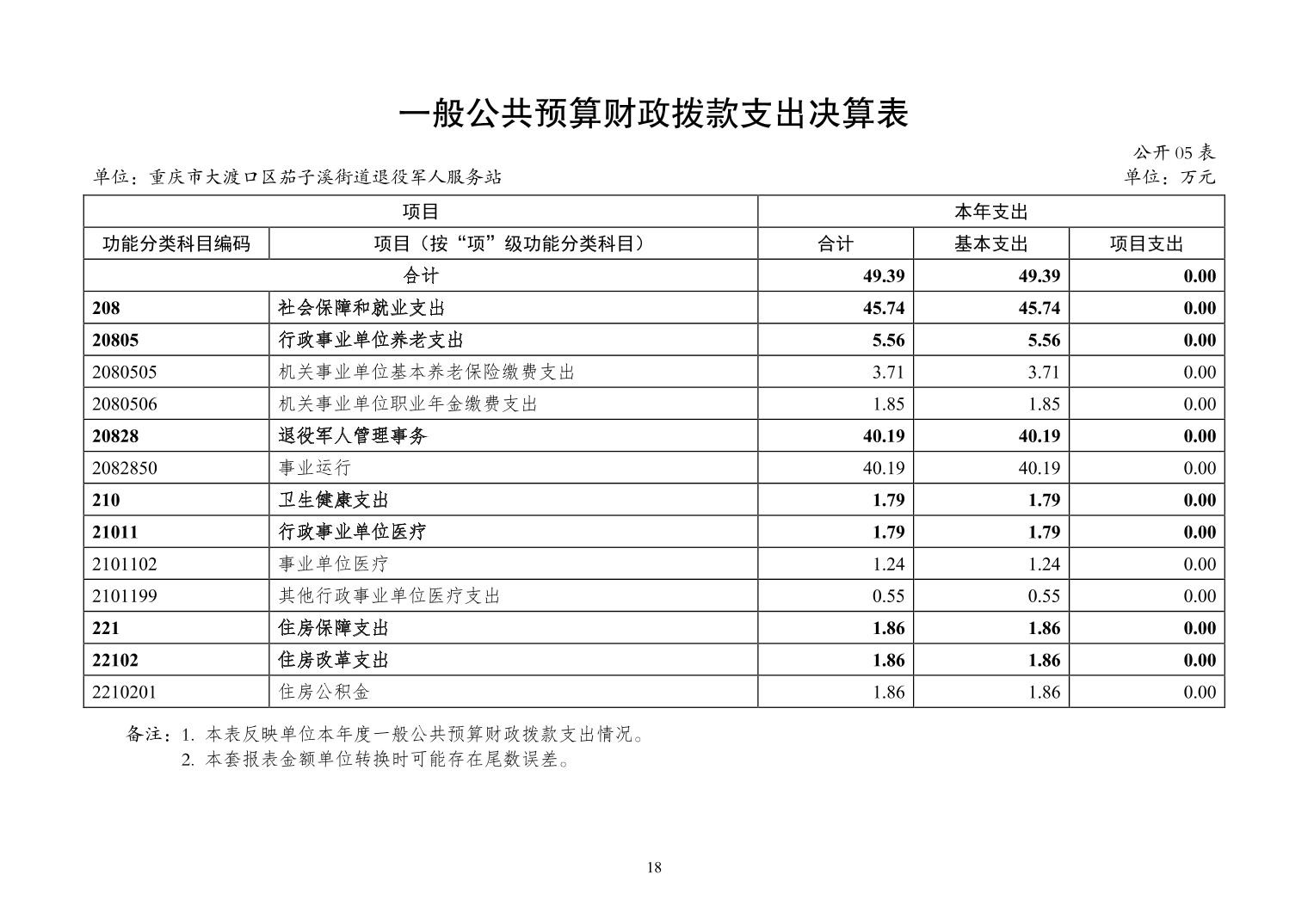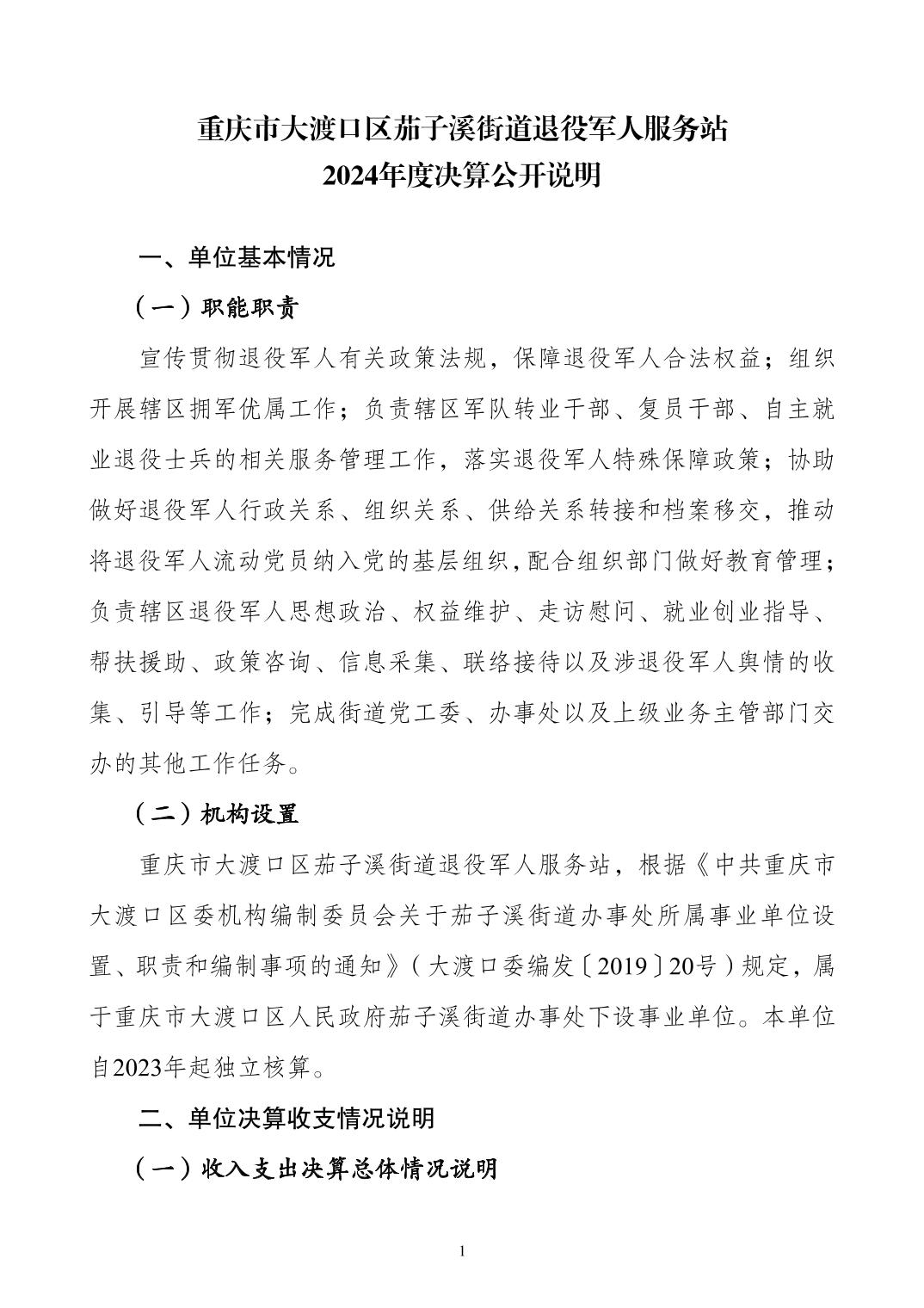 重庆市大渡口区茄子溪街道退役军人服务站2024年度决算公开说明