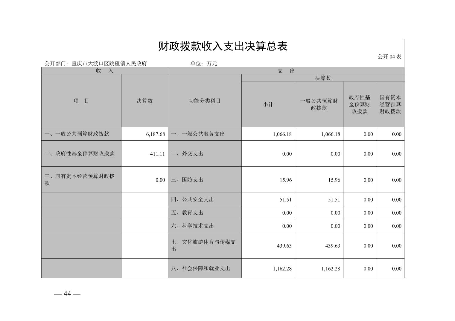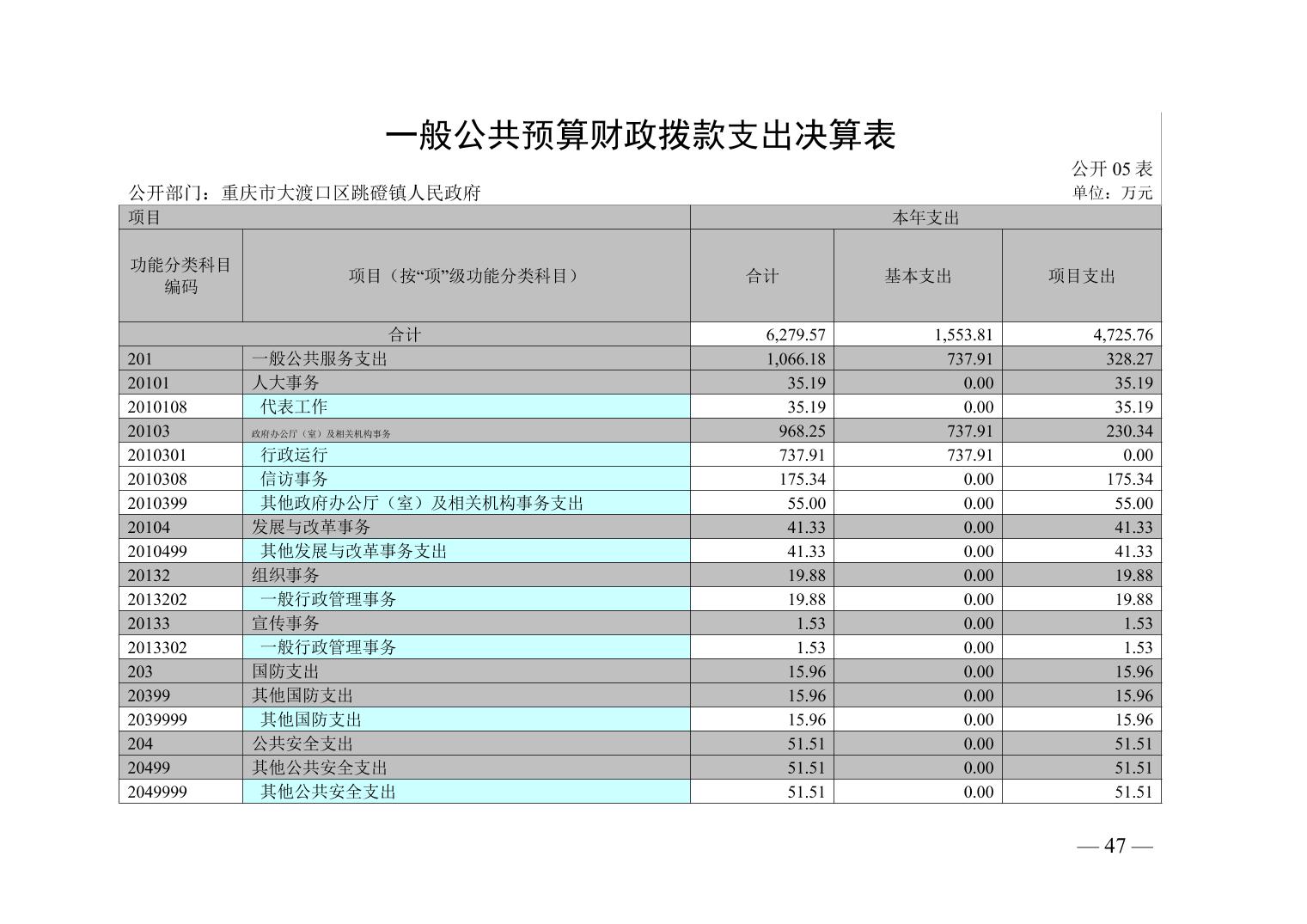 重庆市大渡口区跳磴镇人民政府2022年度部门决算情况说明