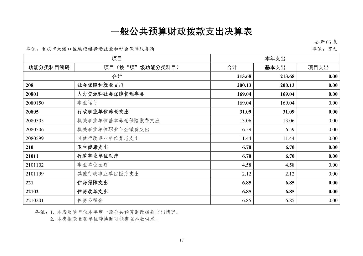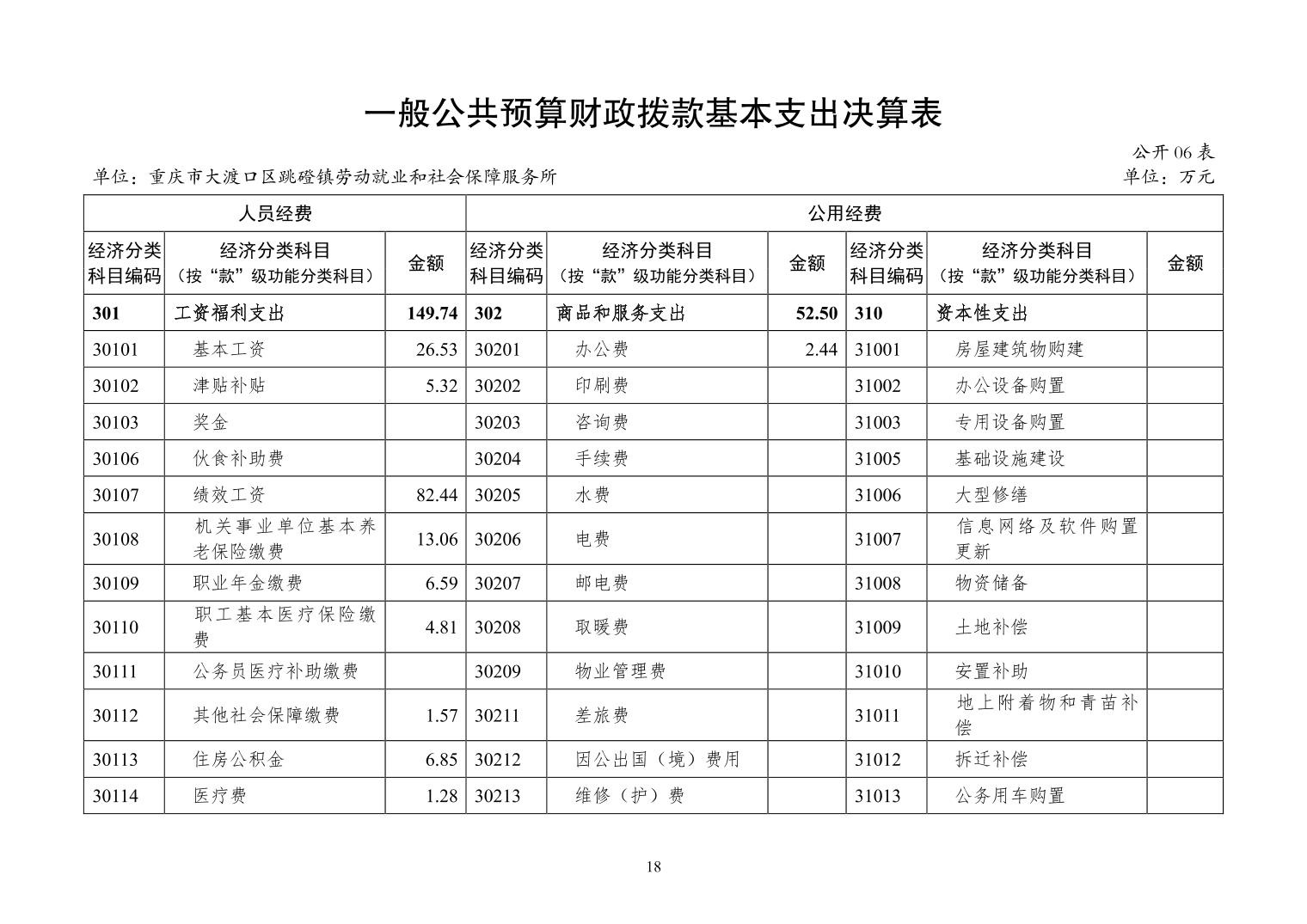 重庆市大渡口区跳磴镇劳动就业和社会保障服务所2024年度决算公开说明