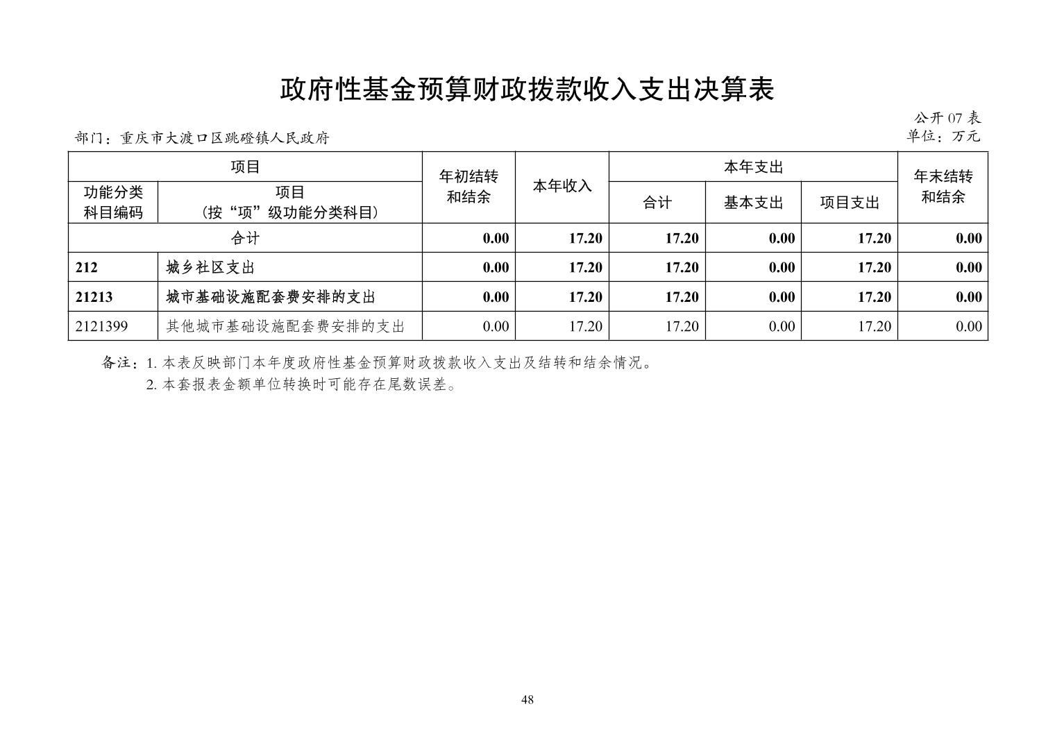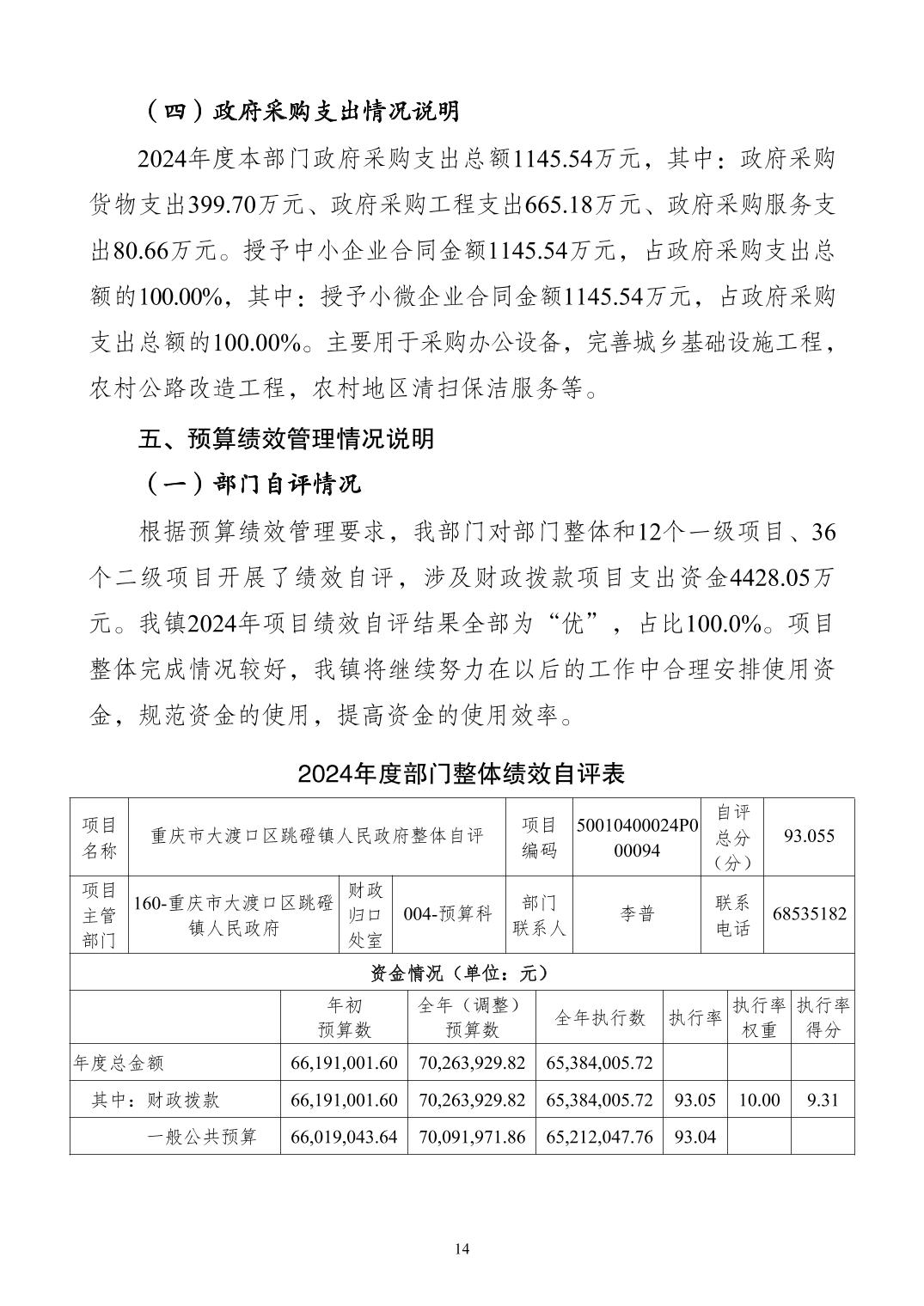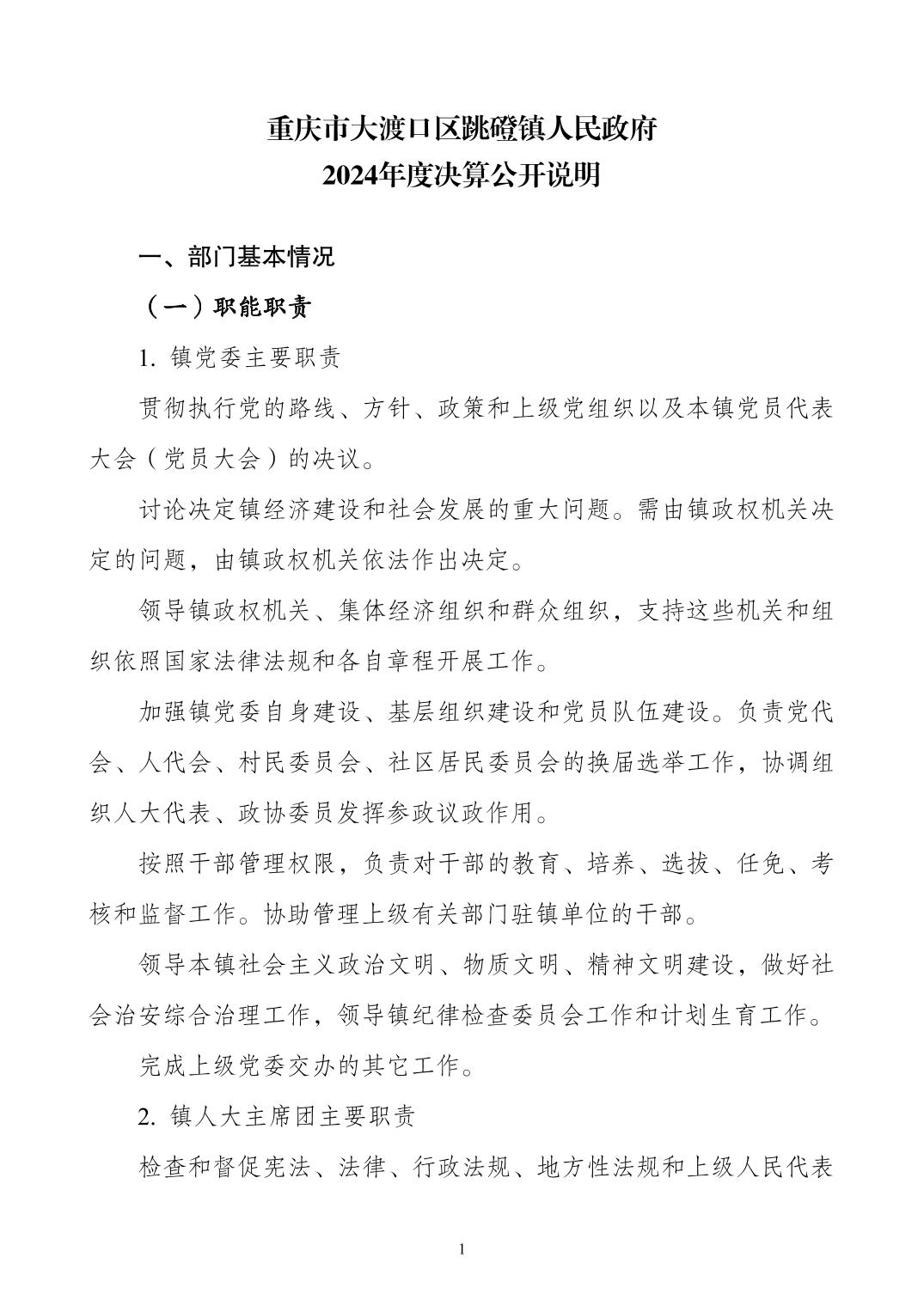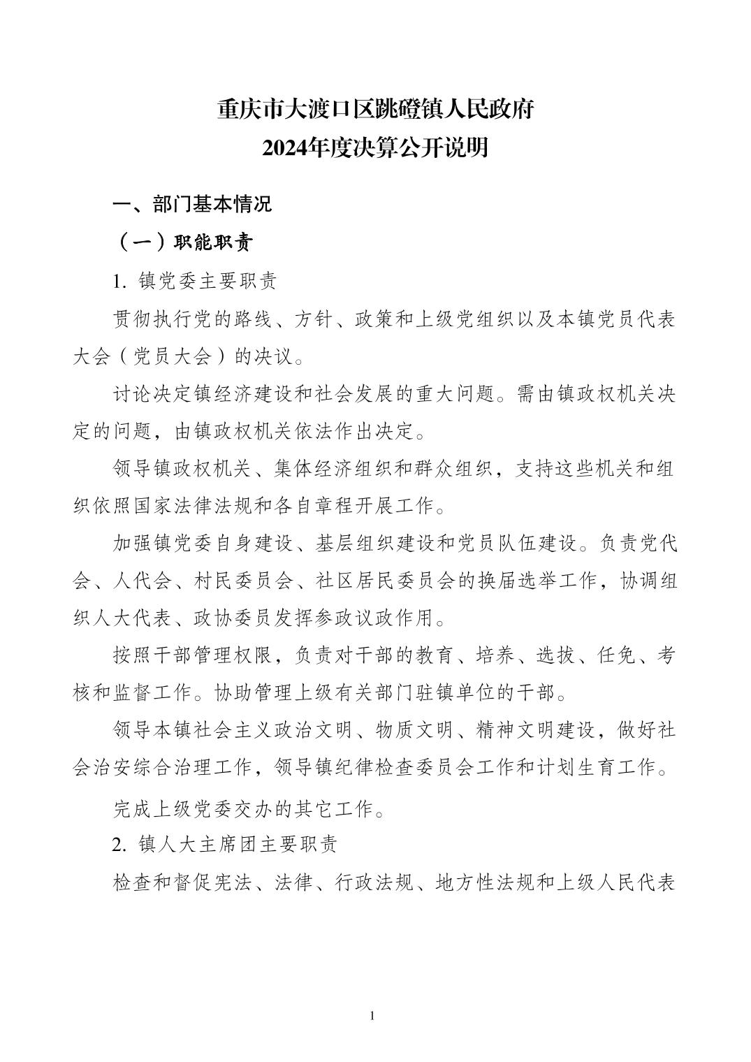 重庆市大渡口区跳磴镇人民政府2024年度决算公开说明