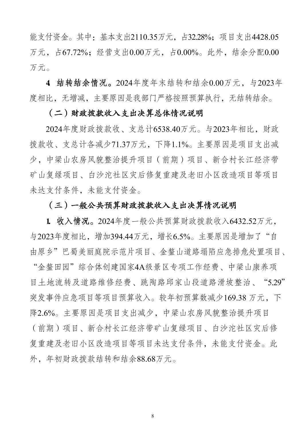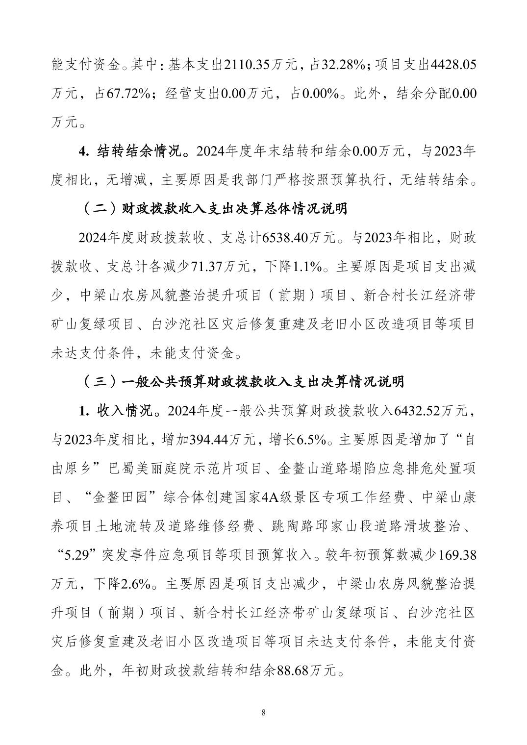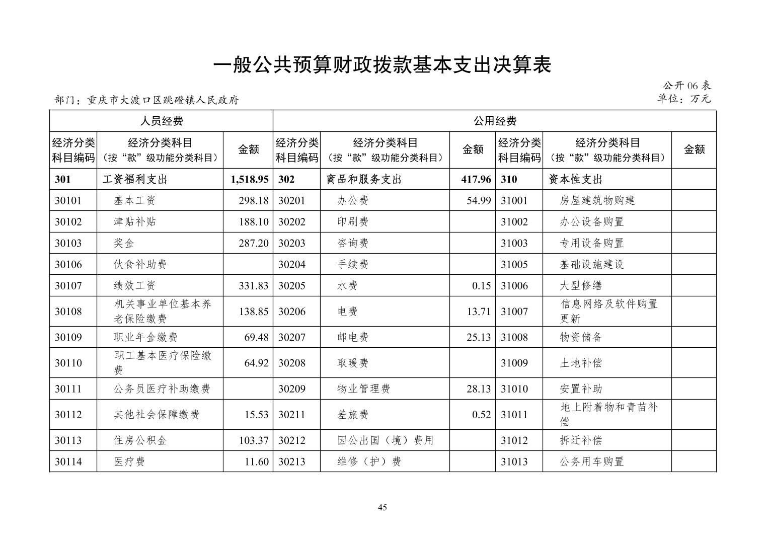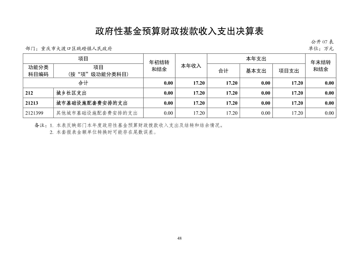 重庆市大渡口区跳磴镇人民政府2024年度决算公开说明