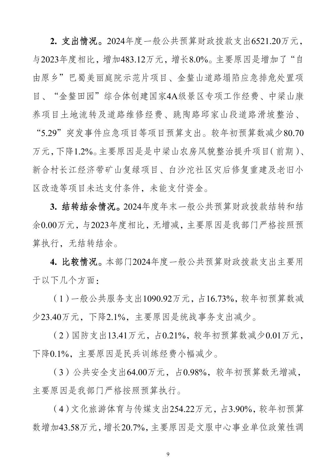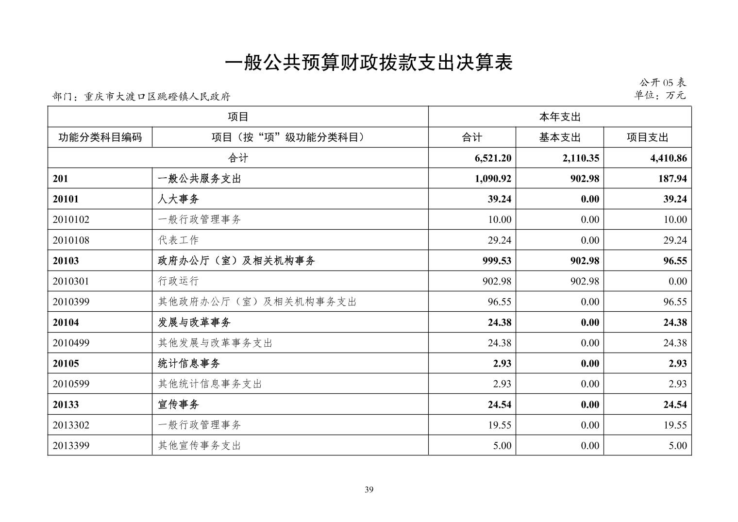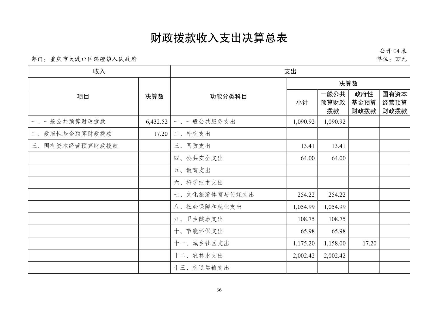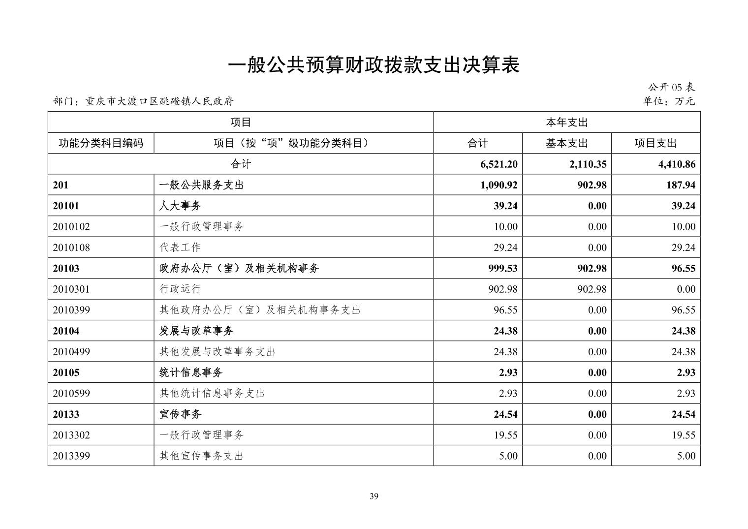 重庆市大渡口区跳磴镇人民政府2024年度决算公开说明