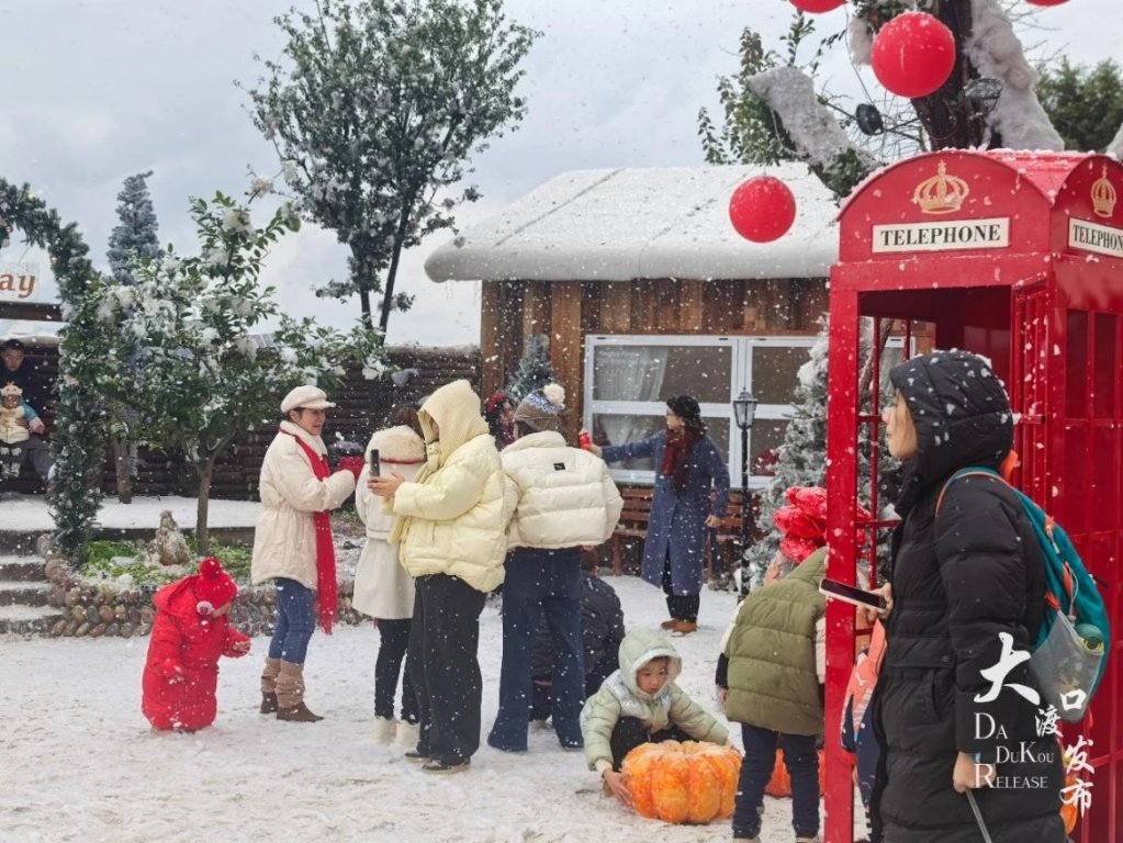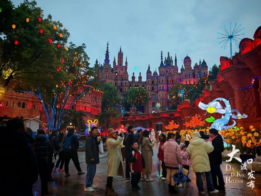 1月2日,细雨蒙蒙,大渡口区各景区、网红打卡点依旧人气不减。从乡野庭院的悠然,到梦幻城堡的浪漫,游客们或追着人造雪花肆意奔跑,或围坐茶台煮茶赏江景,或沉浸在篝火旁的歌声与欢笑里。这场浸润在雨丝中的假期盛宴,处处洋溢着独属于大渡口的烟火气与幸福感。
