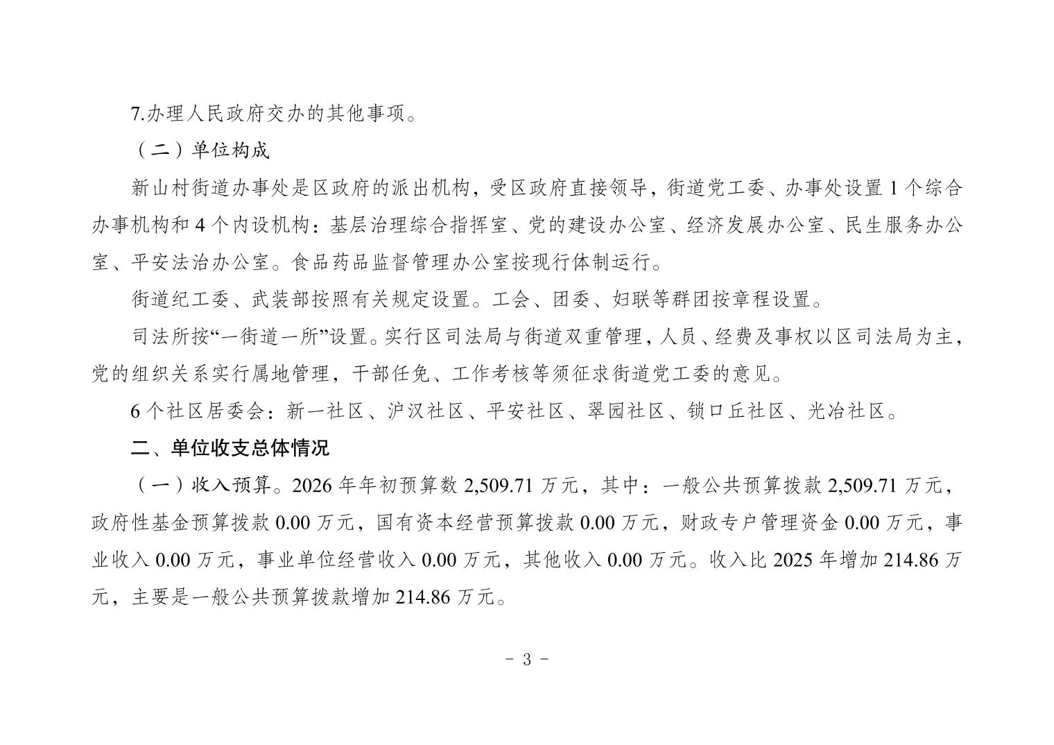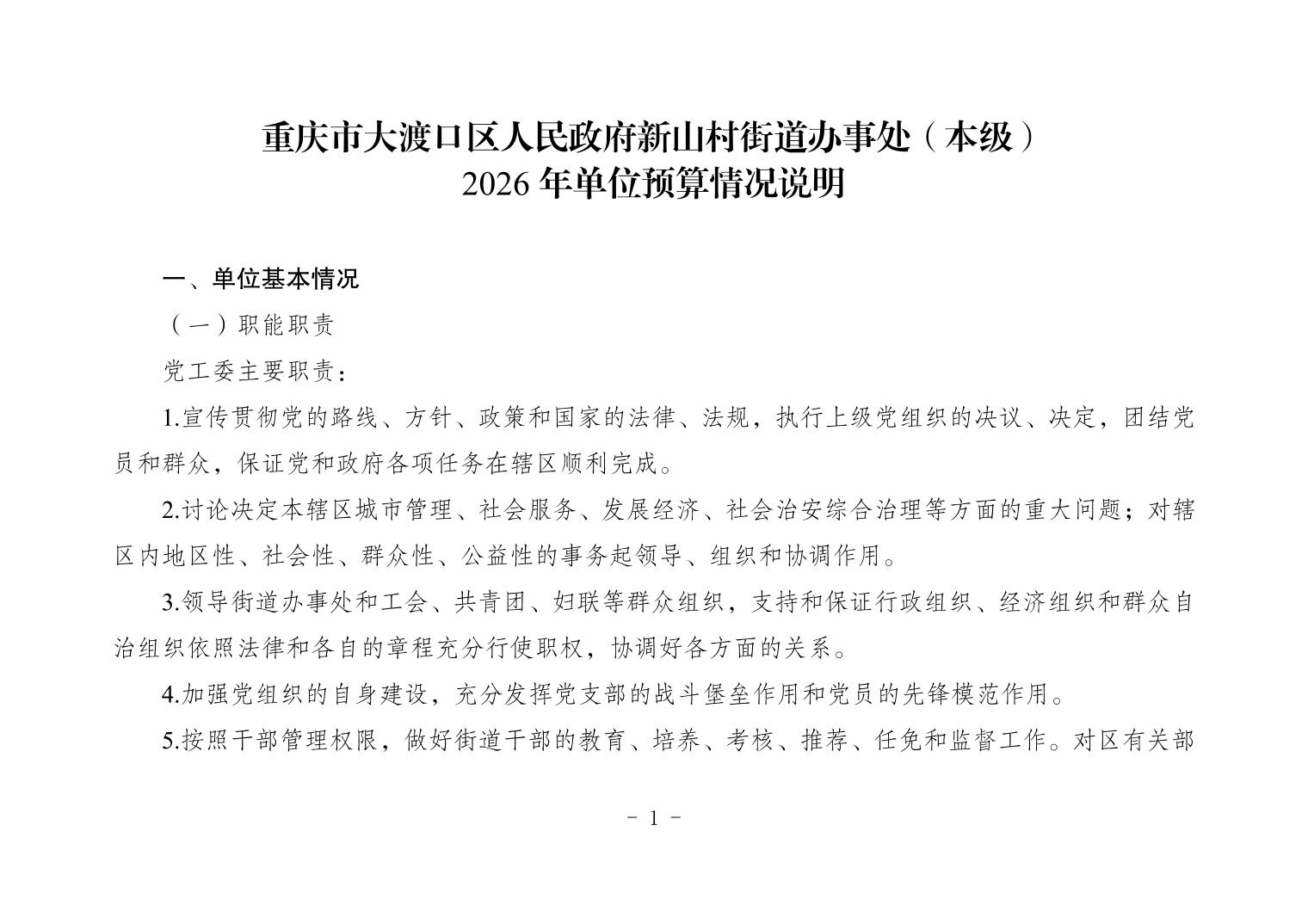 154001重庆市大渡口区人民政府新山村街道办事处(本级)2026年单位预算情况说明