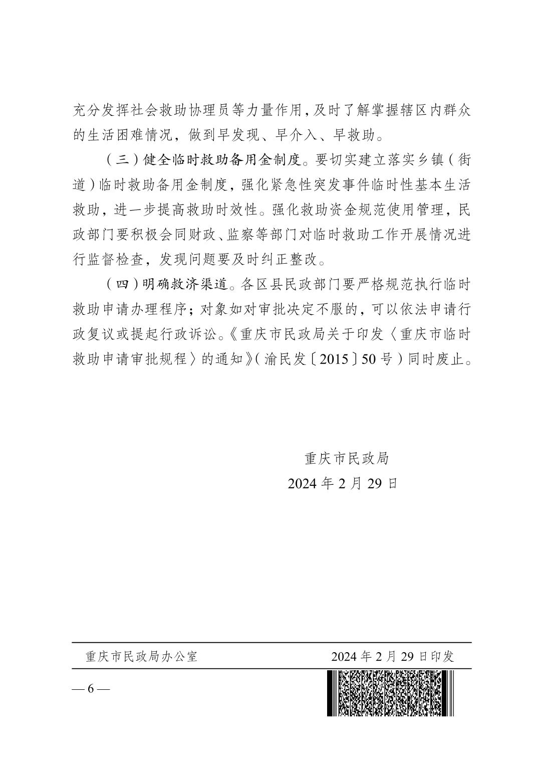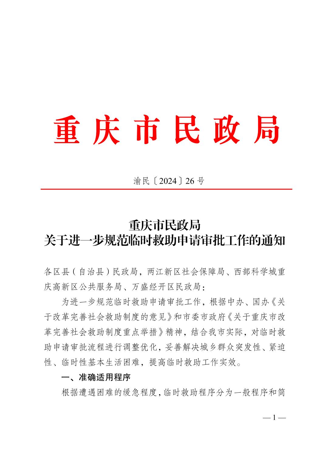 重庆市民政局关于进一步规范临时救助申请审批工作的通知