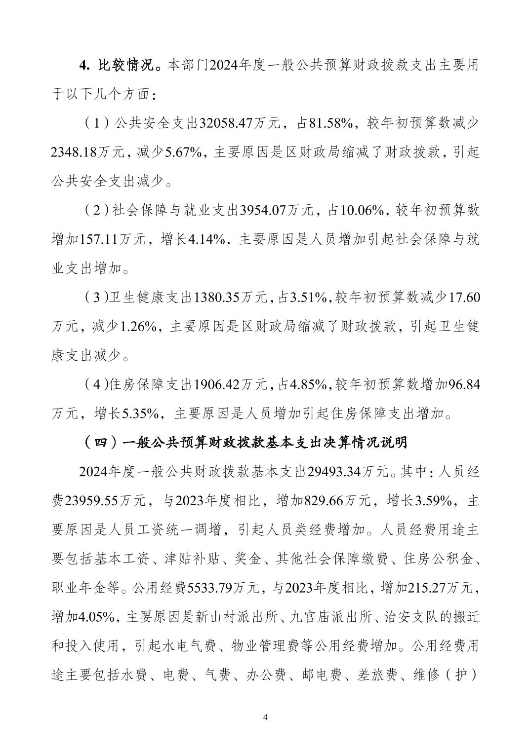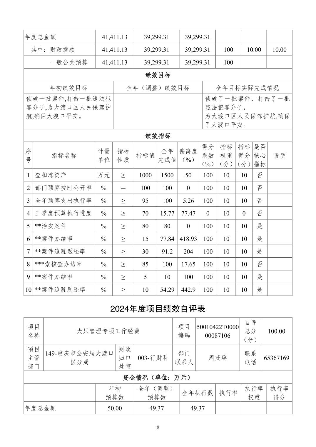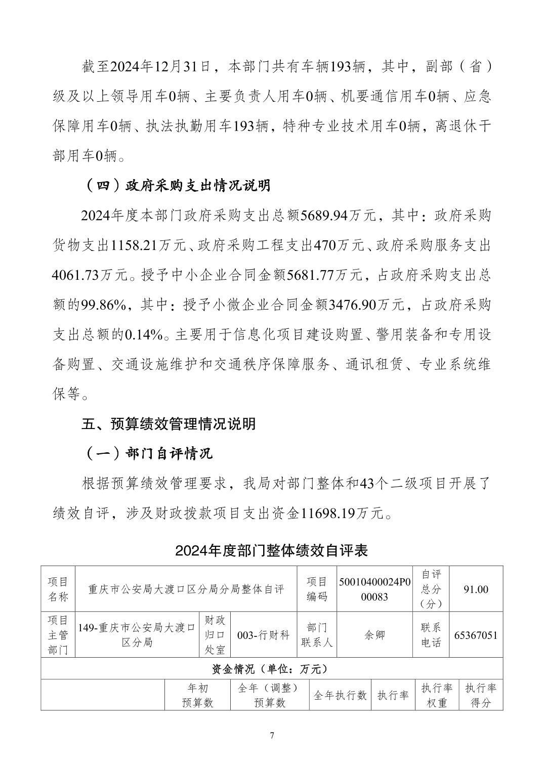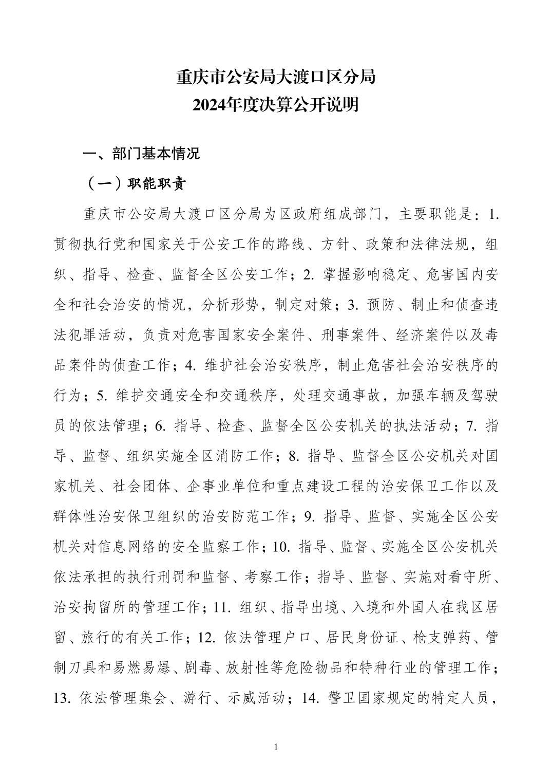 重庆市公安局大渡口区分局2024年度决算公开说明