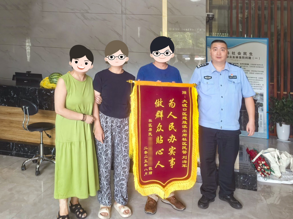 “感谢民警刘海军的认真负责!”近日,市民姜氏兄妹将一面印有“为人民办实事 做群众贴心人”的锦旗送至大渡口区公安分局建胜派出所,对民警刘海军的暖心服务表示衷心感谢。