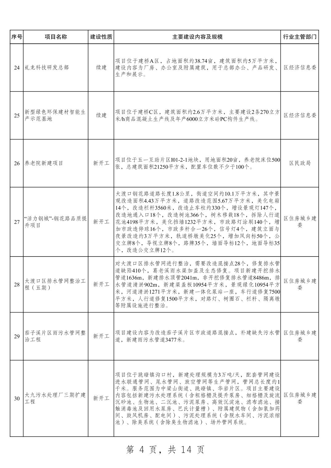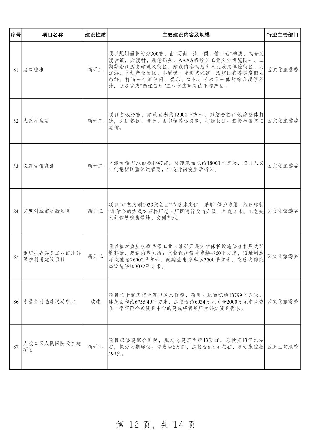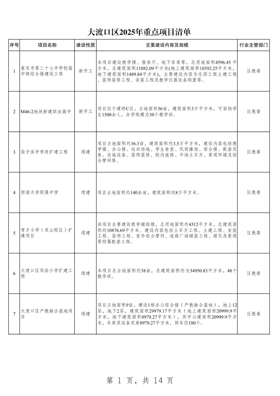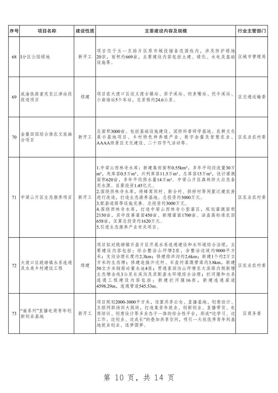 大渡口区2025年重点项目清单