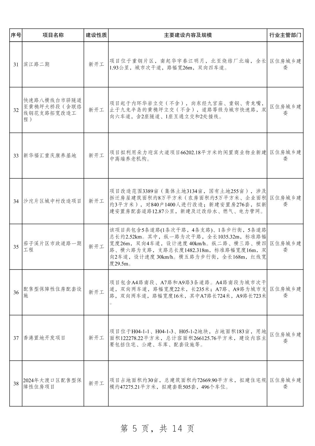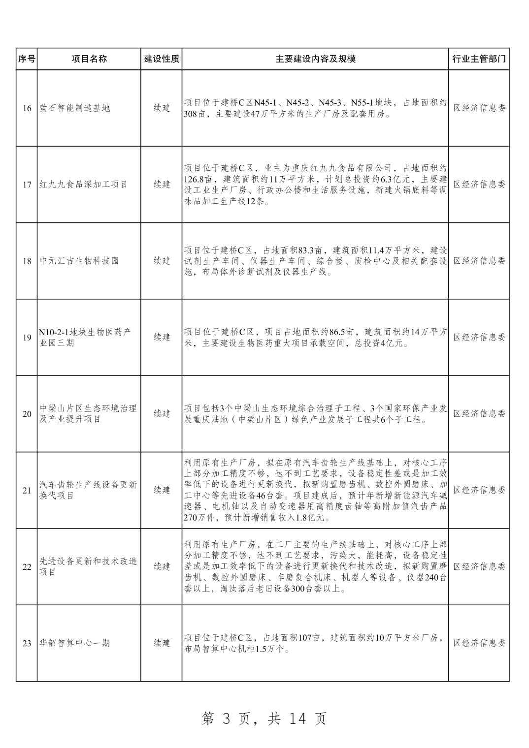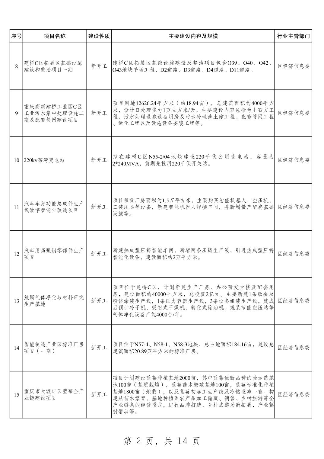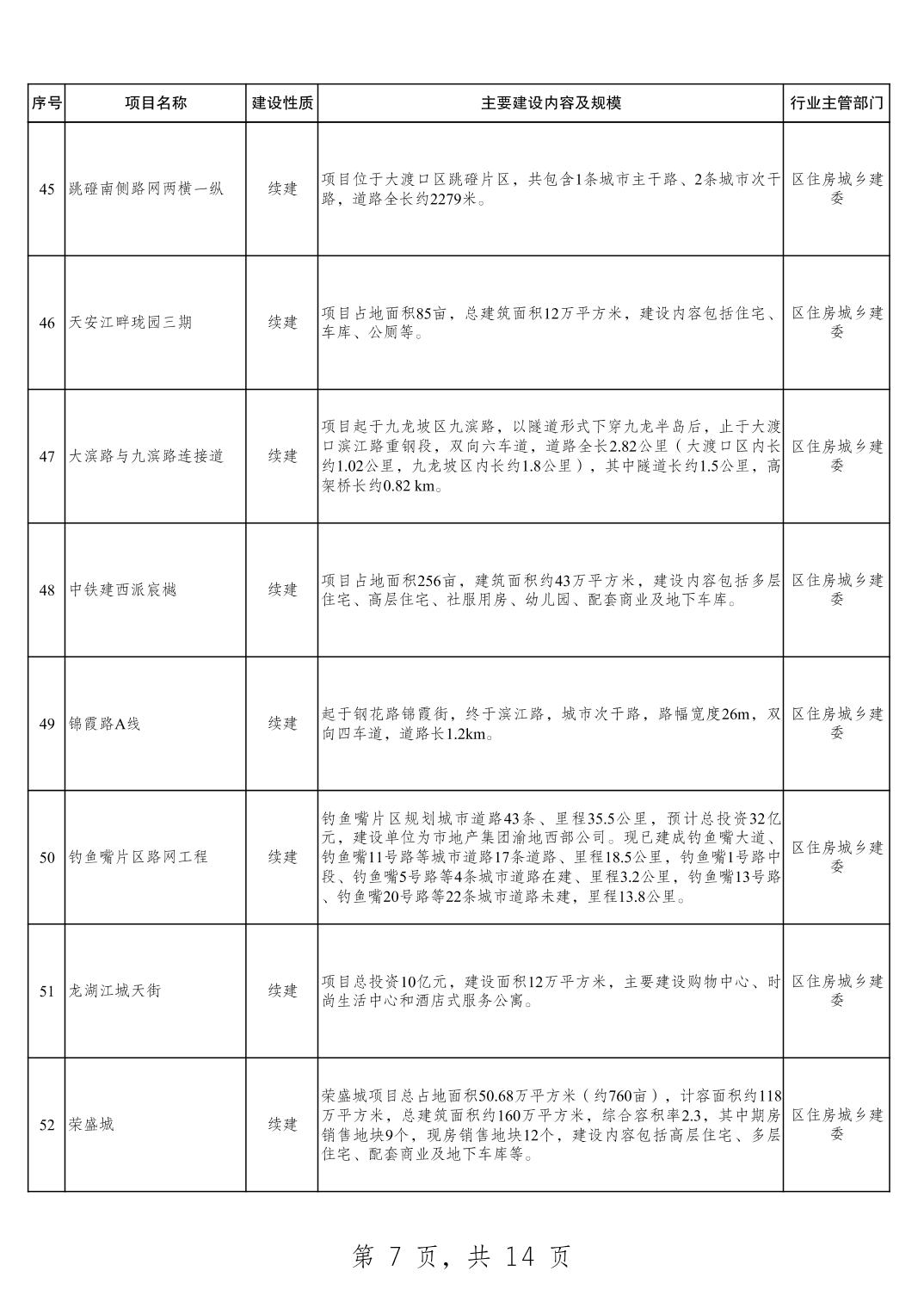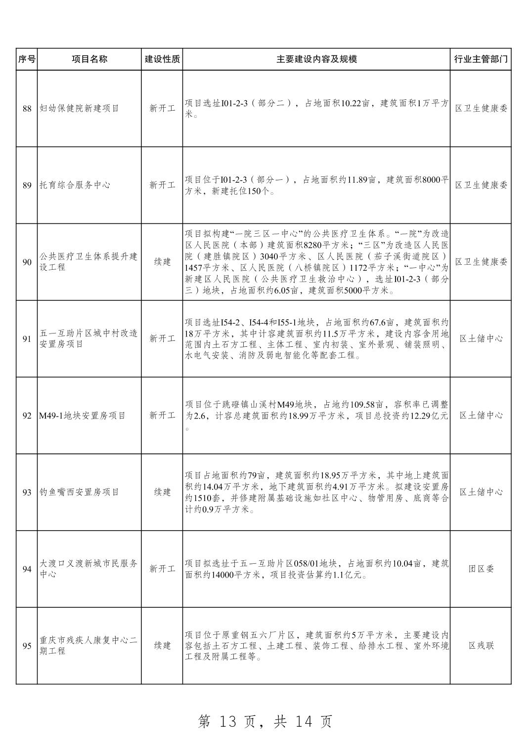大渡口区2025年重点项目清单