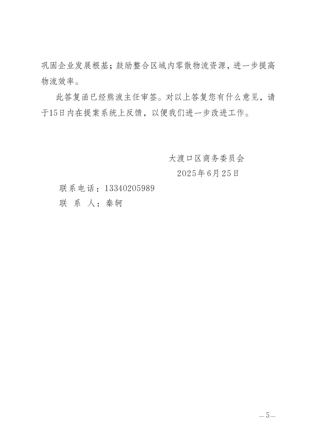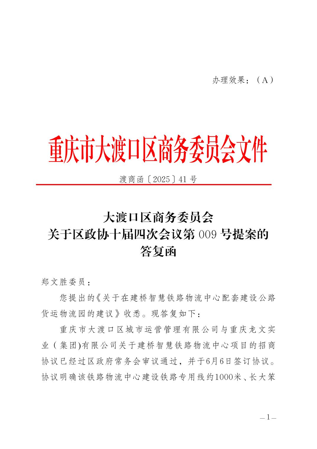 大渡口区商务委员会关于区政协十届四次会议第009号提案的答复函