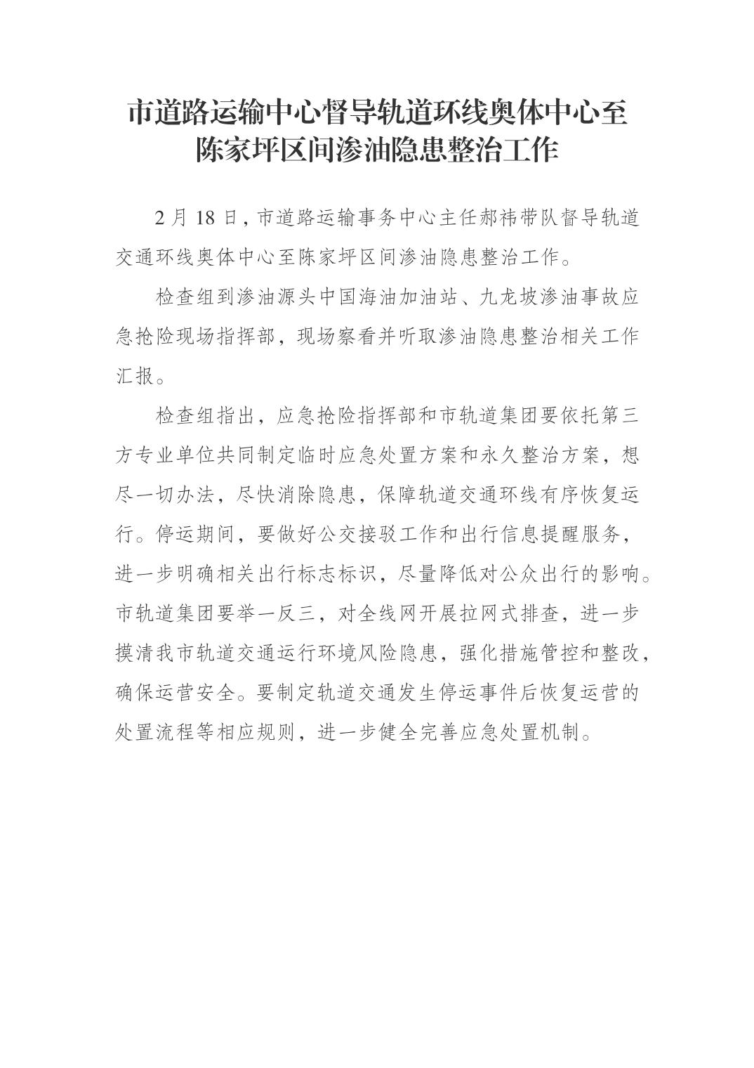 市道路运输中心督导轨道环线奥体中心至陈家坪区间渗油隐患整治工作.pdf