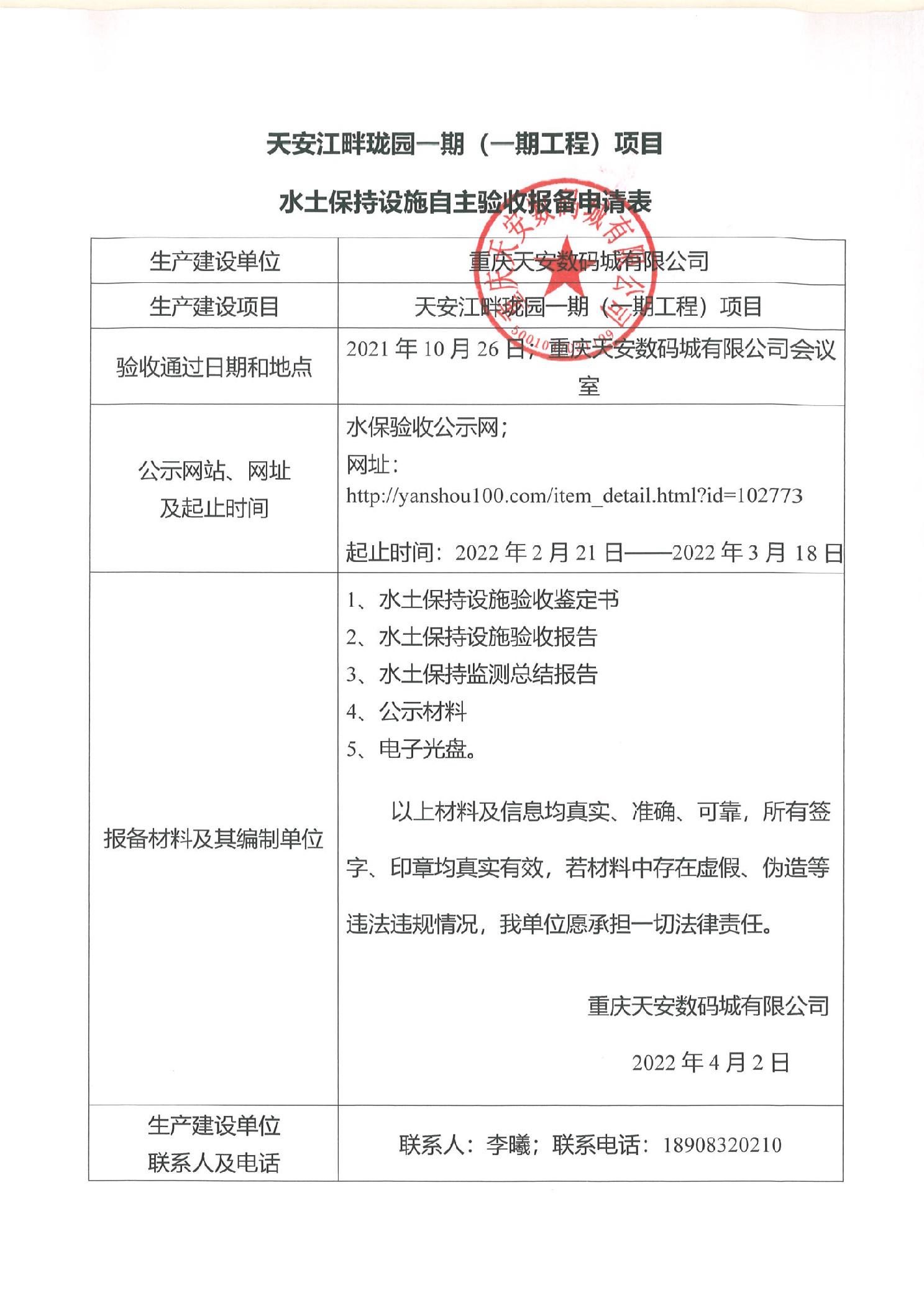 天安江畔珑园一期(一期工程)项目水土保持设施自主验收报备申请表.pdf