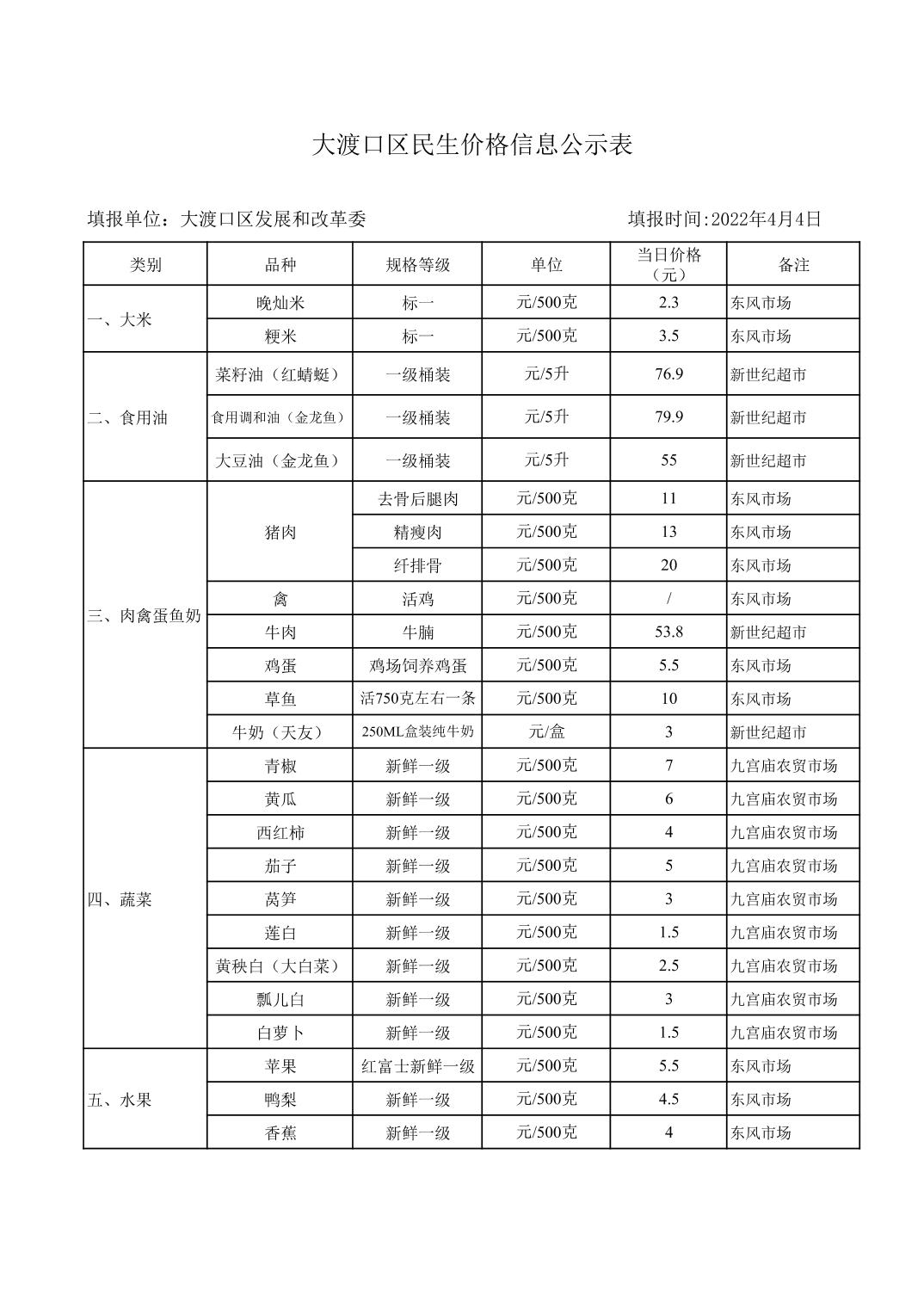 大渡口区民生价格信息公示表 2022-4-4.pdf