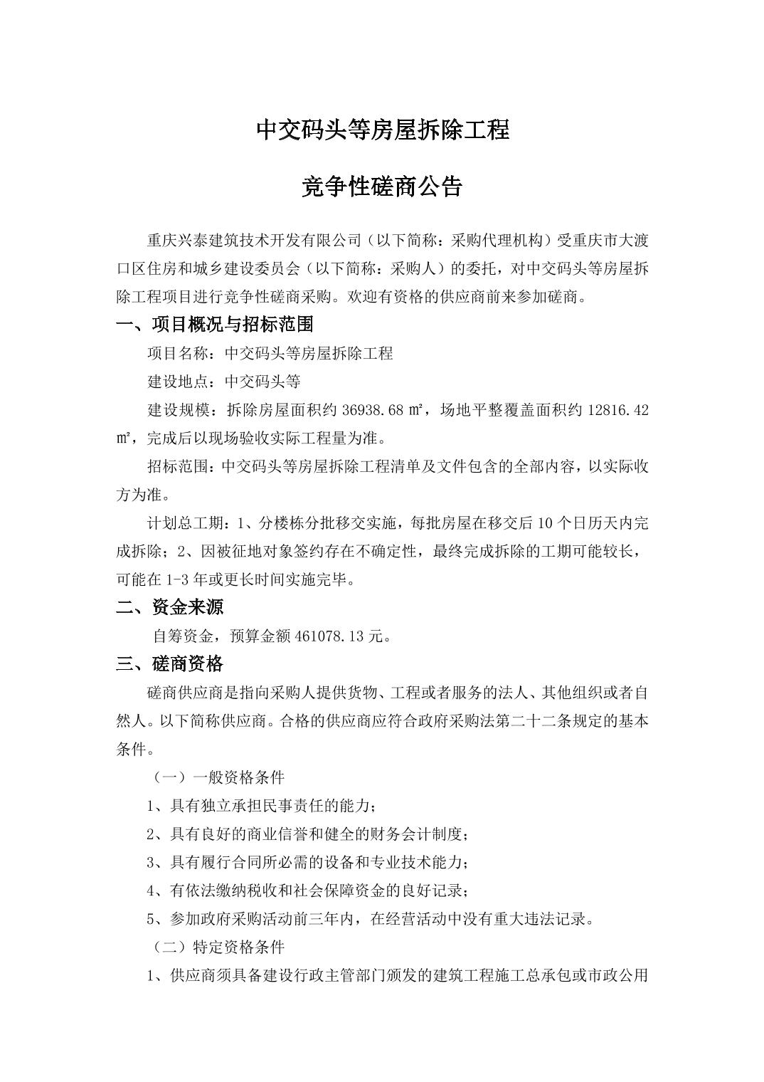 中交码头等房屋拆除工程竞争性磋商公告