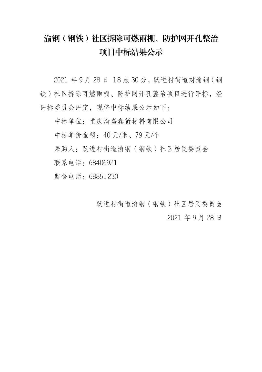 渝钢(钢铁)社区拆除可燃雨棚、防护网开孔整治项目中标结果公示.pdf