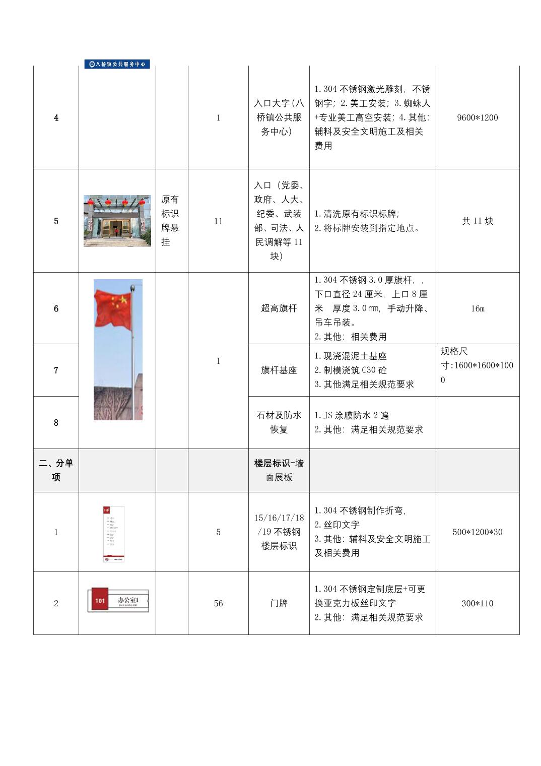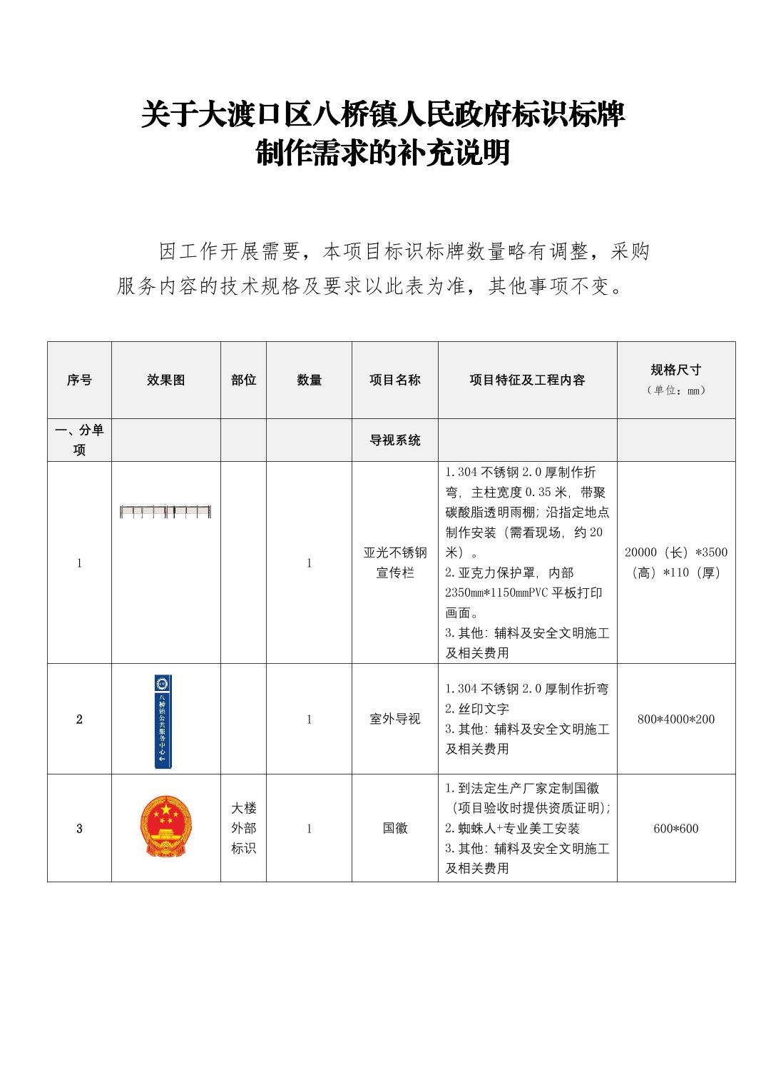 关于大渡口区八桥镇人民政府标识标牌制作需求的补充说明