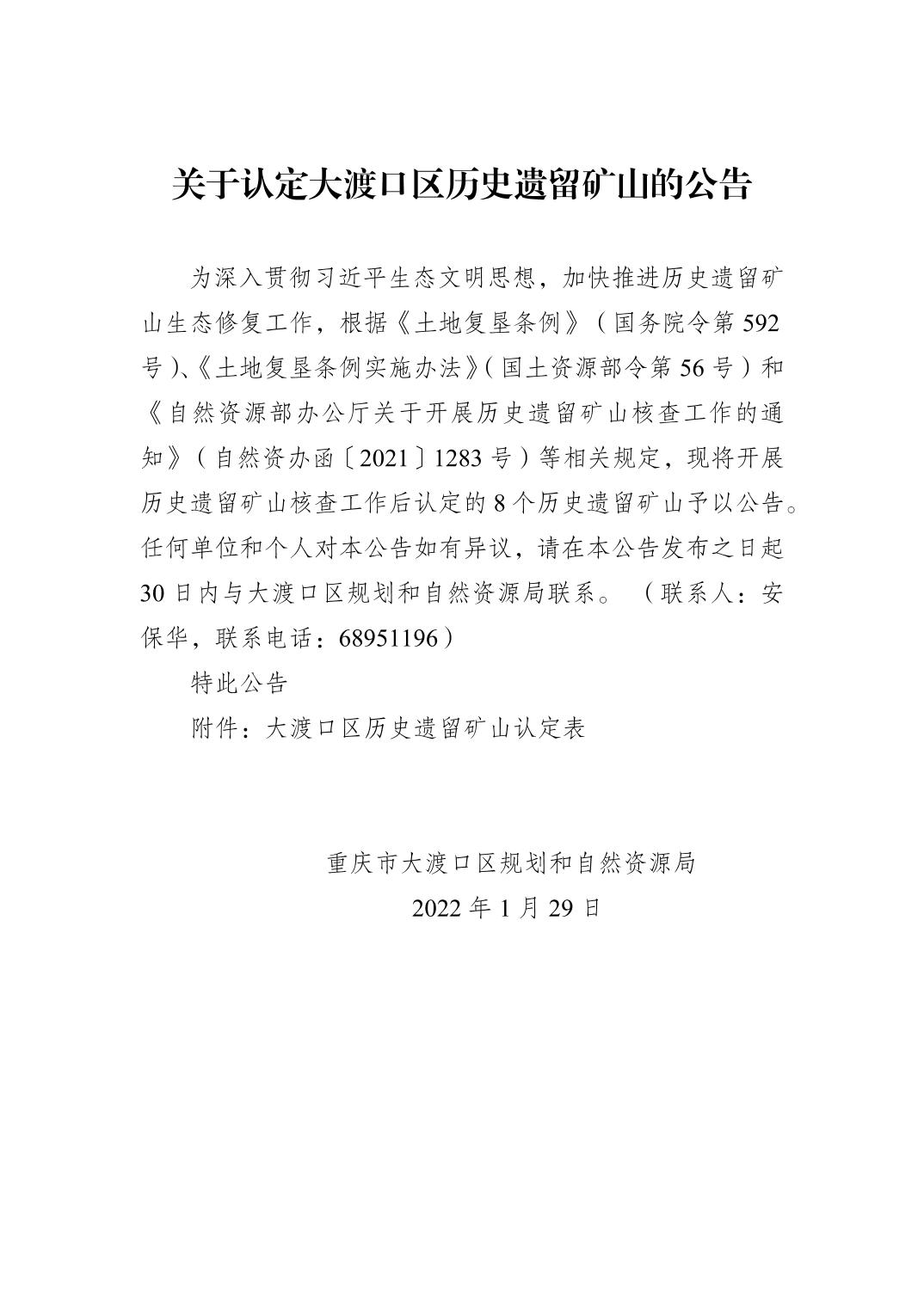 关于认定大渡口区历史遗留矿山的公告.pdf