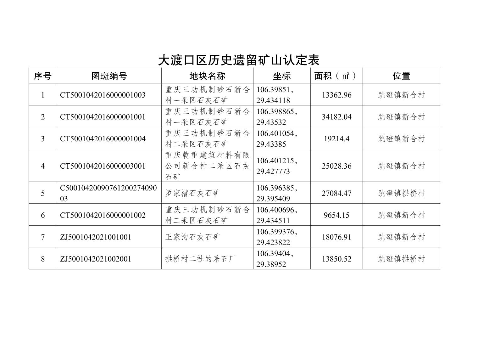 关于认定大渡口区历史遗留矿山的公告