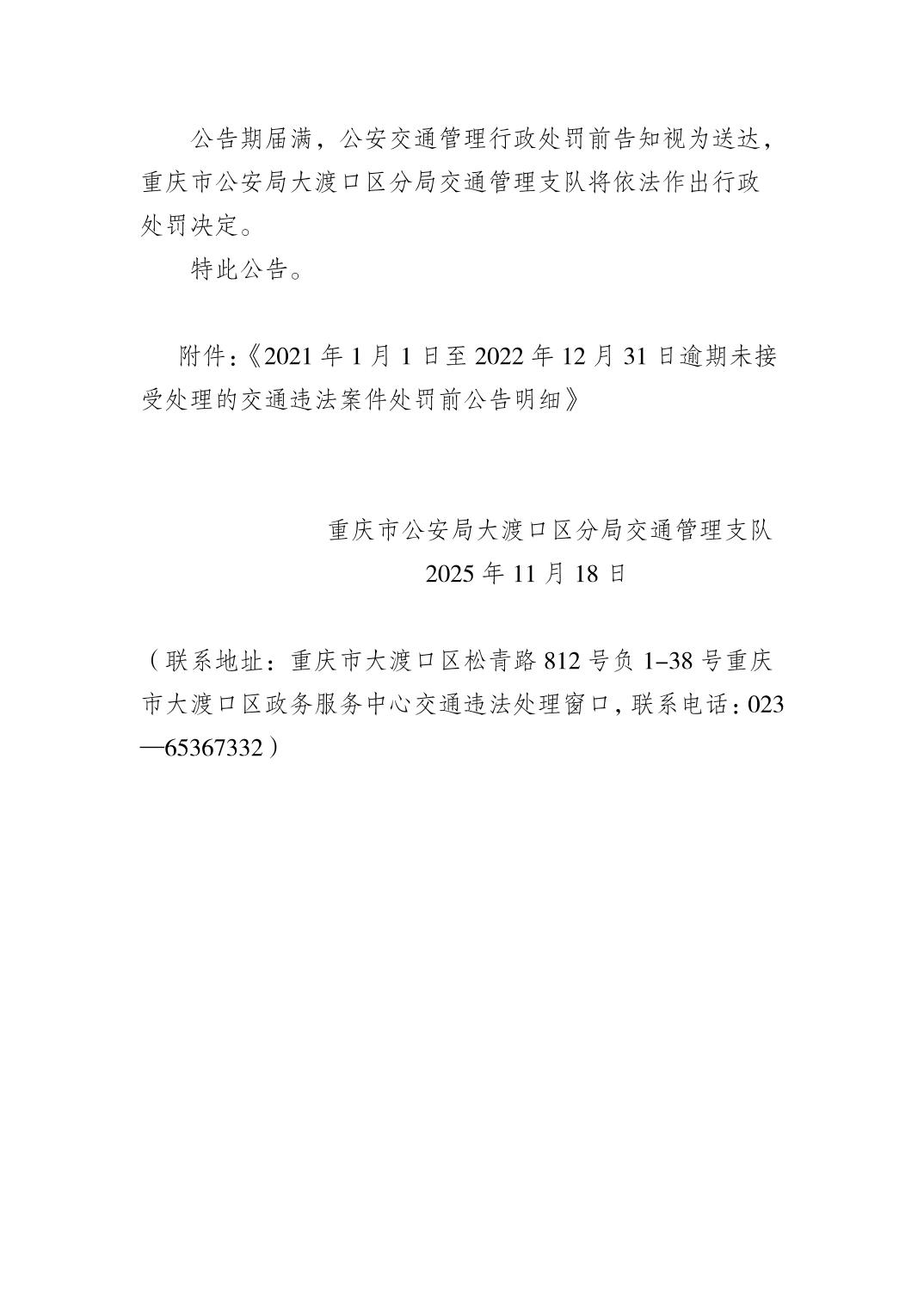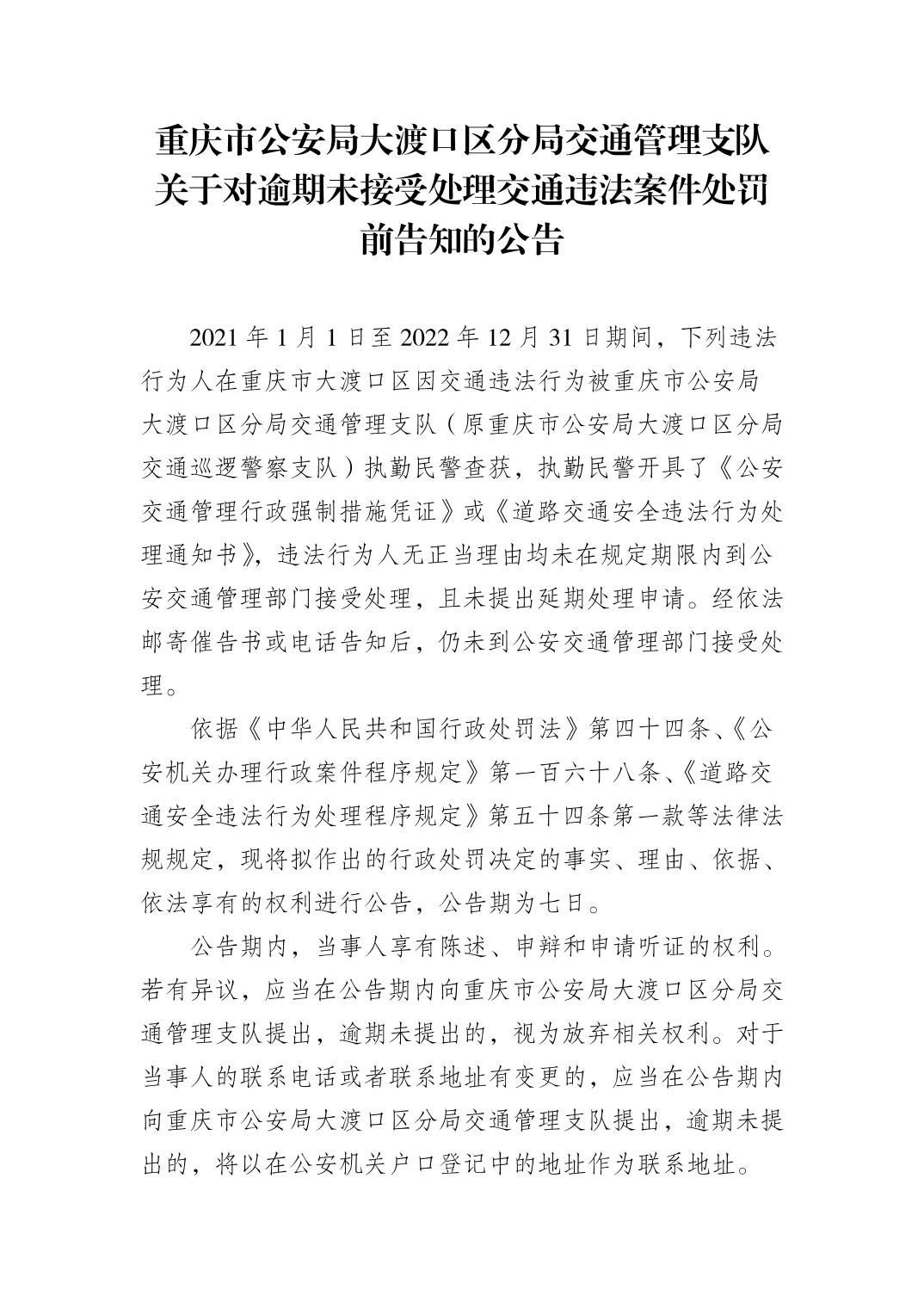 关于对逾期未接受处理交通违法案件处罚前告知的公告
