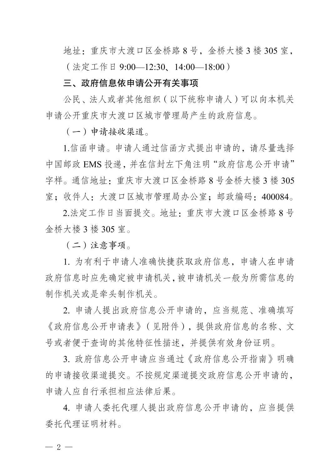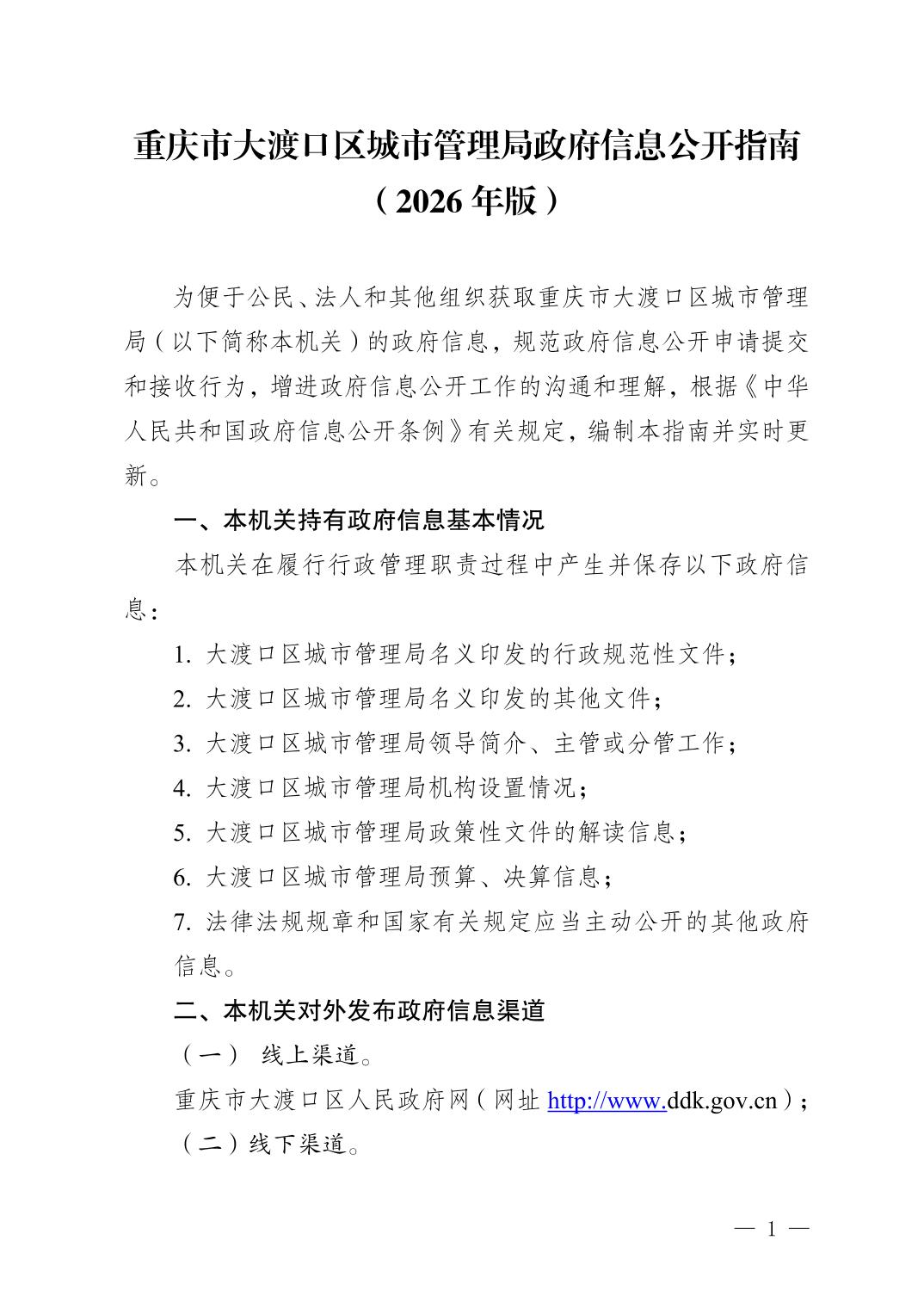 重庆市大渡口区城市管理局政府信息公开指南(2026年版)
