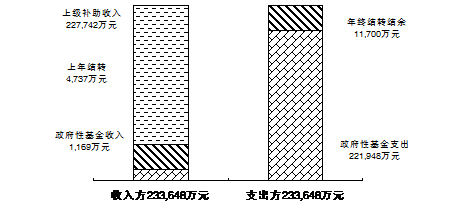 区级政府性基金收入1,169万元,上级补助收入227,742万元,加上上年结转4,737万元,全区政府性基金收入总计为233,648万元。当年无上解上级支出,区级财力为233,648万元。