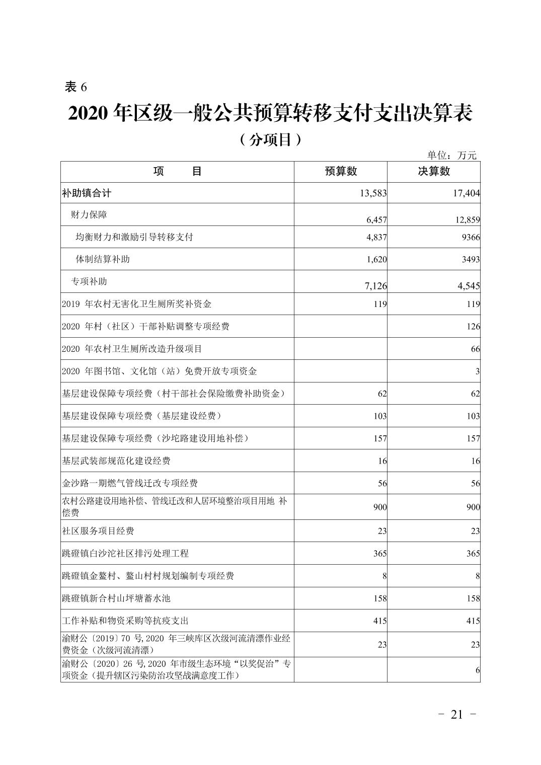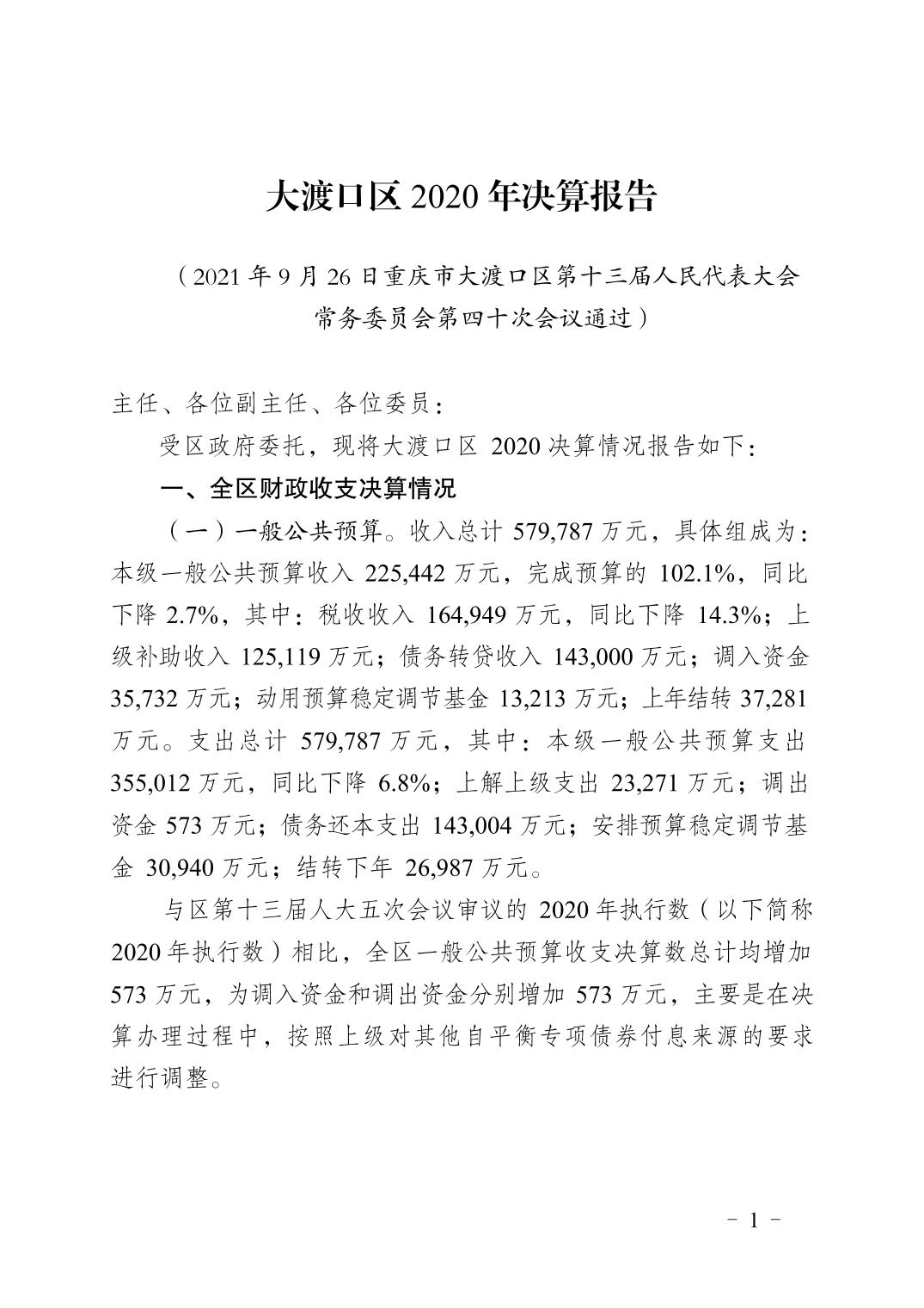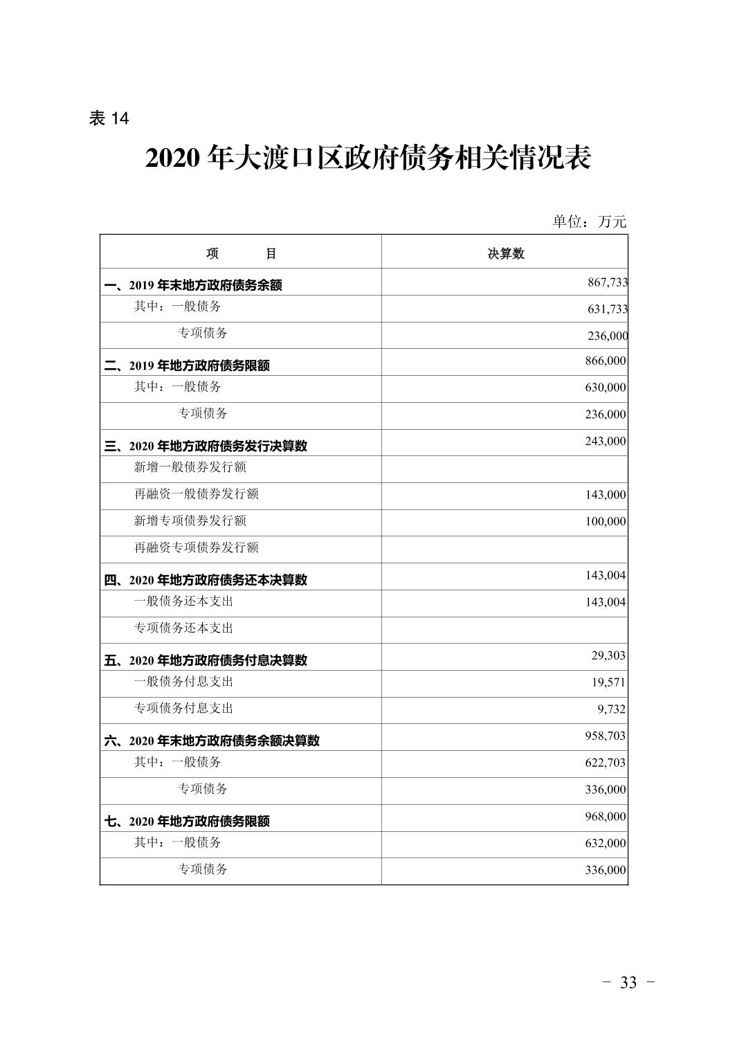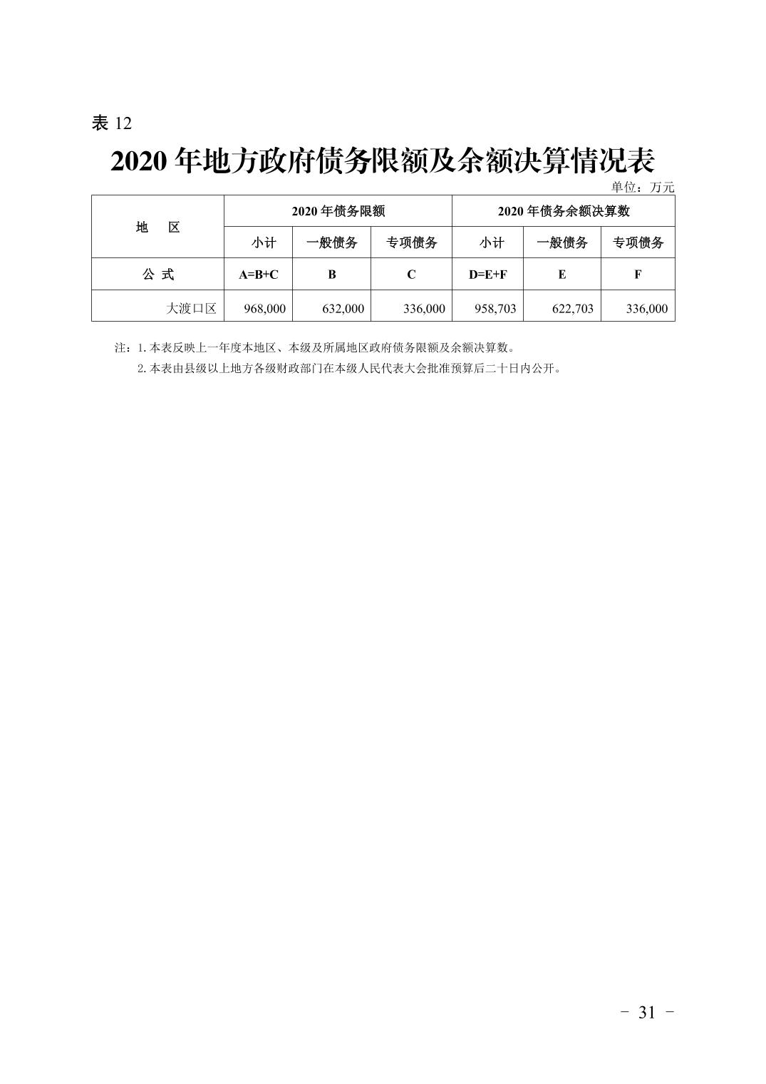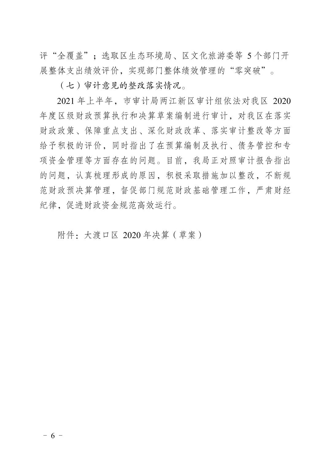 重庆市大渡口区2020年财政决算报告