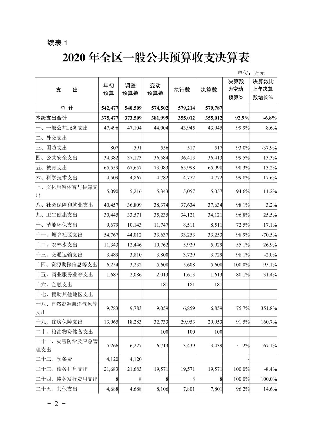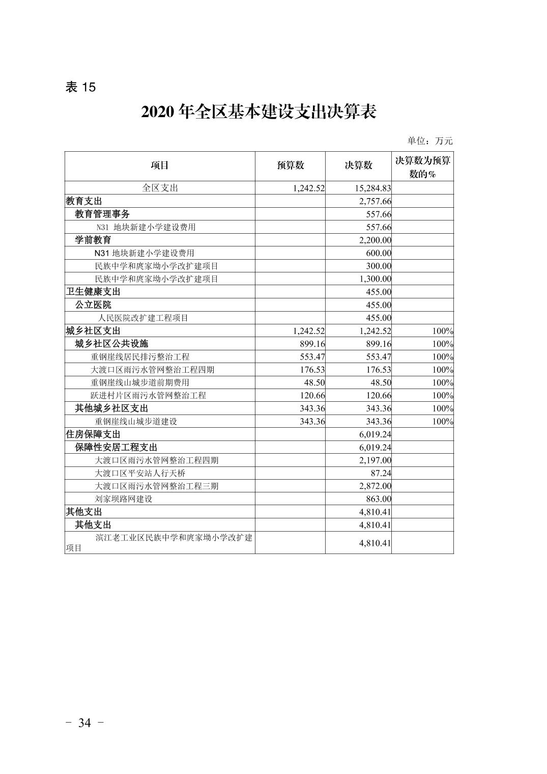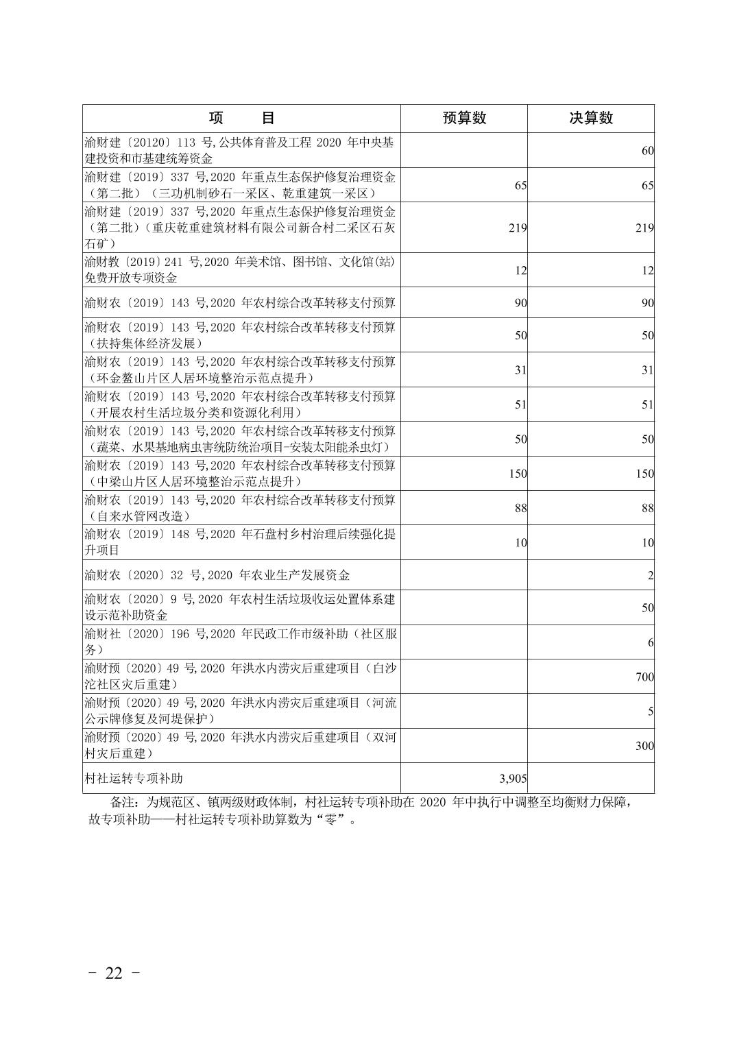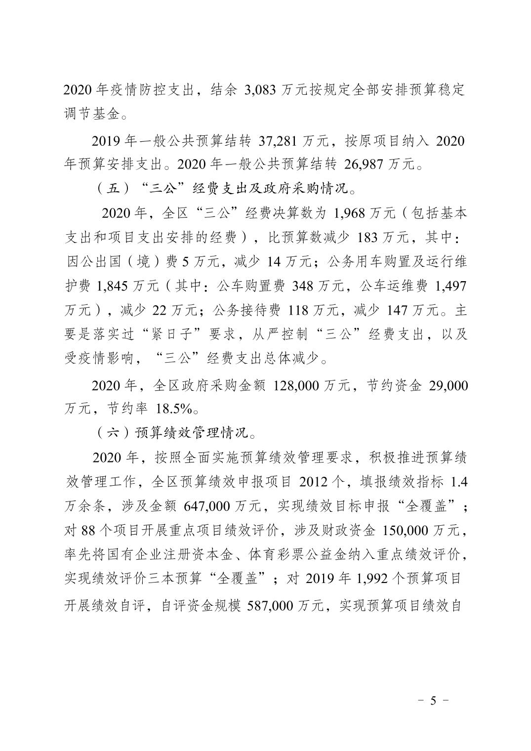 重庆市大渡口区2020年财政决算报告