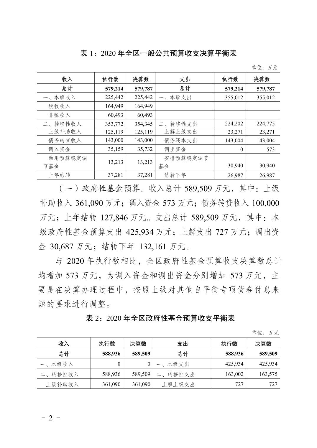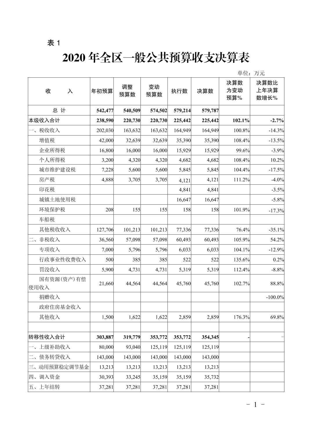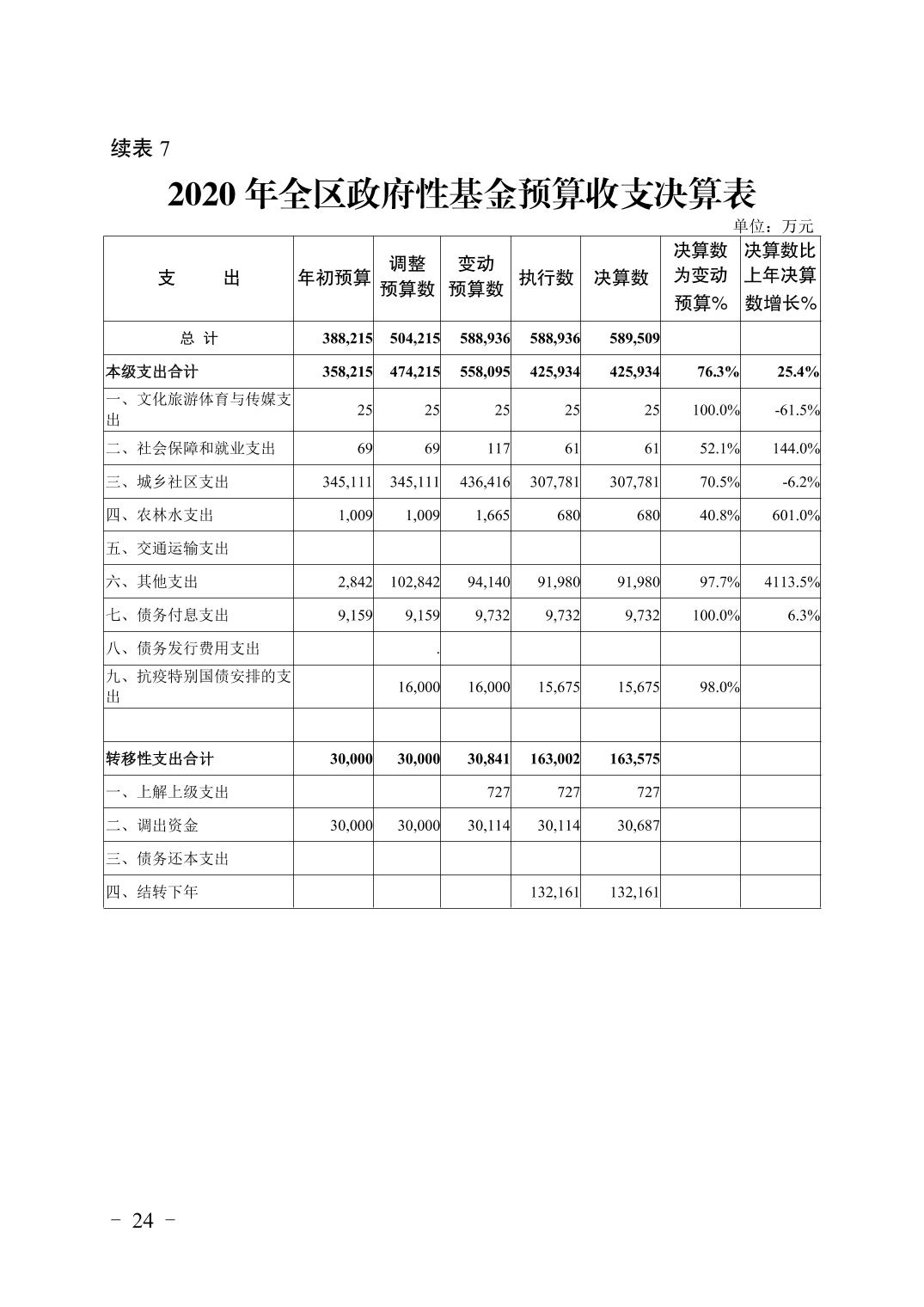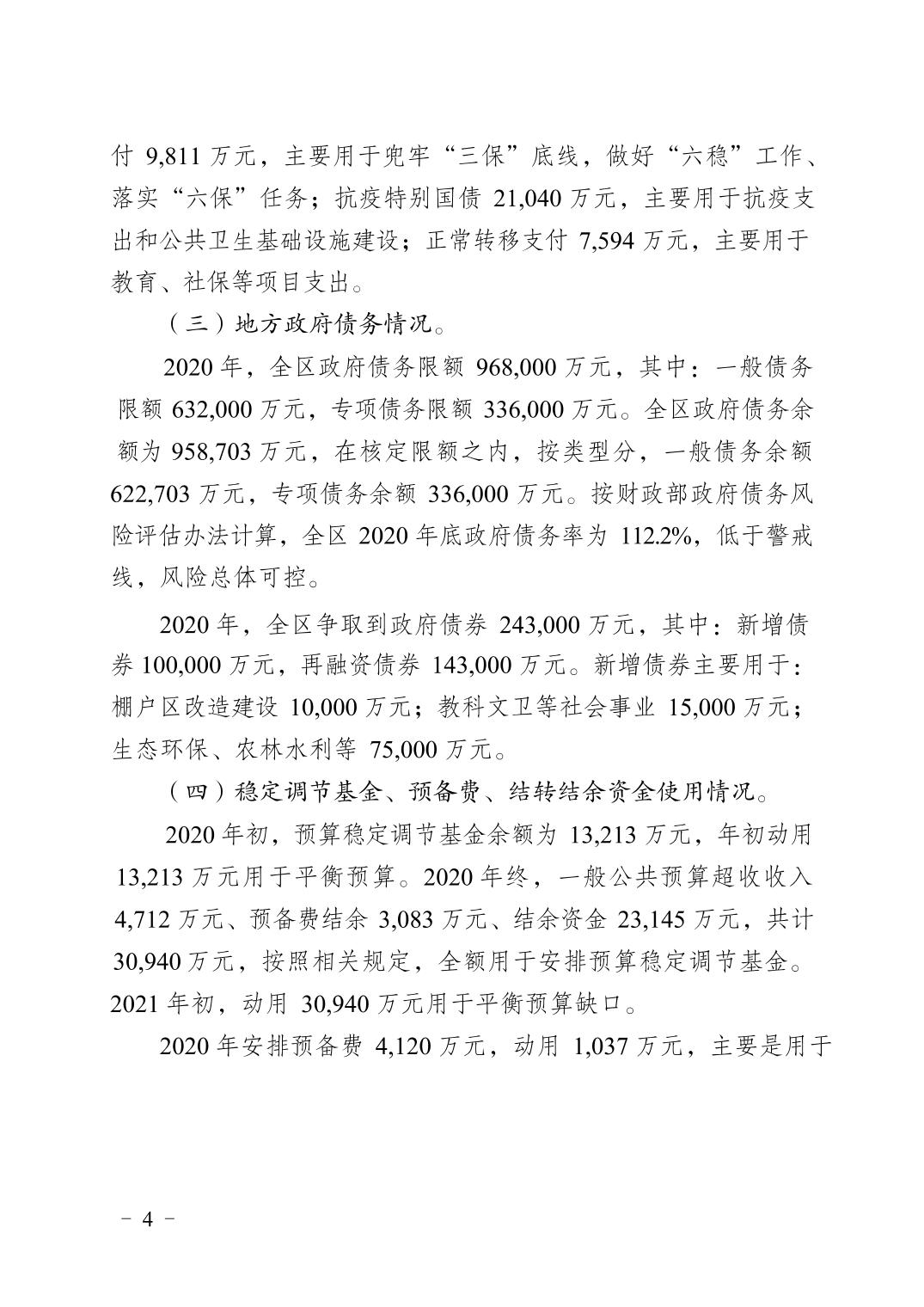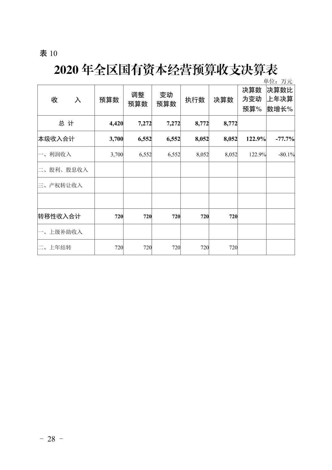 重庆市大渡口区2020年财政决算报告