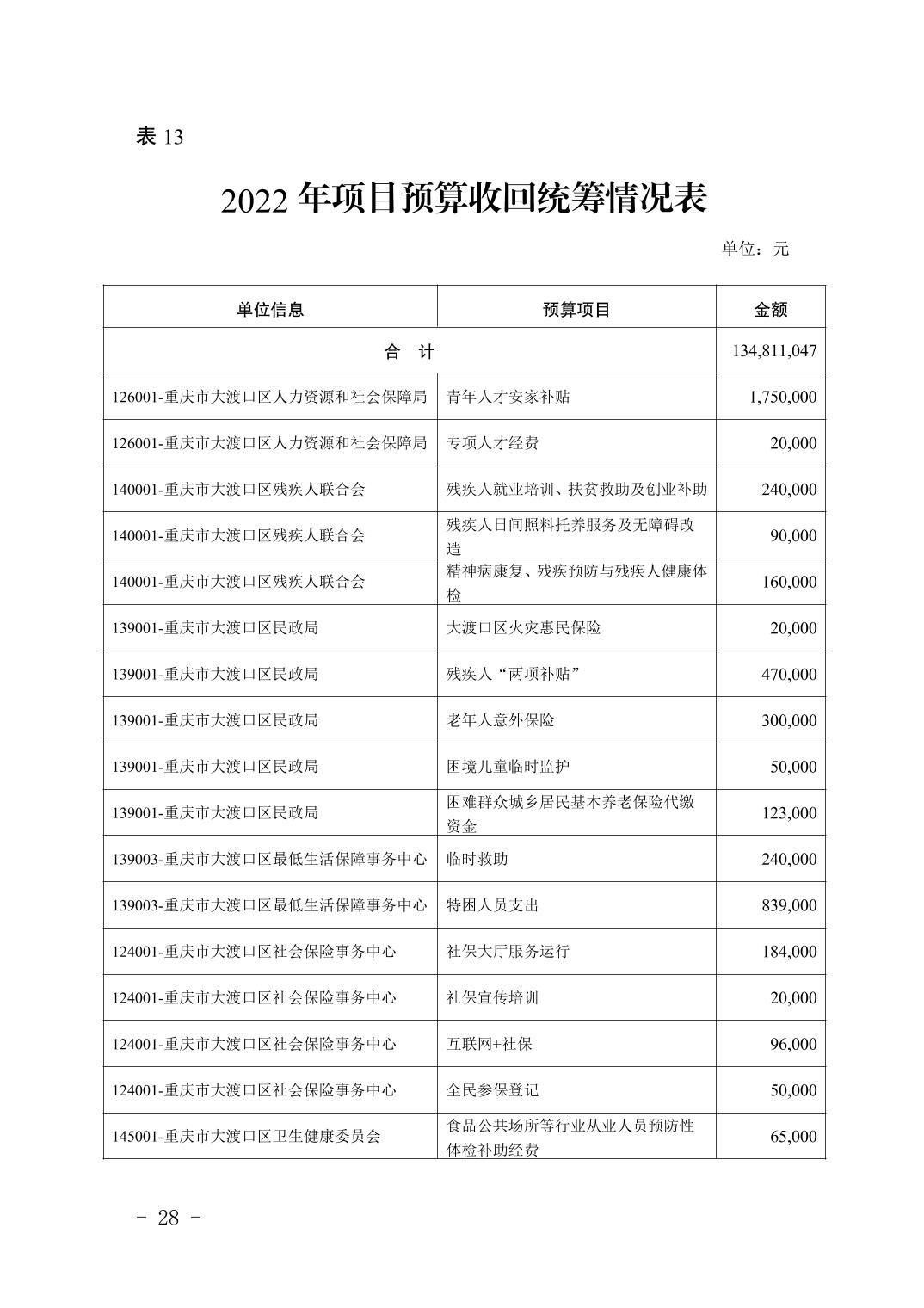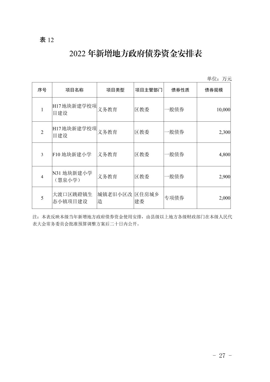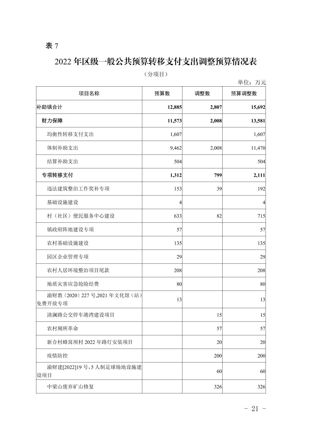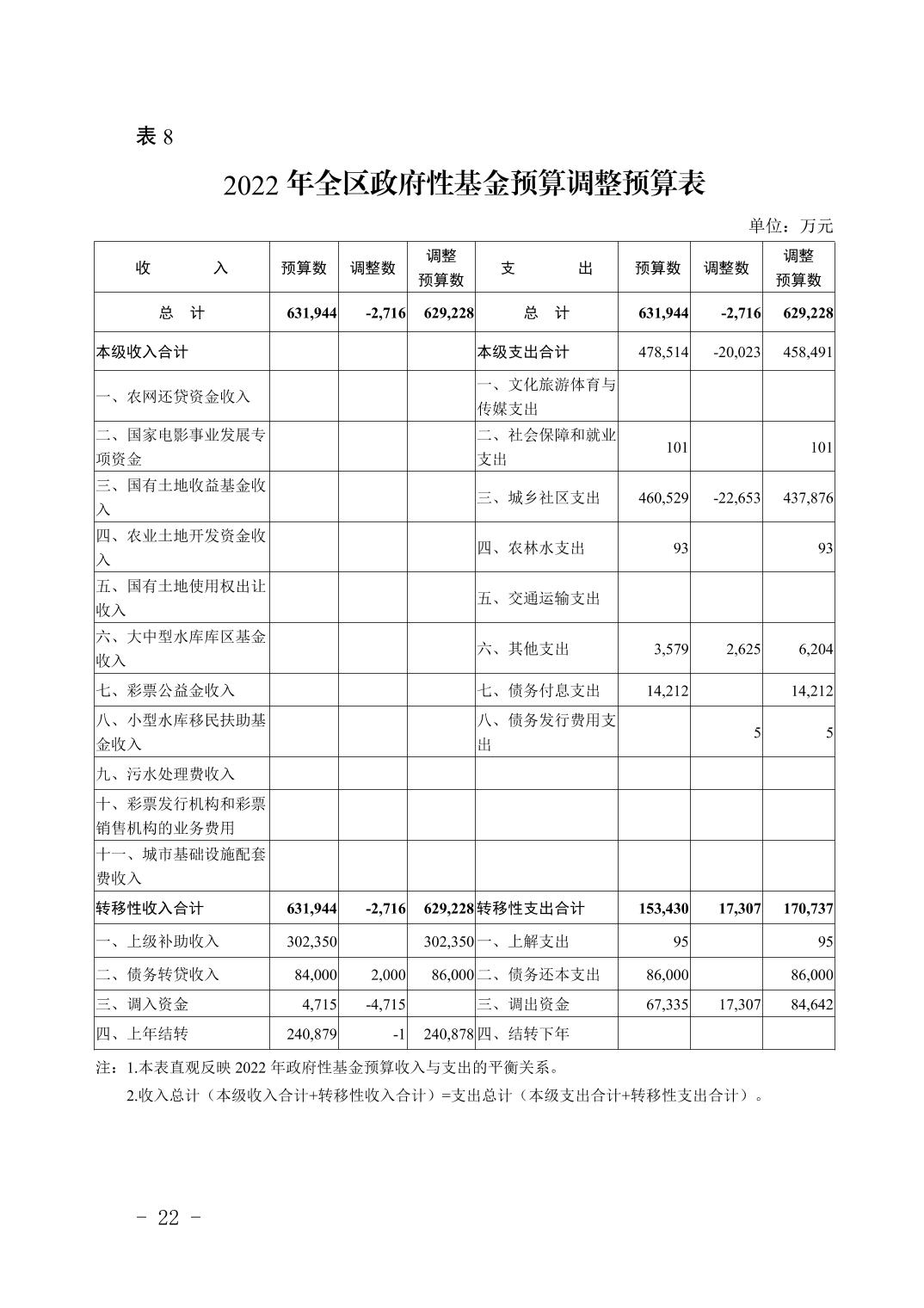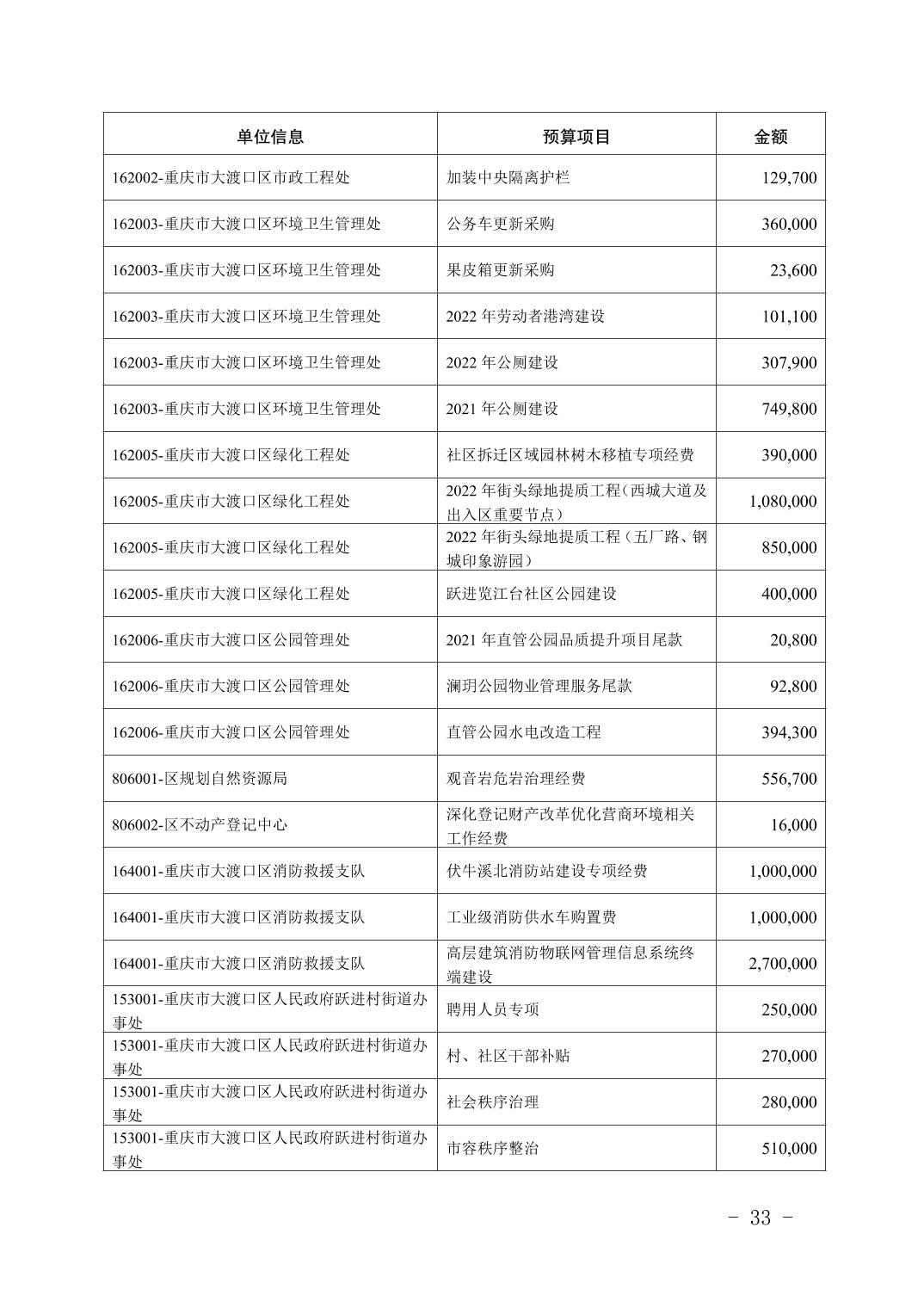重庆市大渡口区人民政府关于2022年预算调整方案(草案)的报告