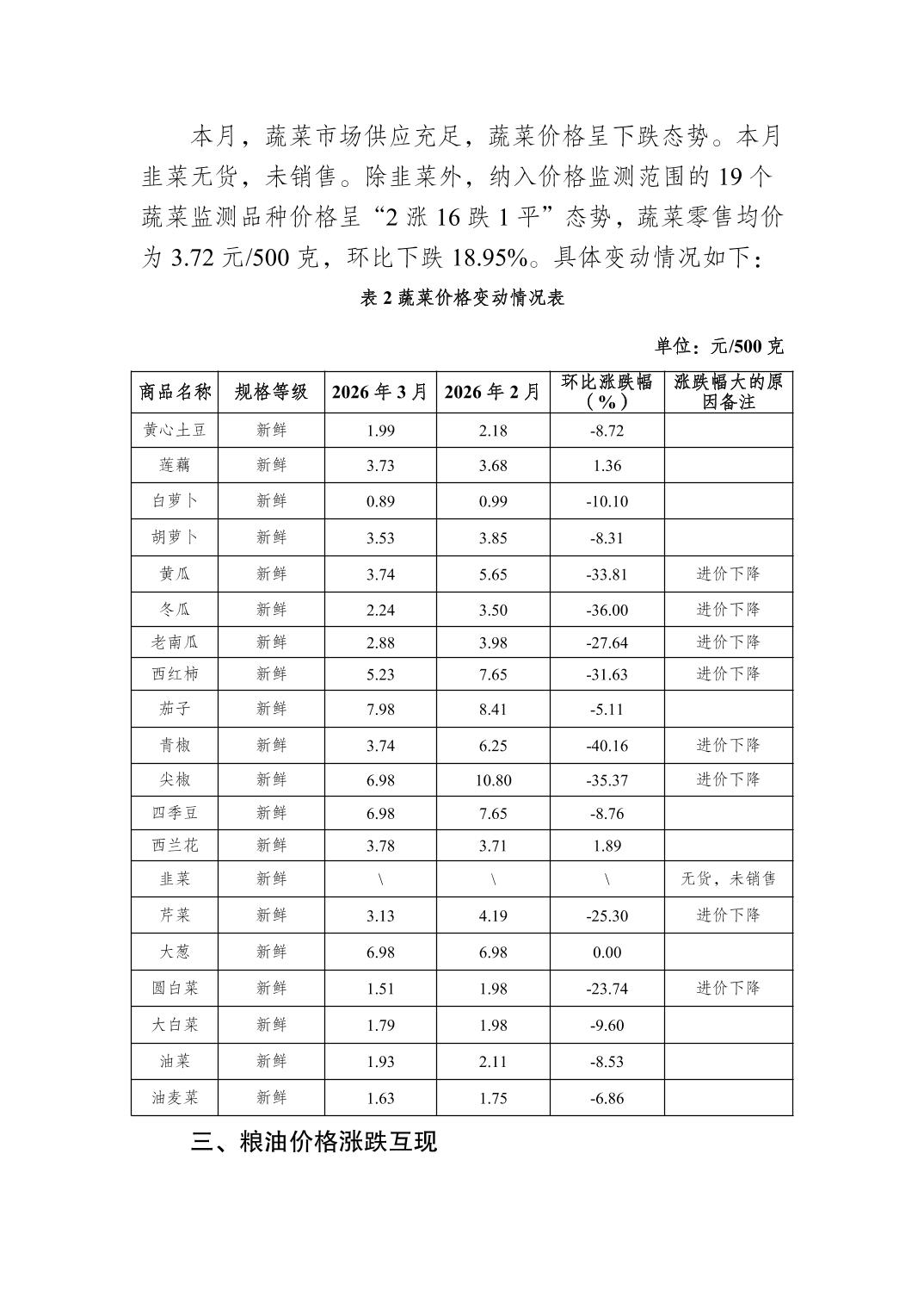 大渡口区2026年3月份市场价格监测分析