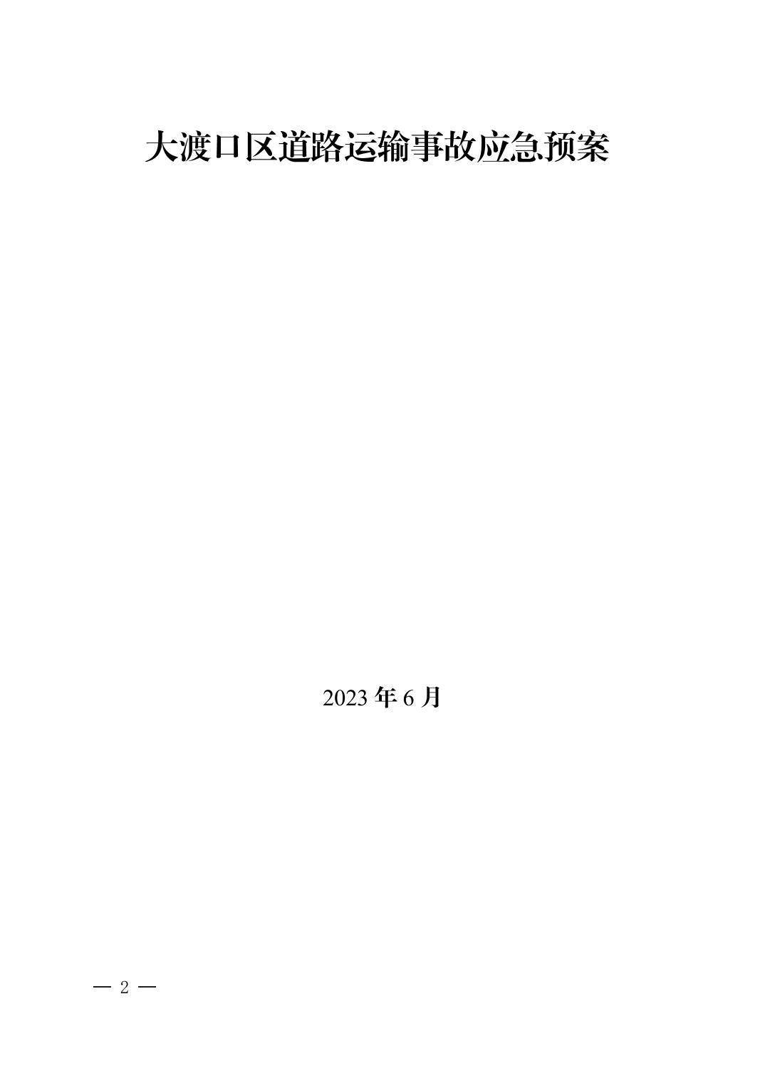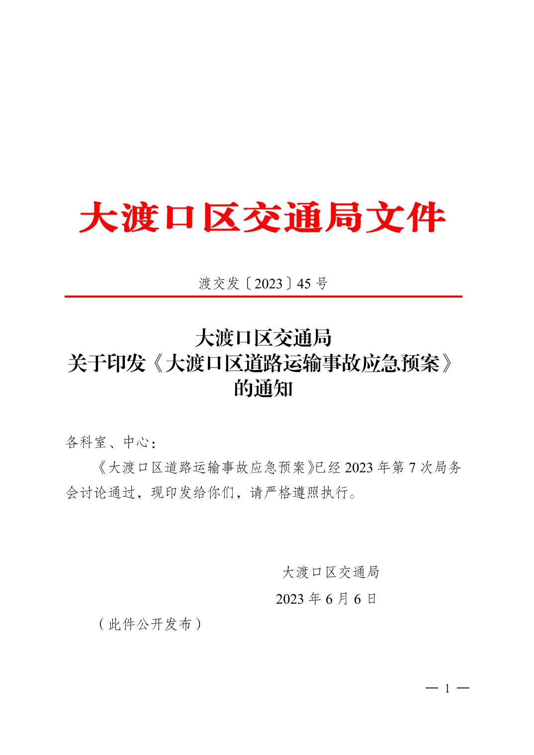 大渡口区交通局关于印发《大渡口区道路运输事故应急预案》的通知