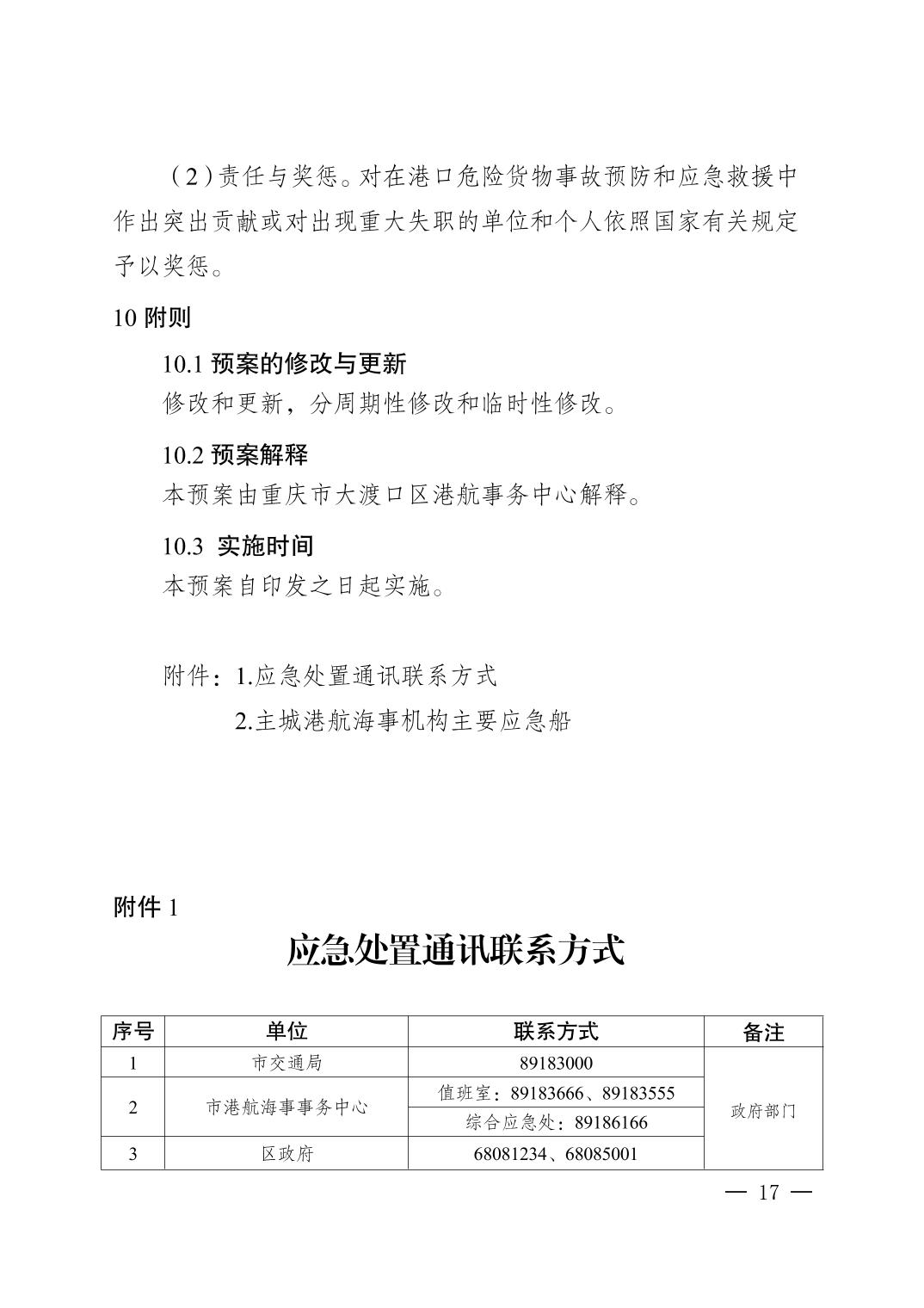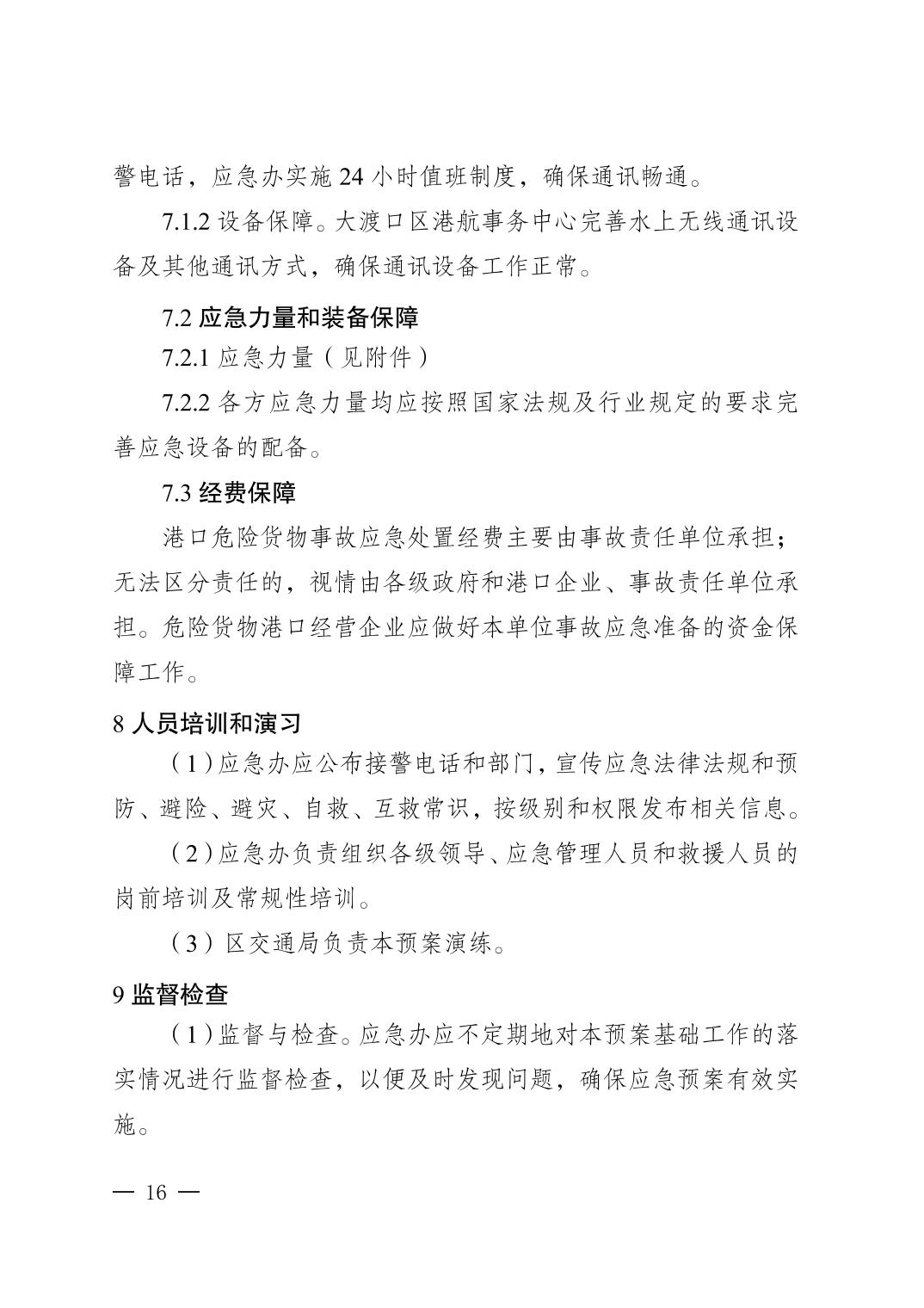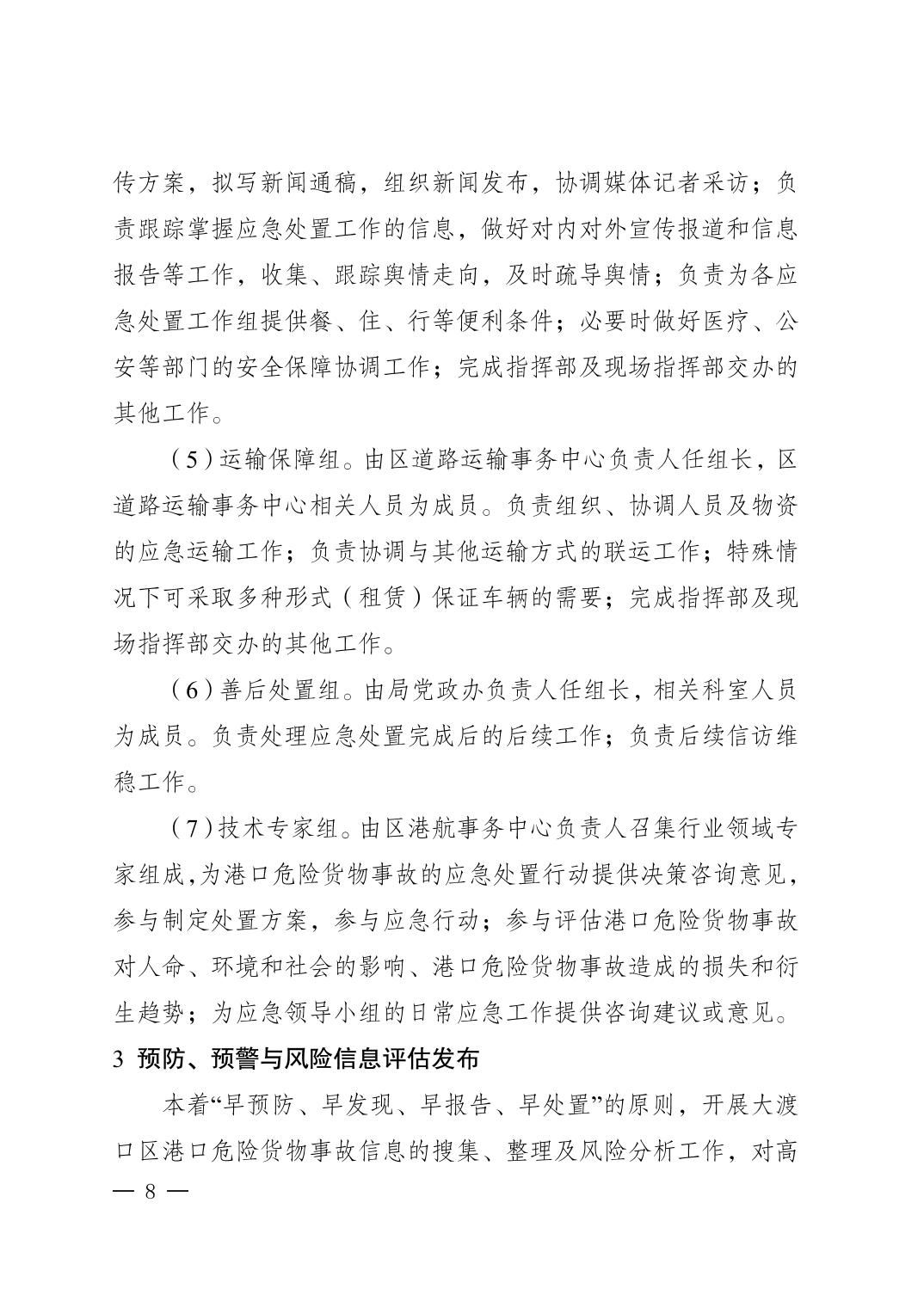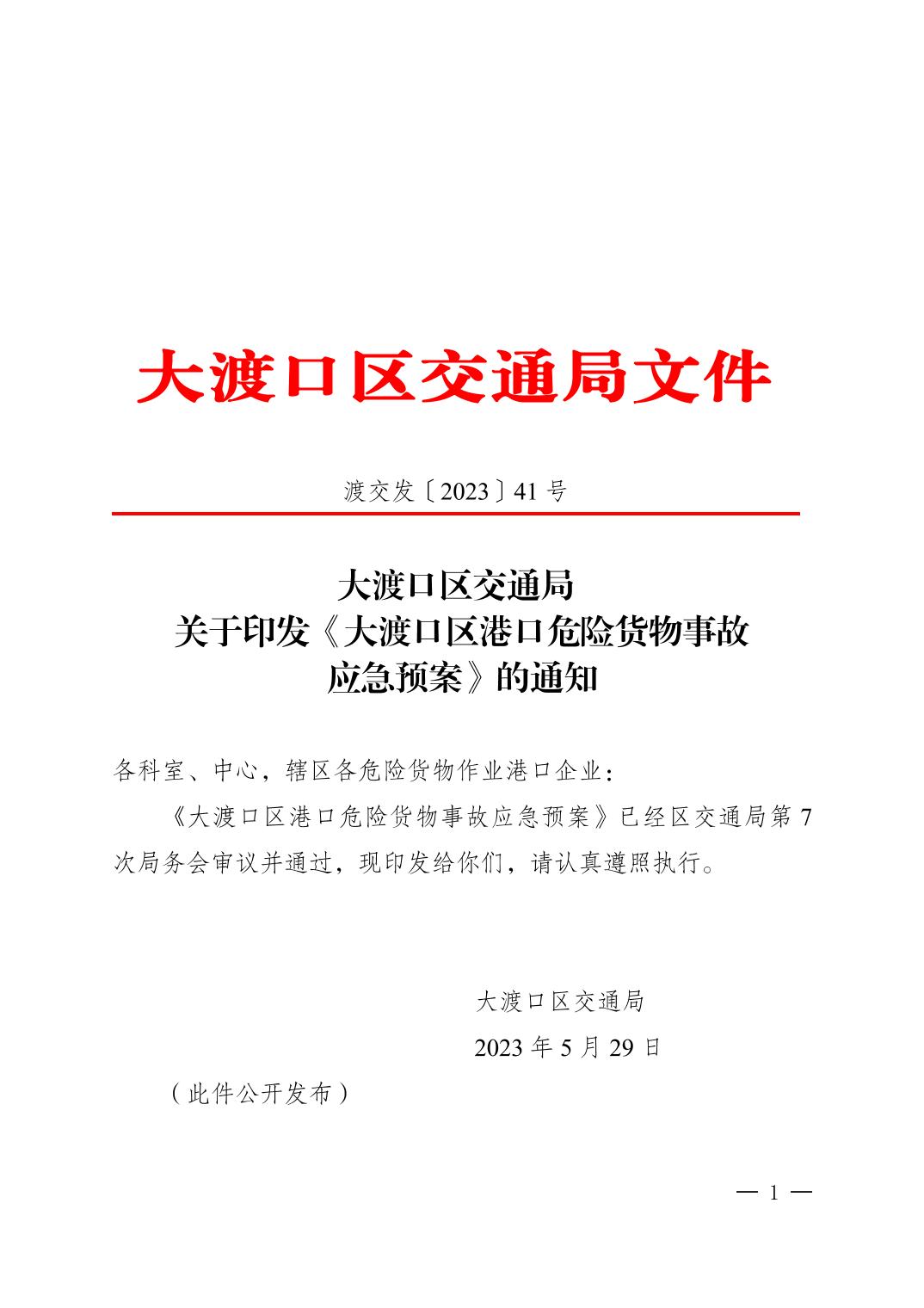 大渡口区交通局关于印发《大渡口区港口危险货物事故应急预案》的通知