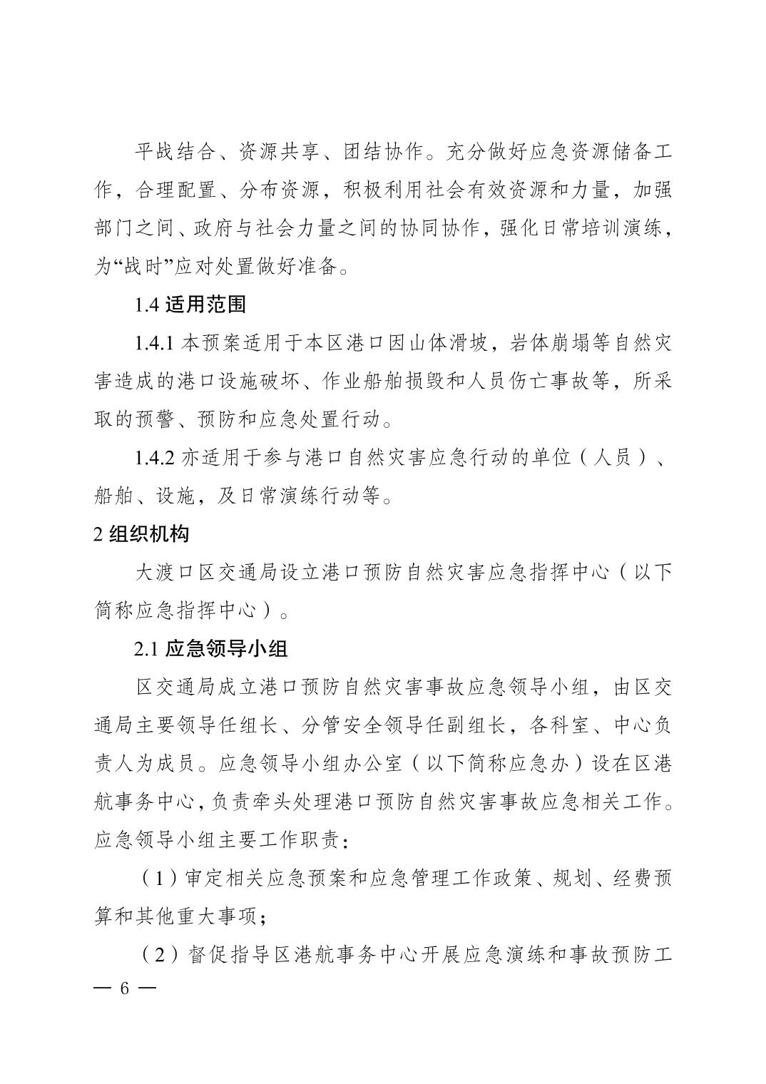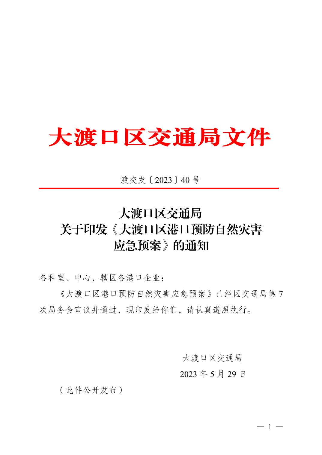 大渡口区交通局关于印发《大渡口区港口预防自然灾害应急预案》的通知