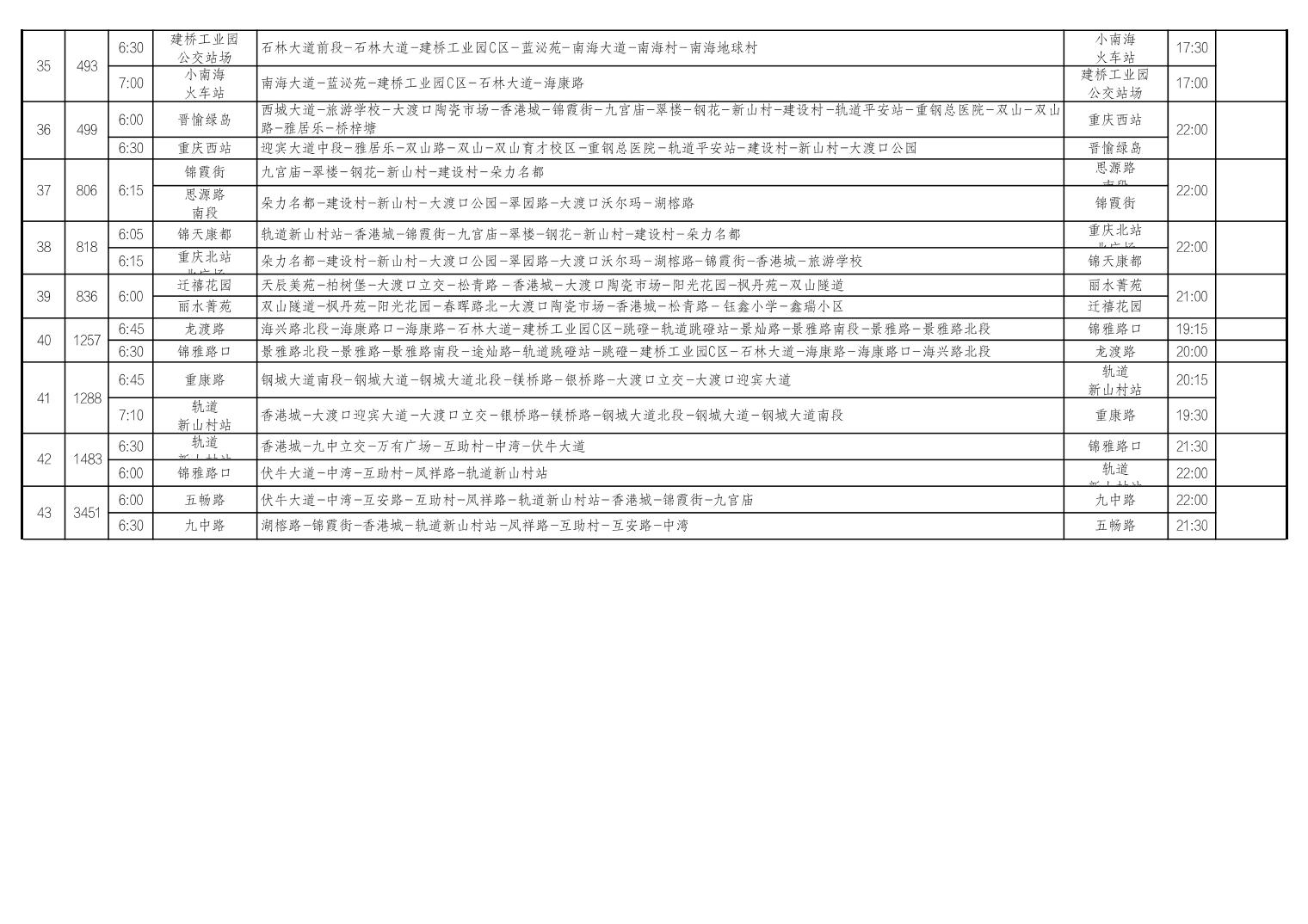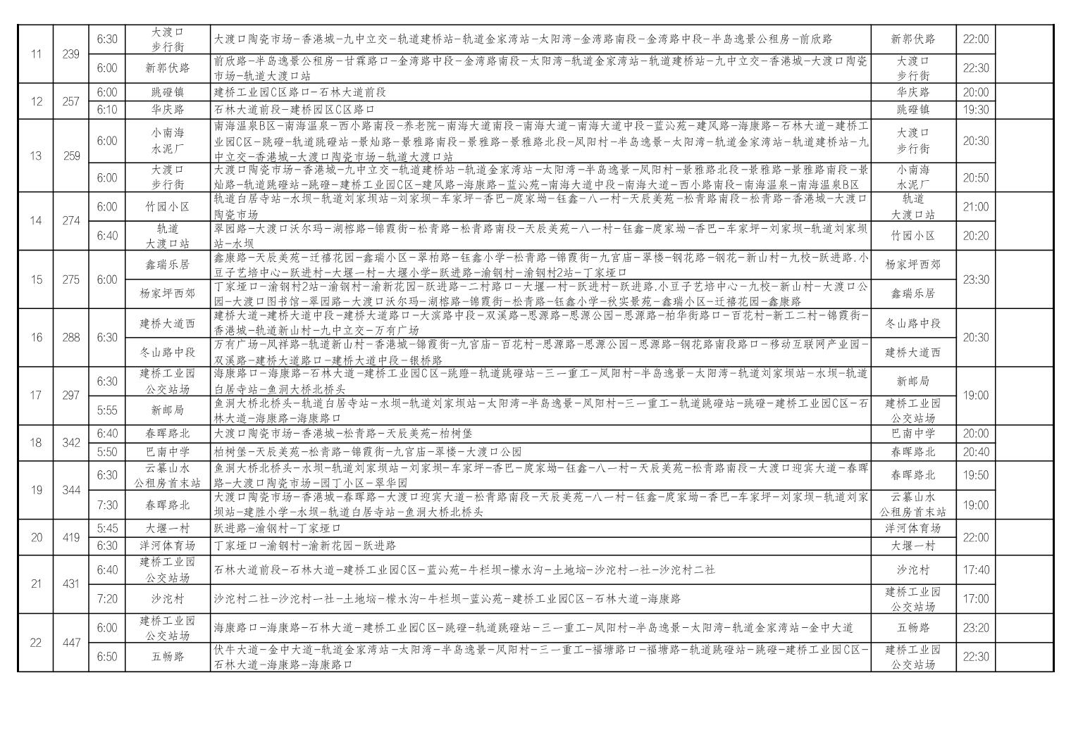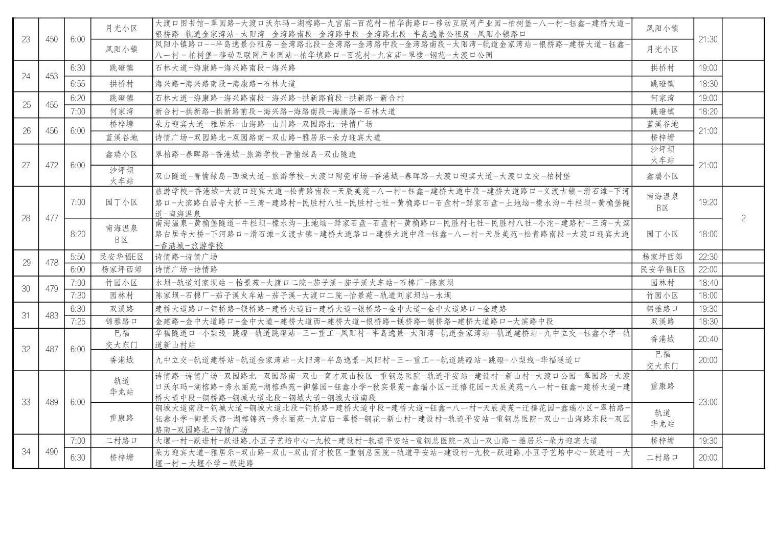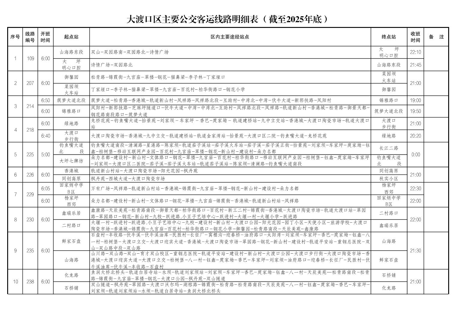 大渡口区主要公交客运线路明细表(截至2025年底)