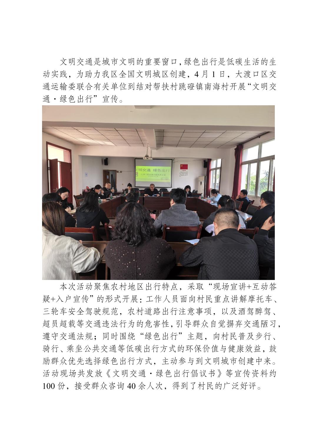 区交通运输委到跳磴镇南海村开展“文明交通·绿色出行”宣传