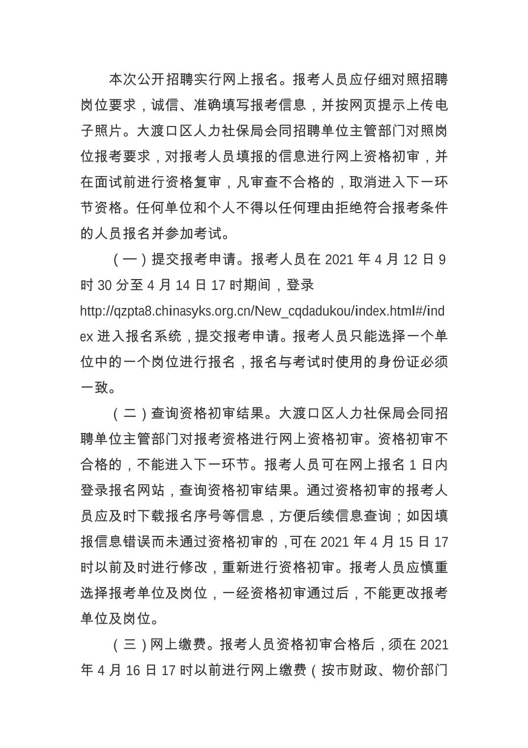 大渡口区2021年上半年公开招聘事业单位工作人员简章