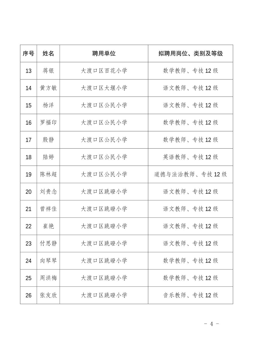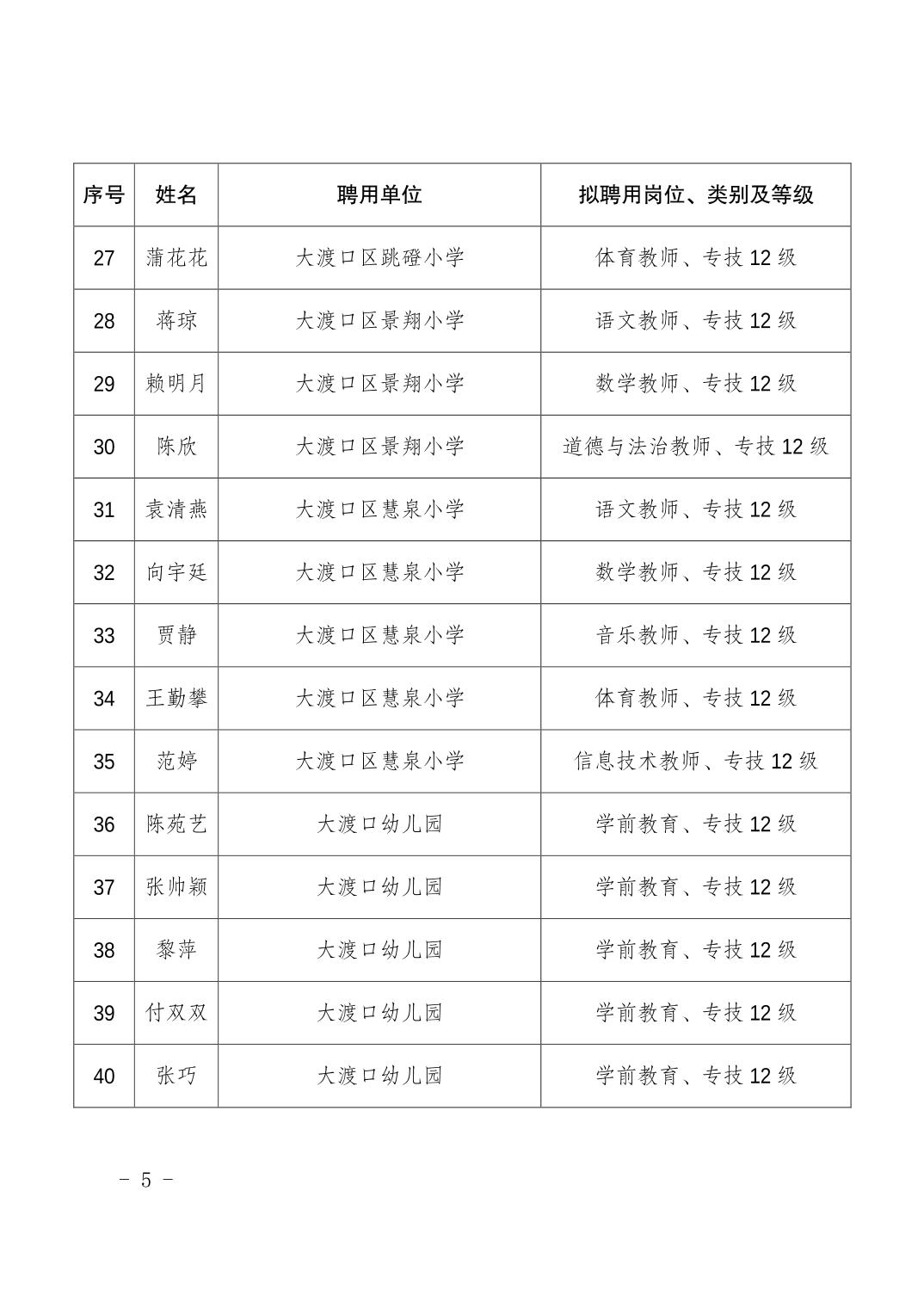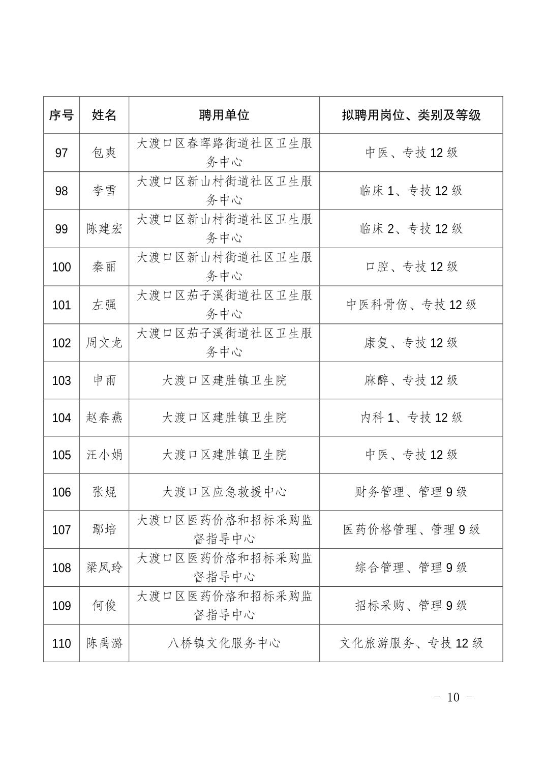 大渡口区人力资源和社会保障局关于同意聘用倪寒等118名同志为事业单位工作人员的通知.pdf