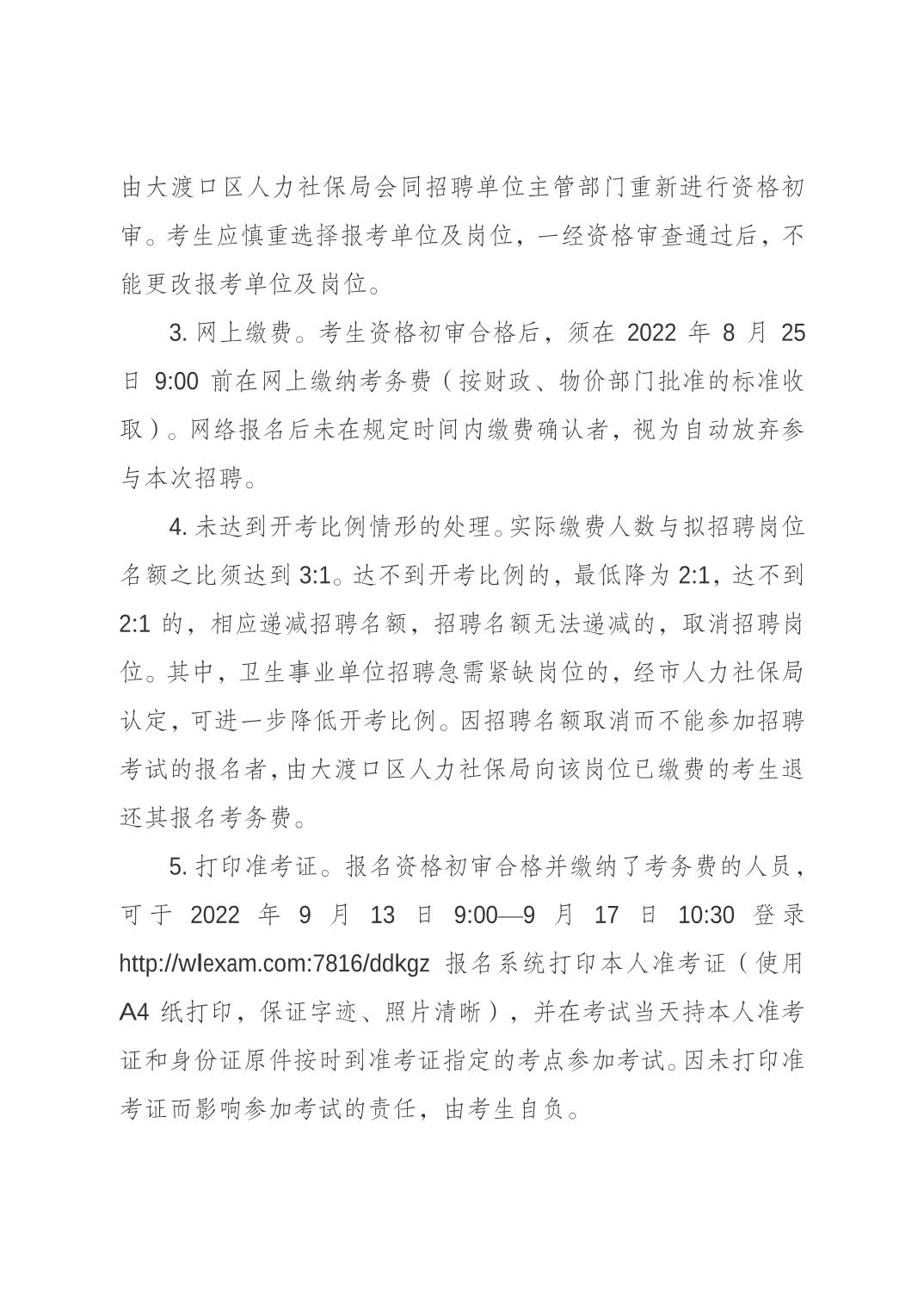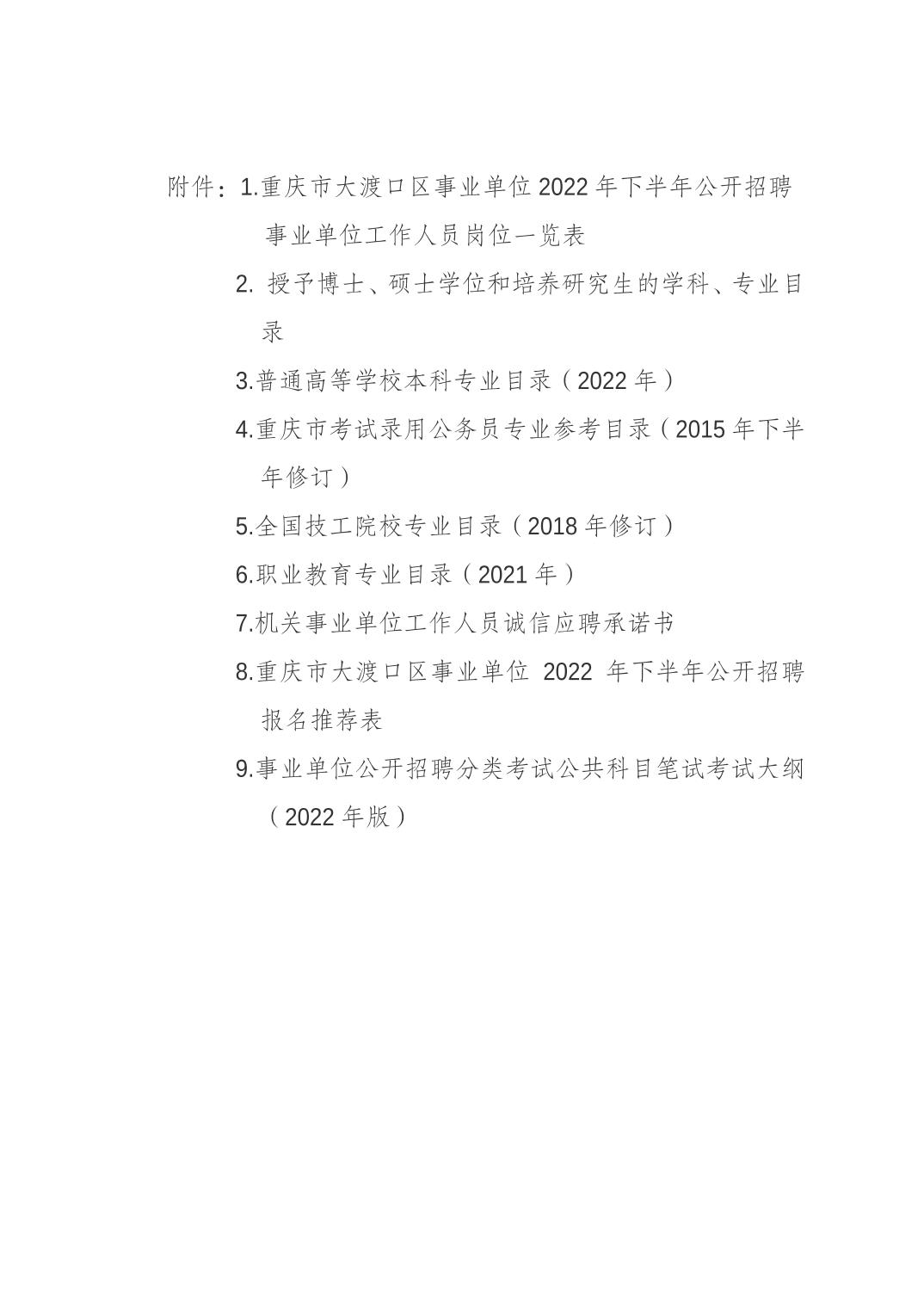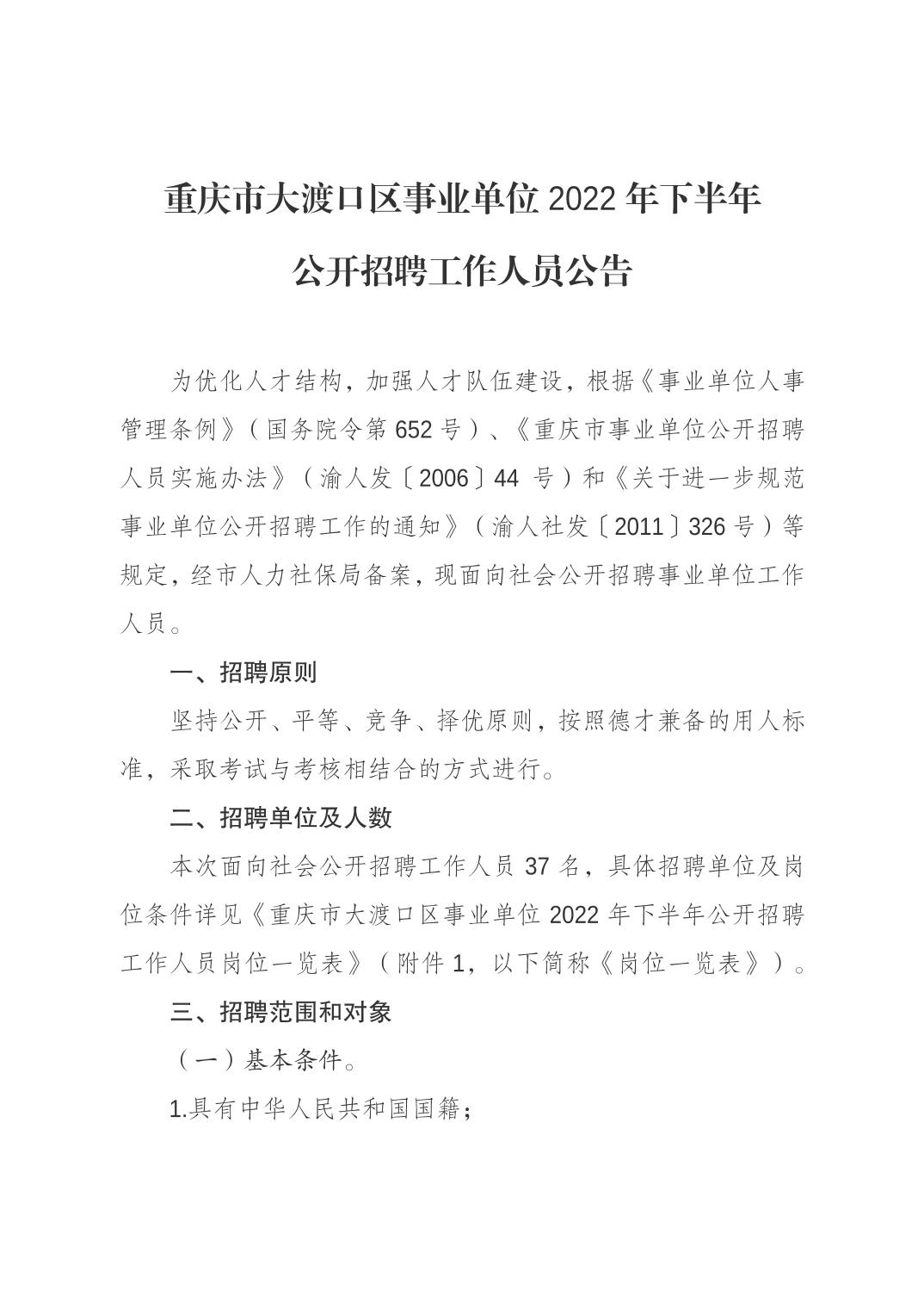 重庆市大渡口区事业单位2022年下半年公开招聘工作人员公告