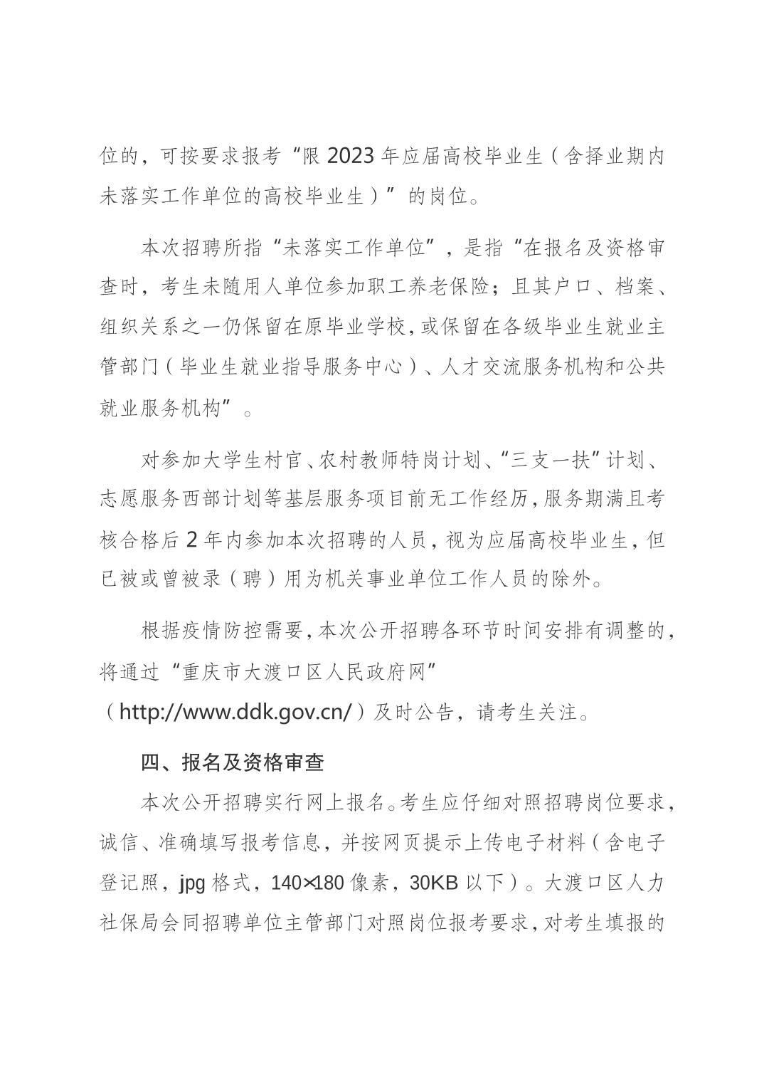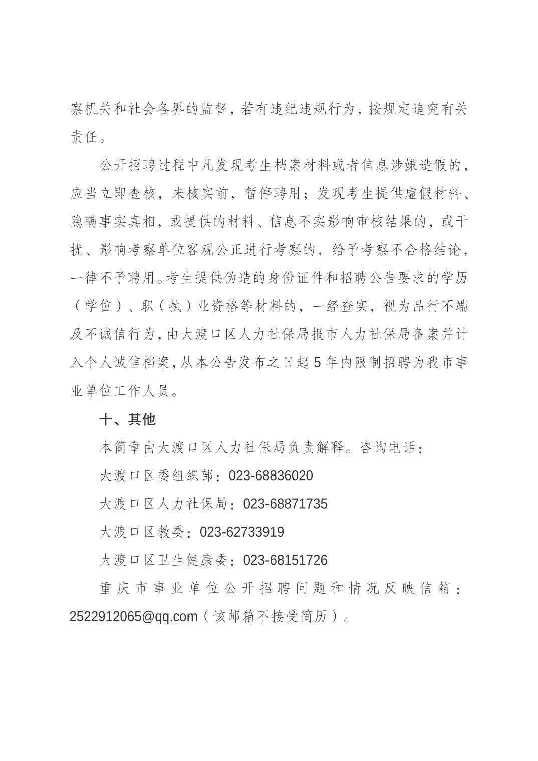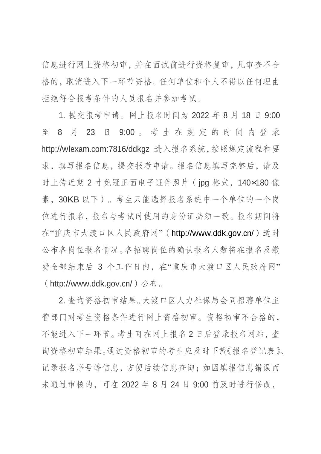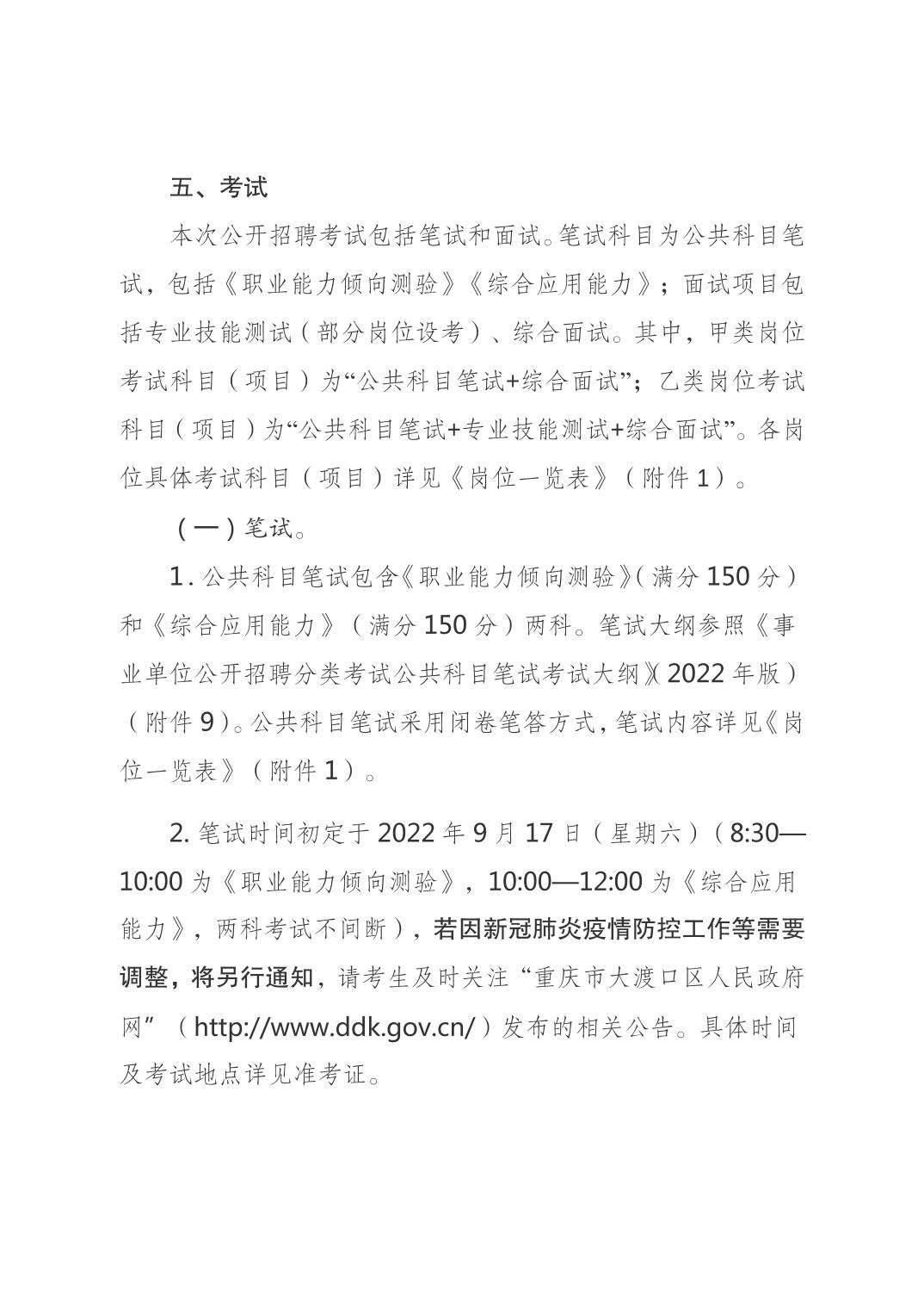 重庆市大渡口区事业单位2022年下半年公开招聘工作人员公告