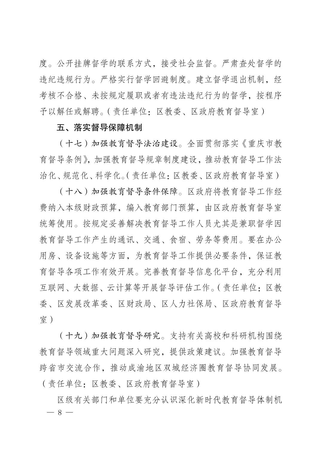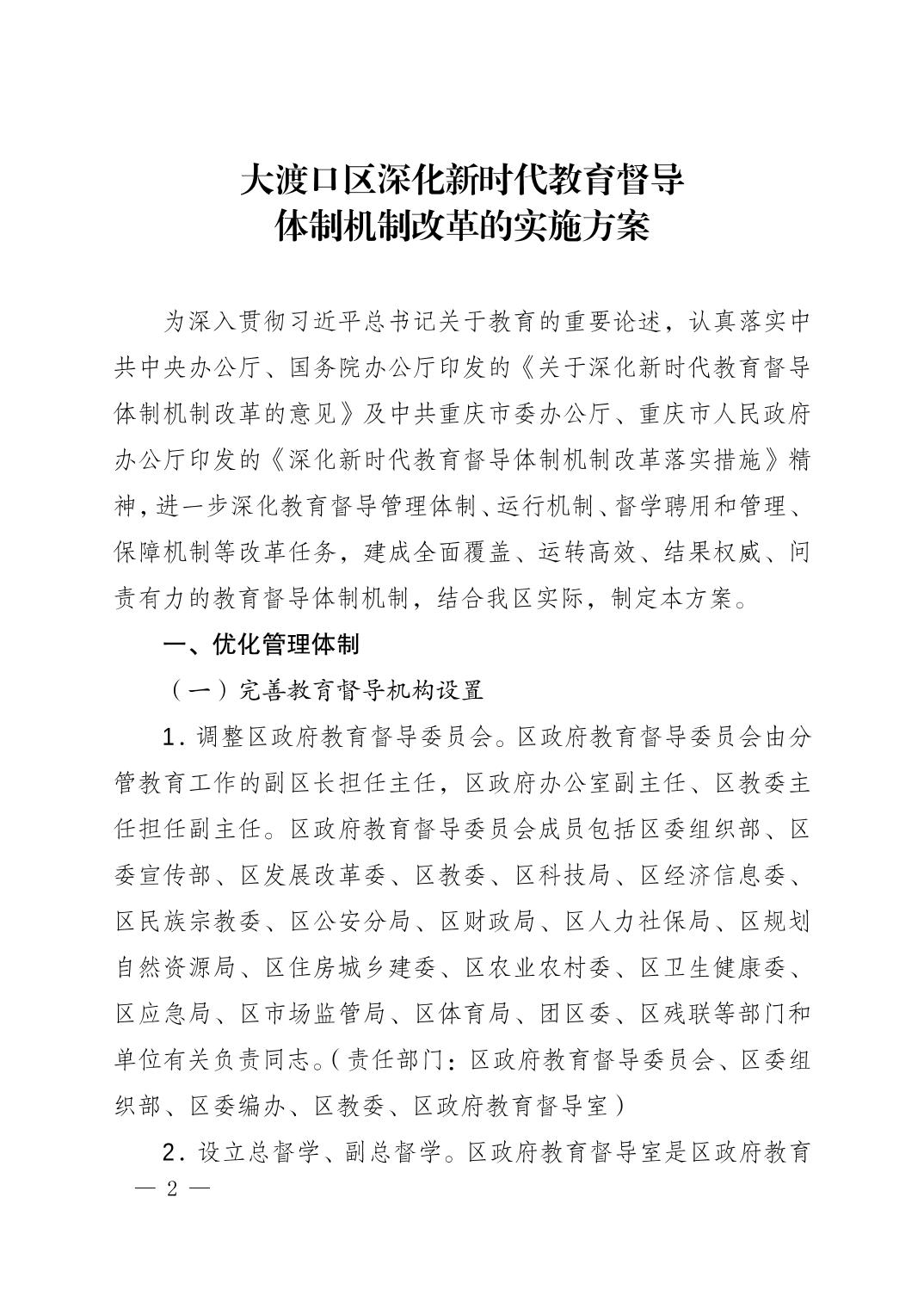 中共大渡口区委办公室大渡口区人民政府办公室关于印发《大渡口区深化新时代教育督导体制机制改革的实施方案》的通知