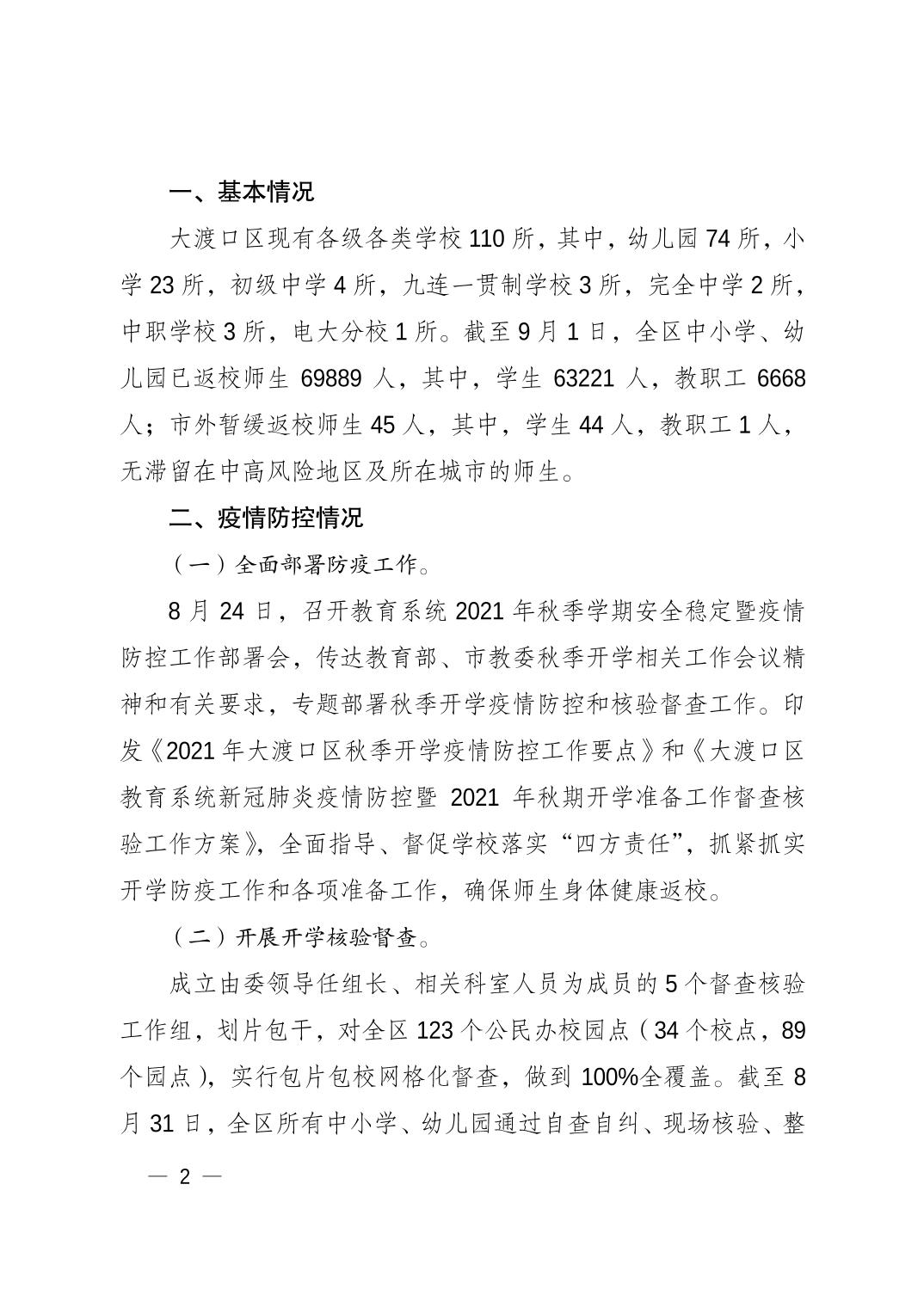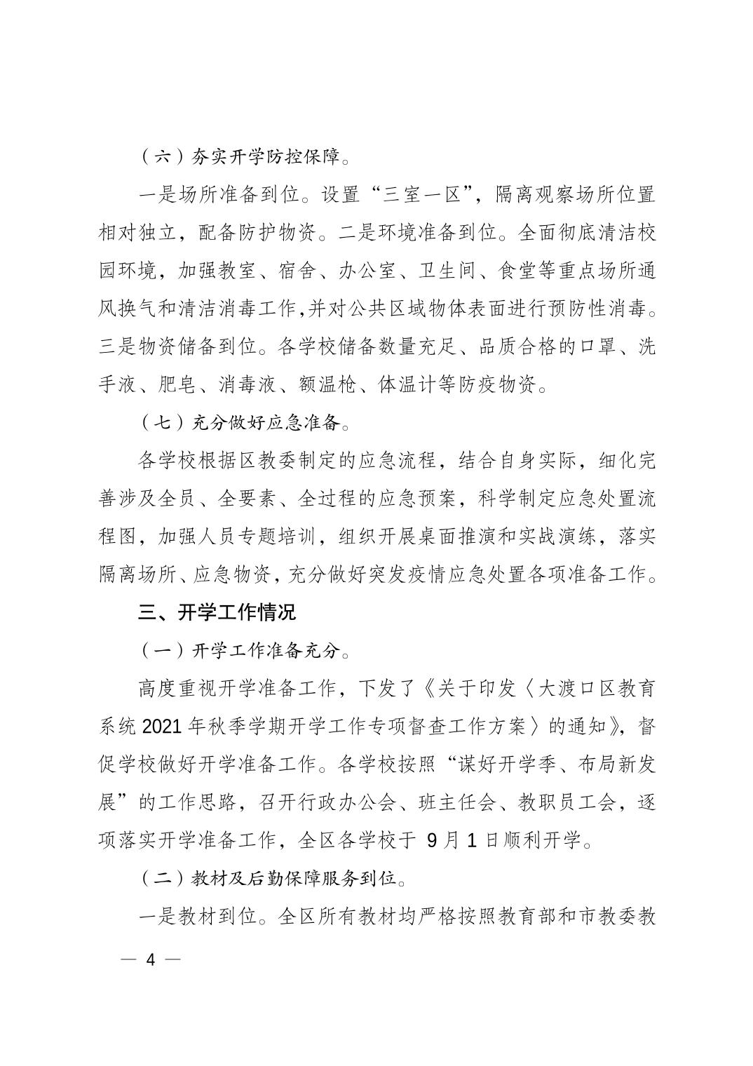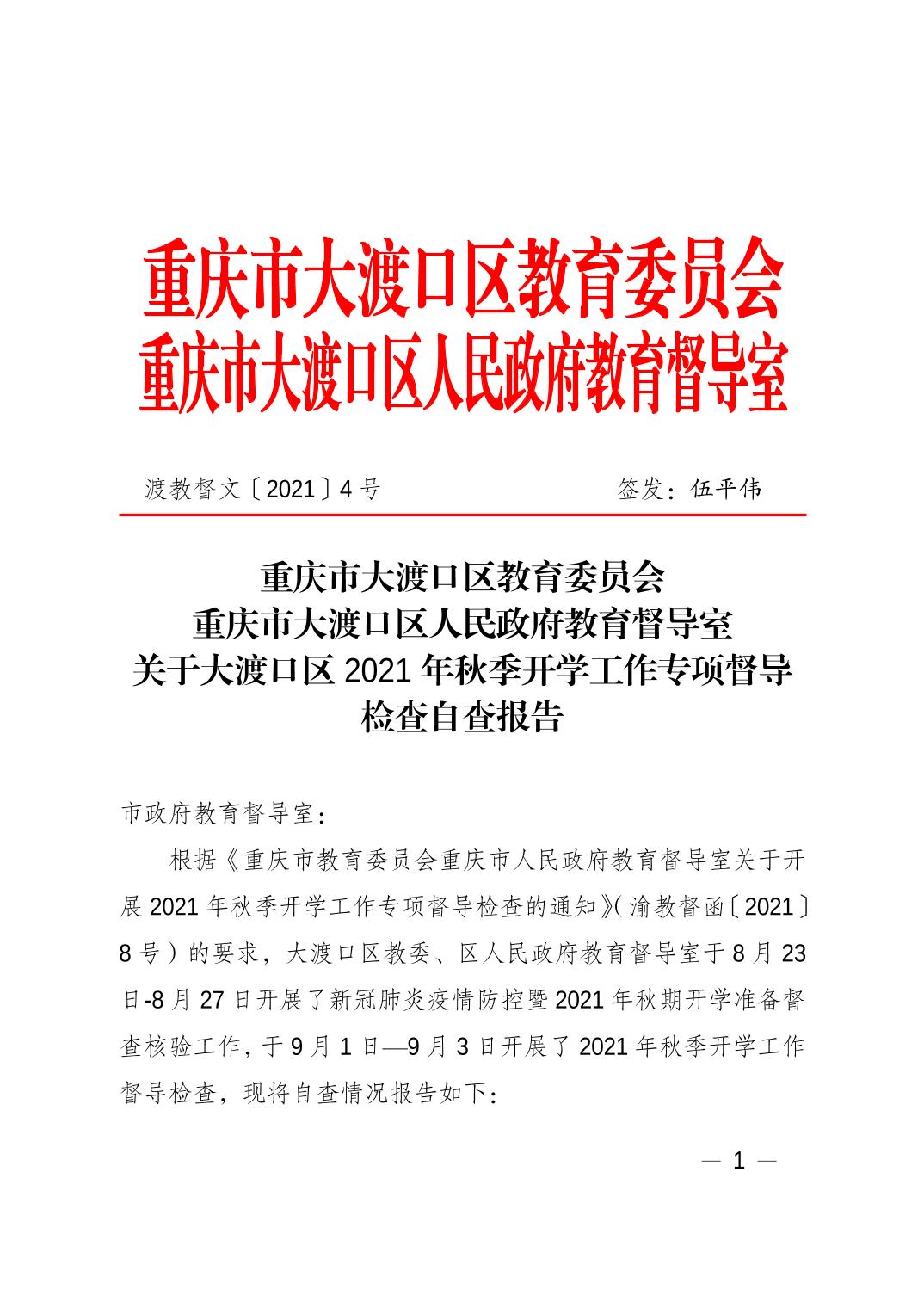 重庆市大渡口区教育委员会重庆市大渡口区人民政府教育督导室关于大渡口区2021年秋季开学工作专项督导检查自查报告.pdf