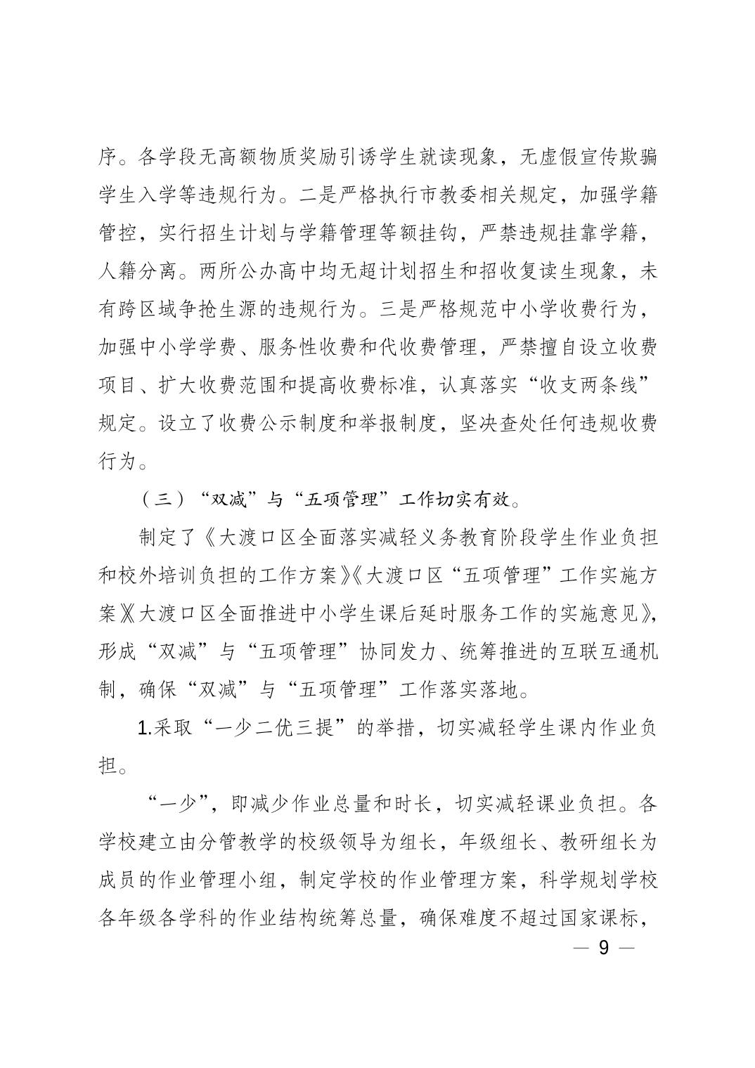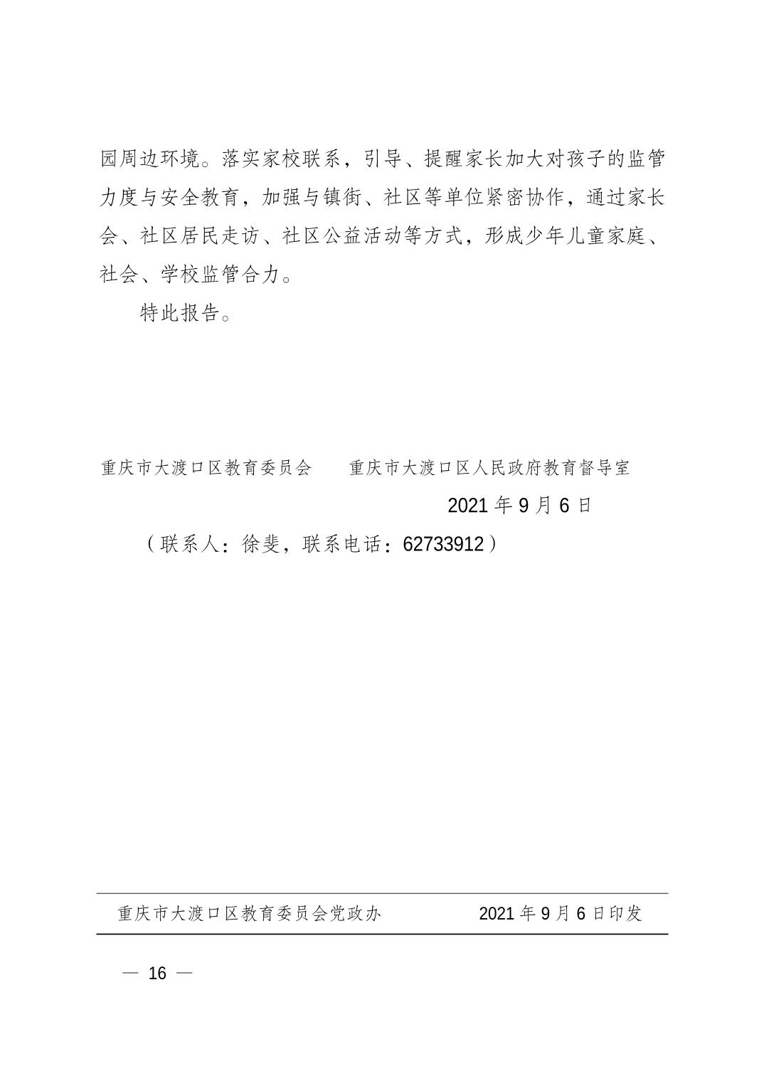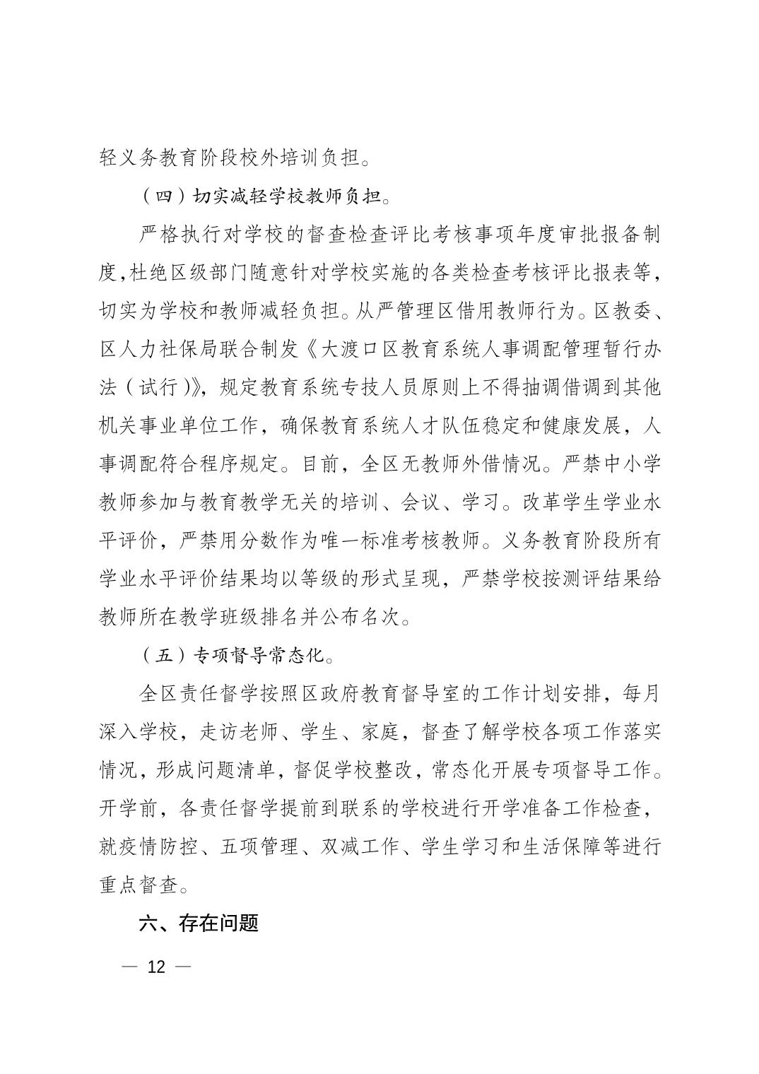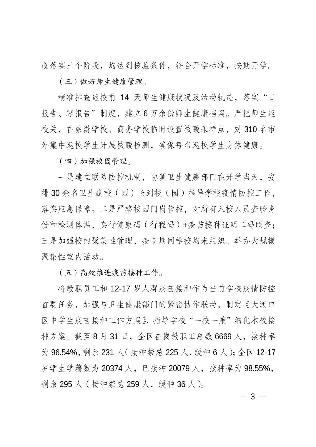 重庆市大渡口区教育委员会重庆市大渡口区人民政府教育督导室关于大渡口区2021年秋季开学工作专项督导检查自查报告.pdf