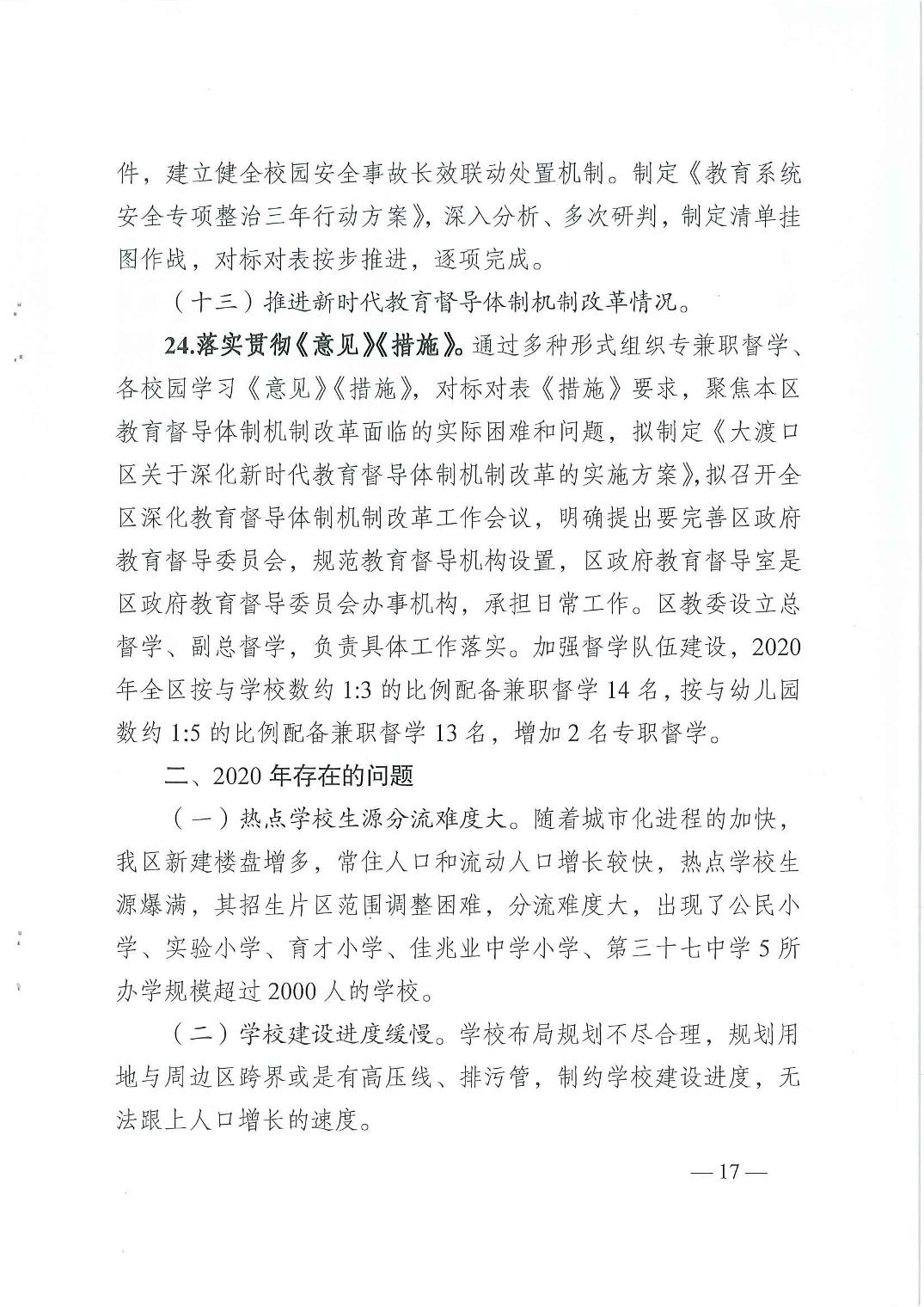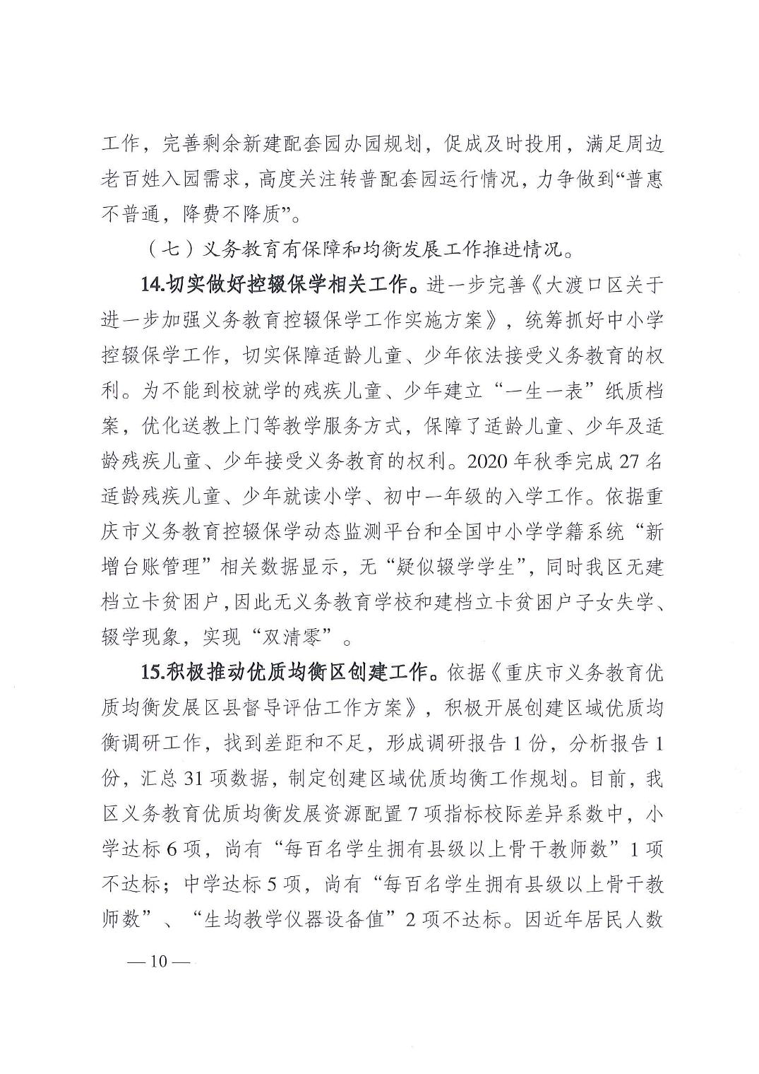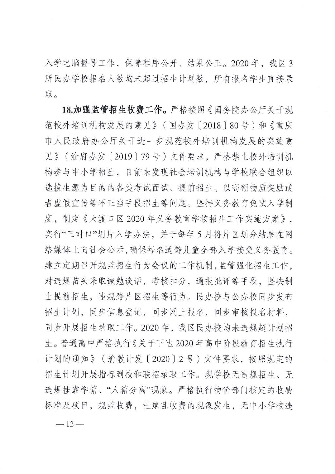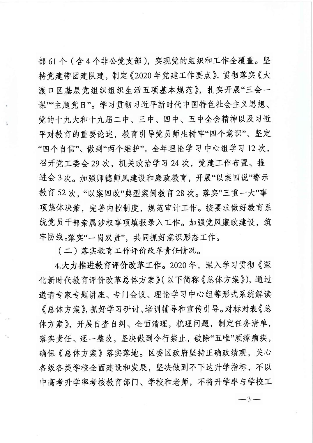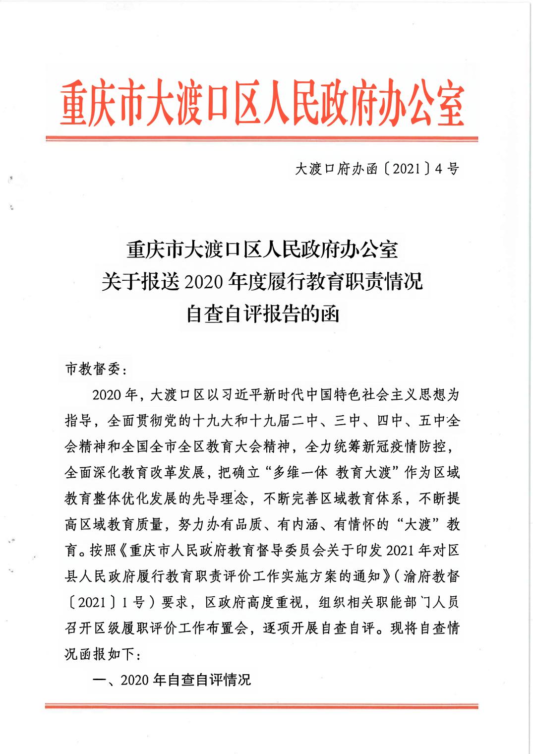 重庆市大渡口区人民政府办公室关于报送2020年度履行教育职责情况自查自评报告的函