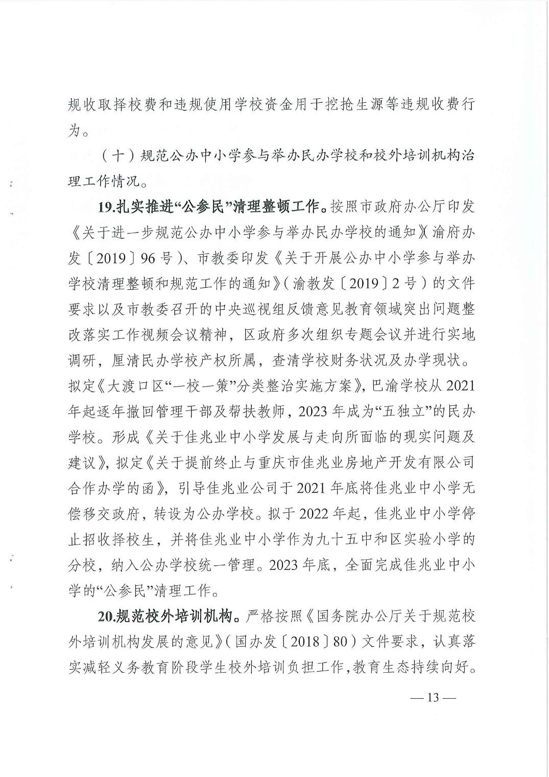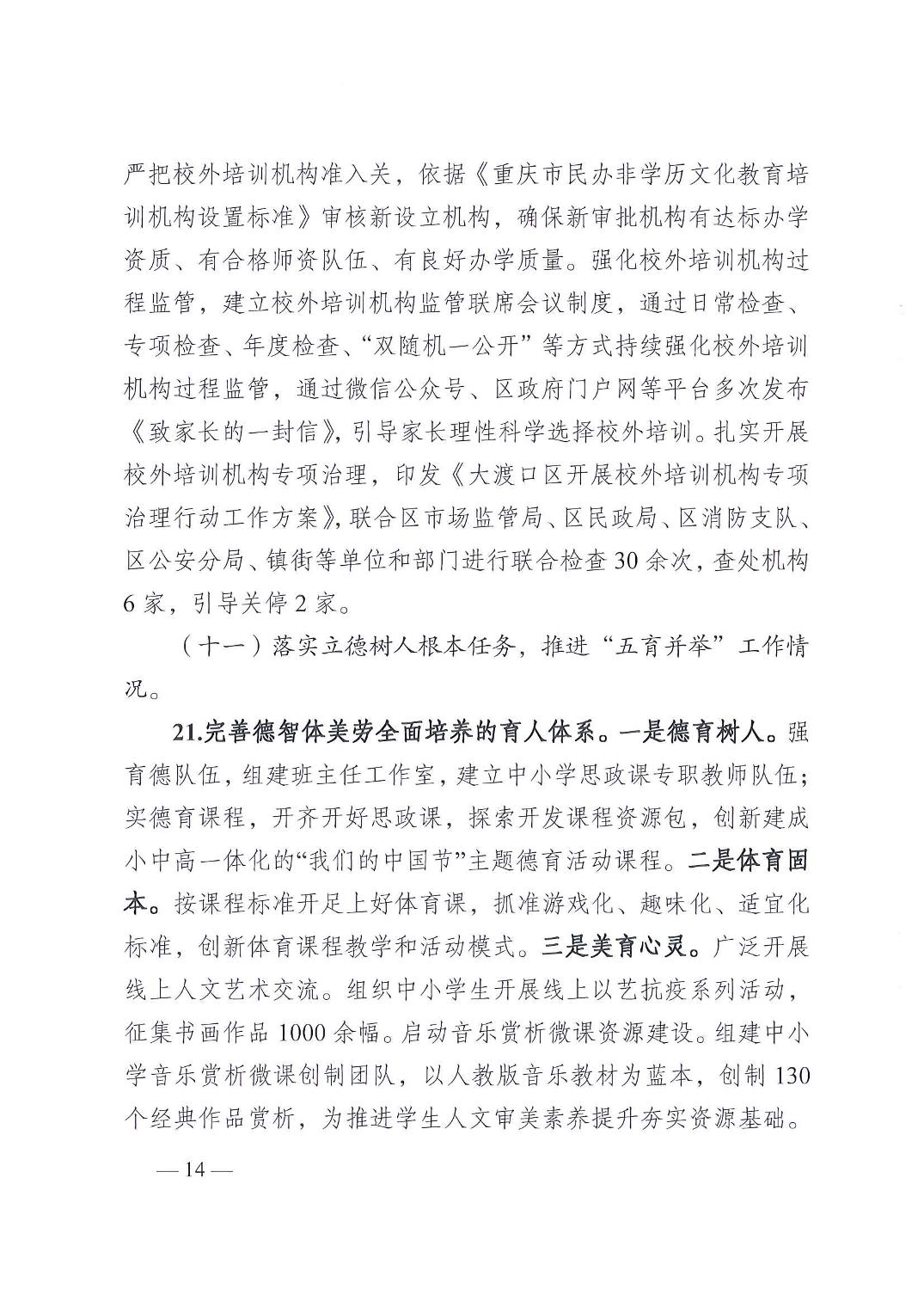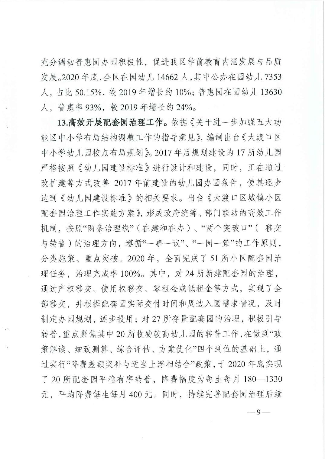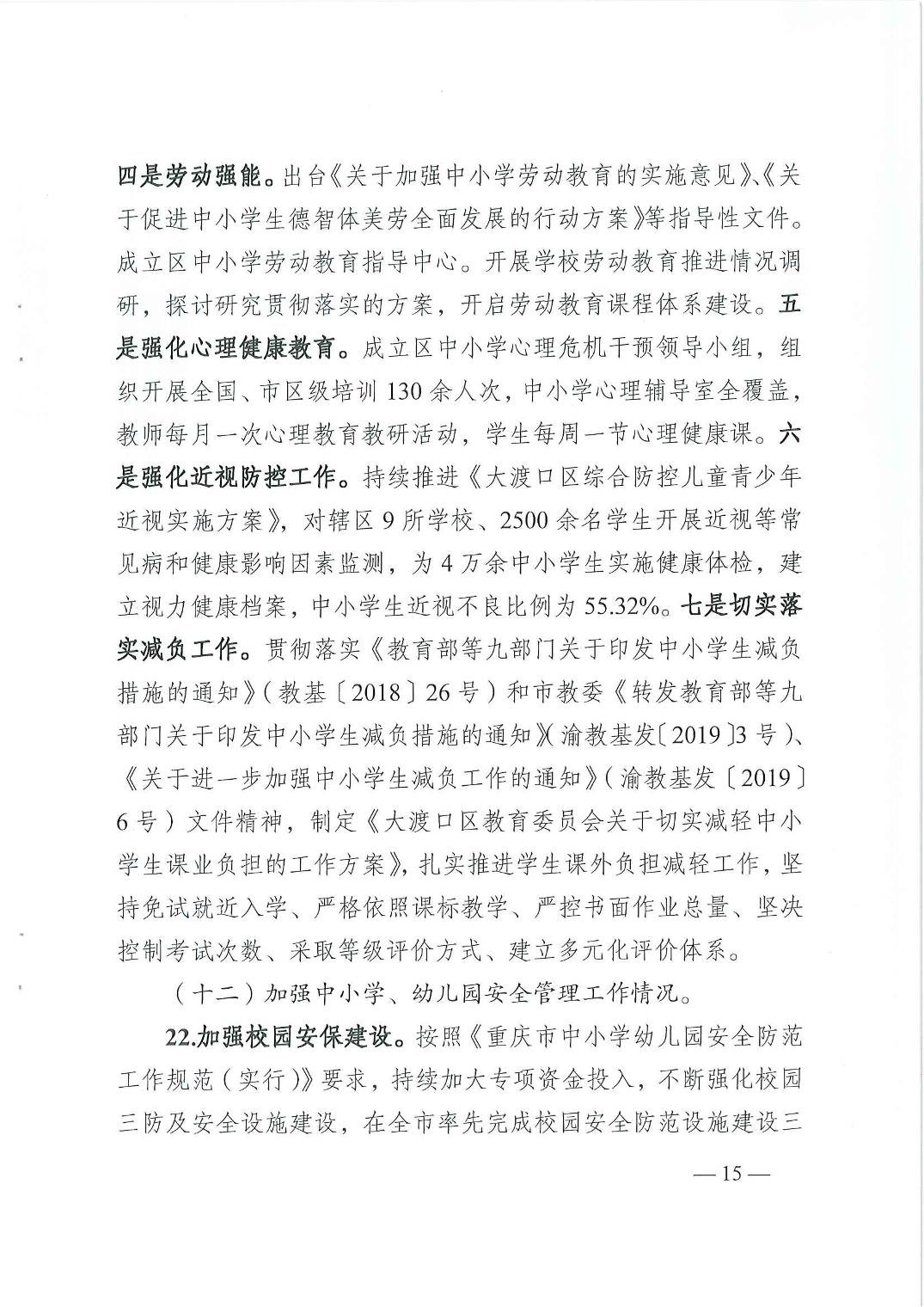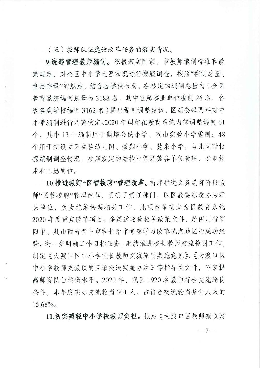 重庆市大渡口区人民政府办公室关于报送2020年度履行教育职责情况自查自评报告的函