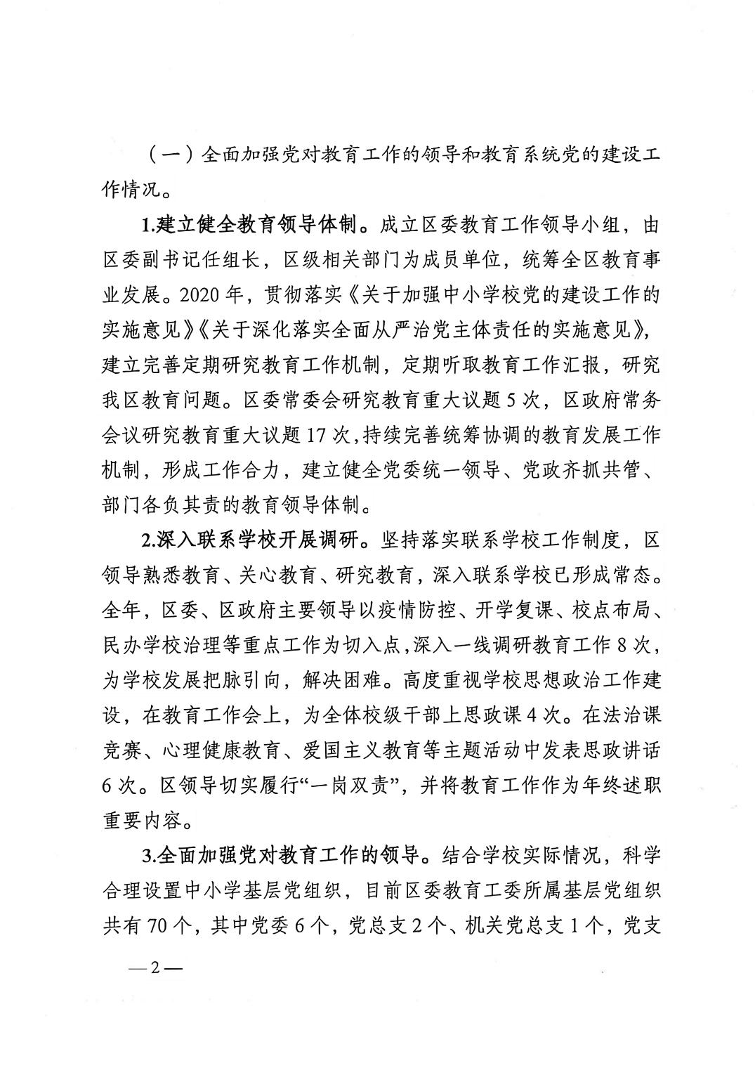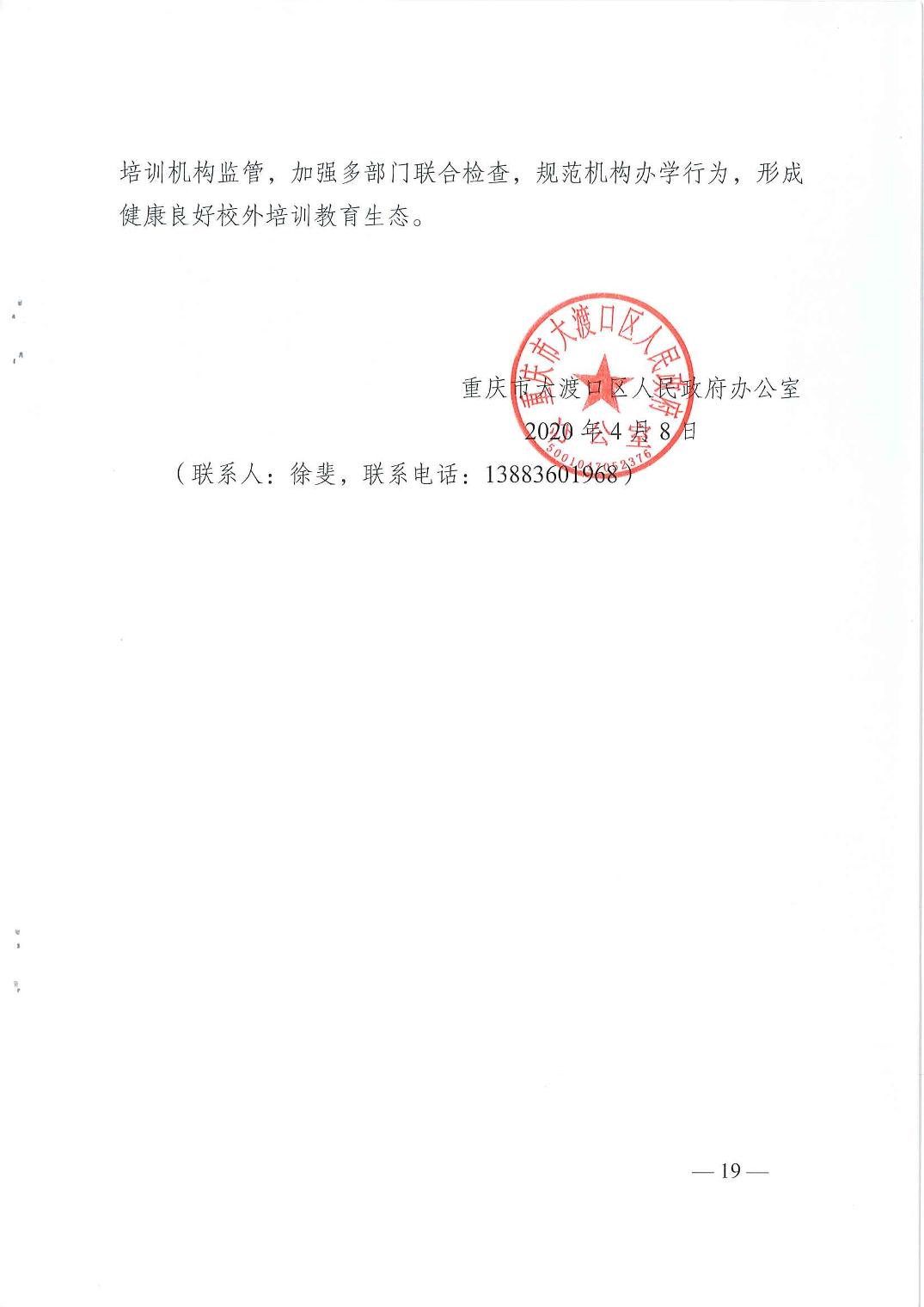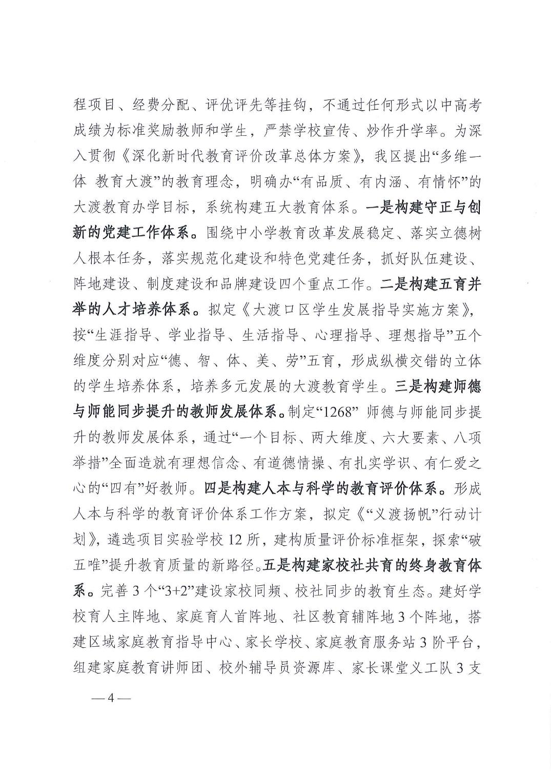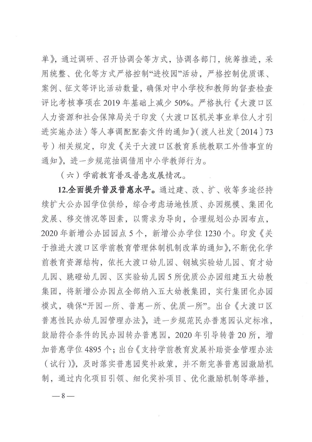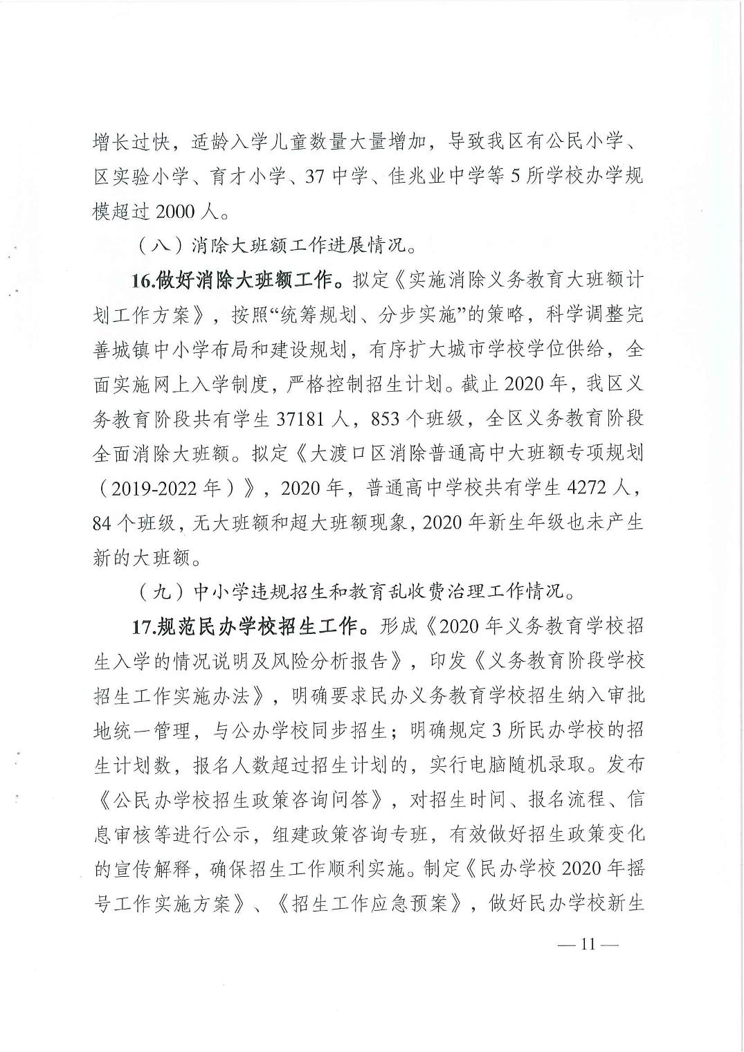 重庆市大渡口区人民政府办公室关于报送2020年度履行教育职责情况自查自评报告的函