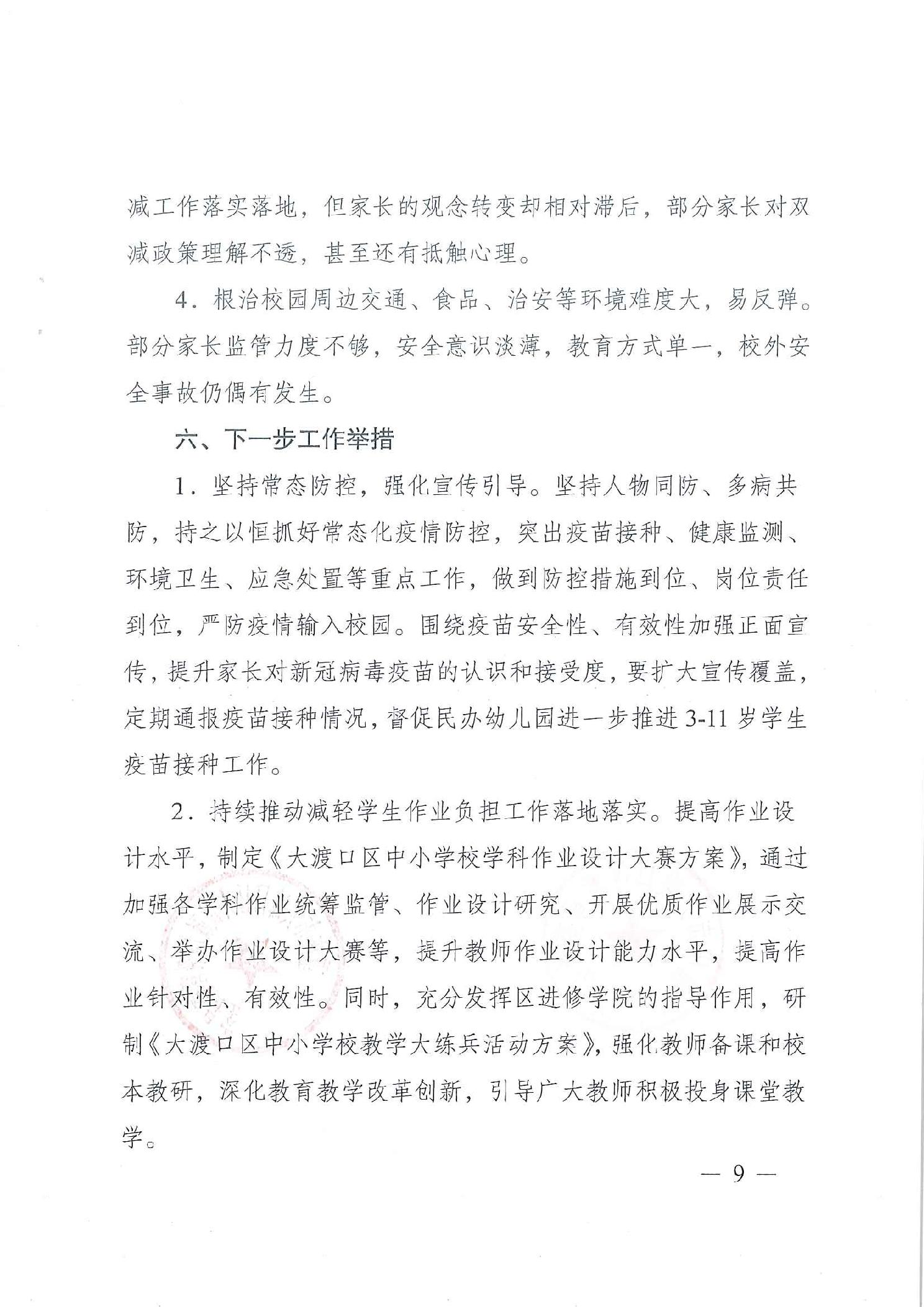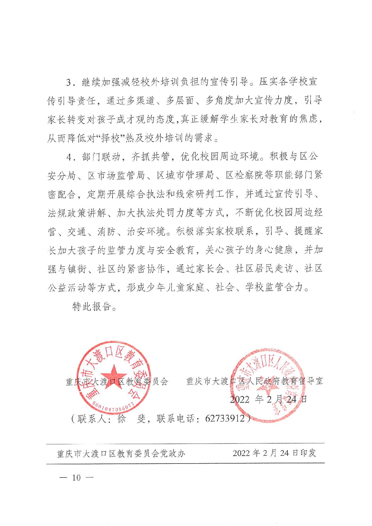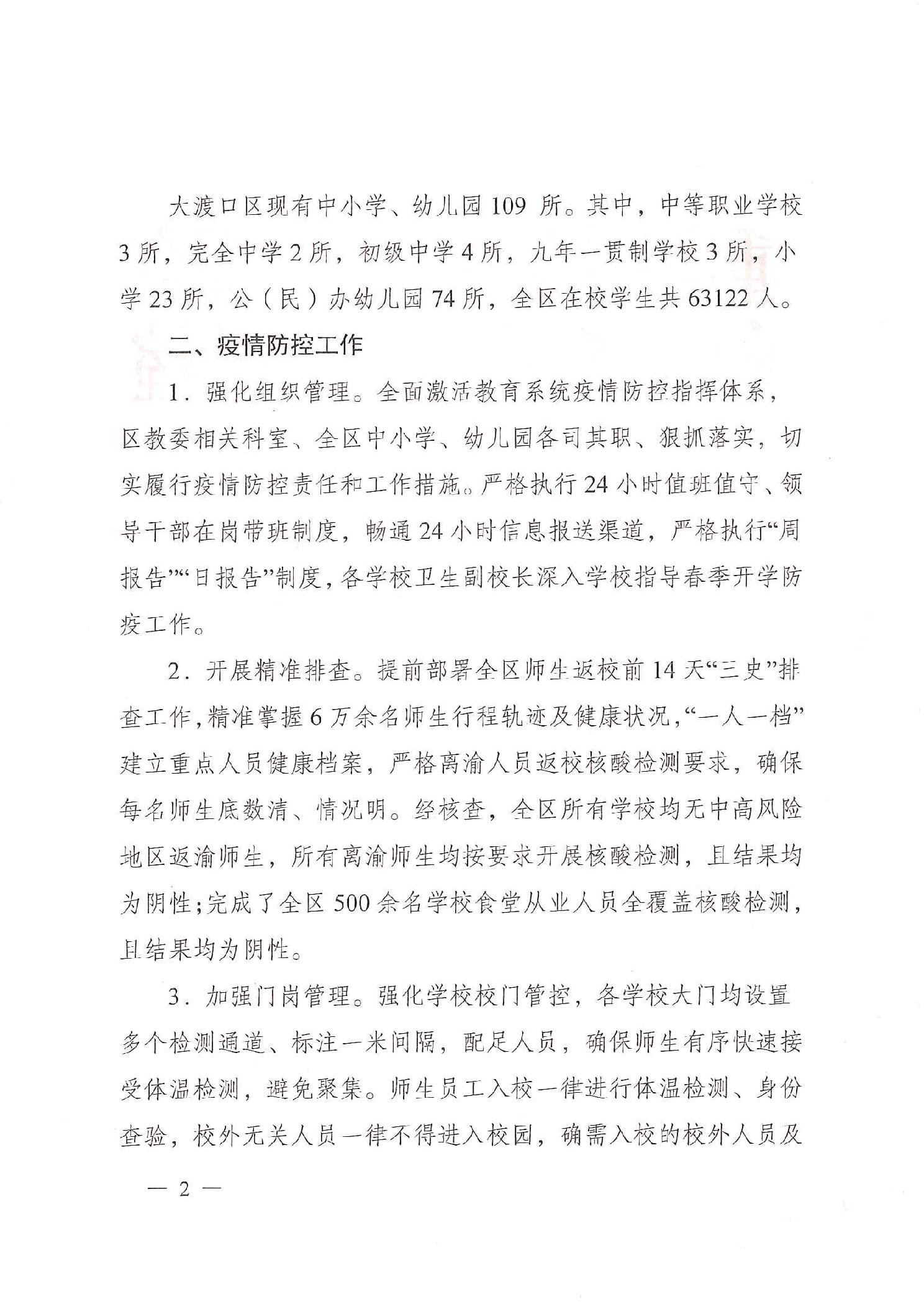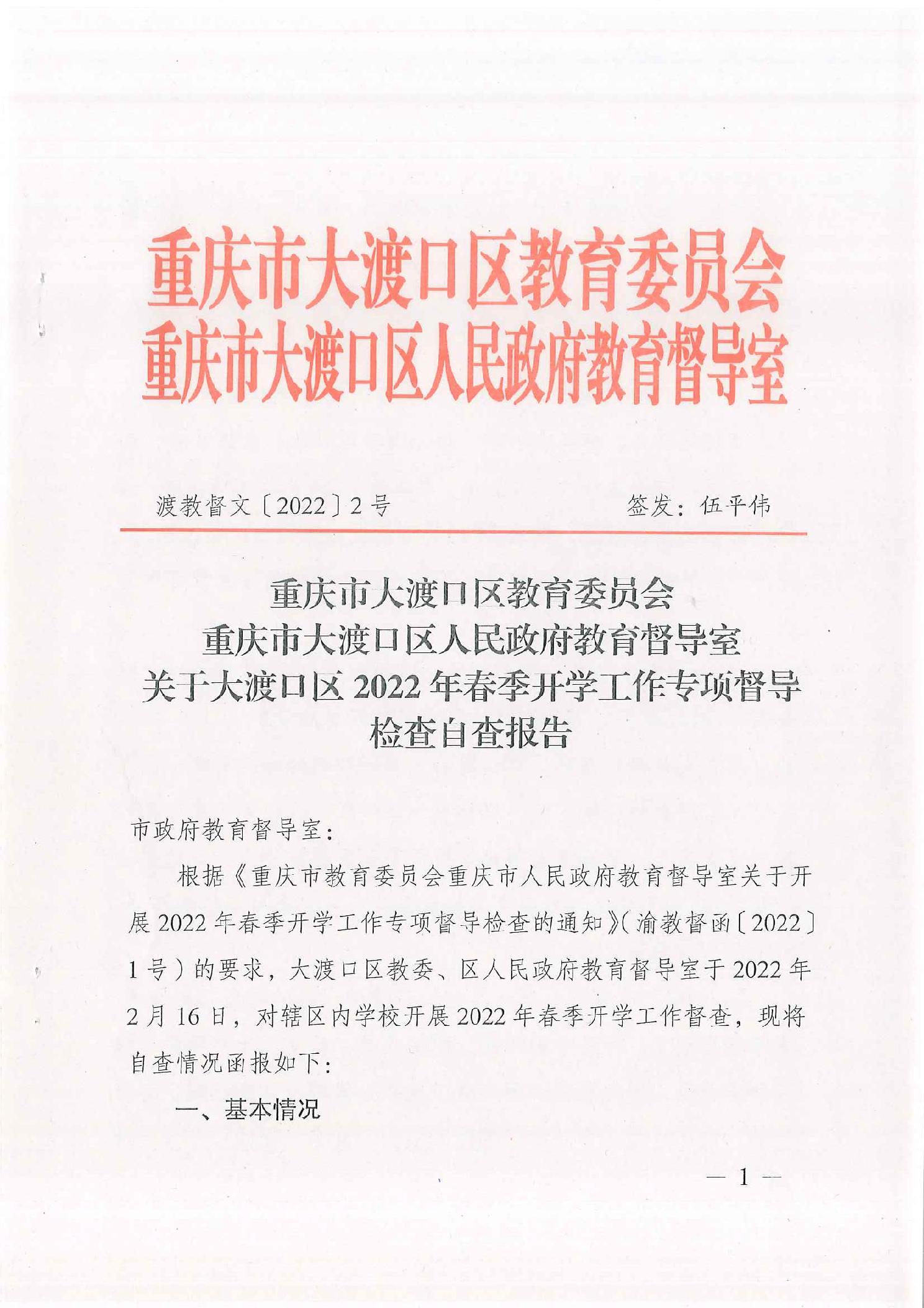重庆市大渡口区教育委员会重庆市大渡口区人民政府教育督导室关于大渡口区2022年春季开学工作专项督导检查自查报告.pdf