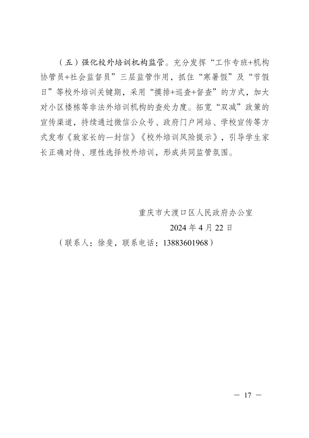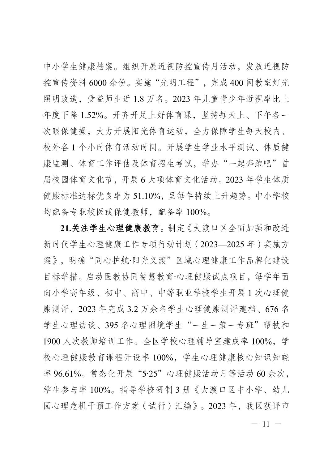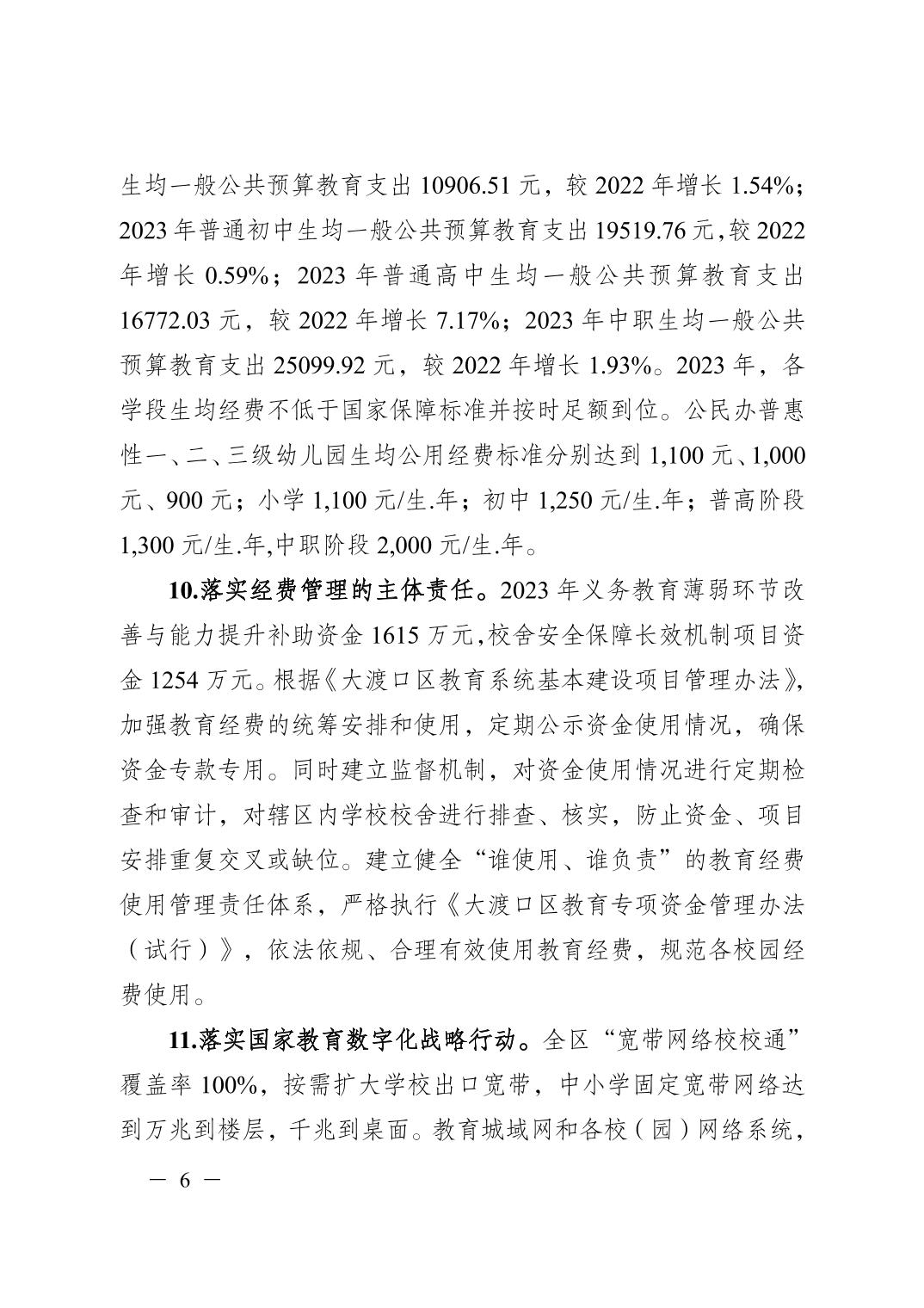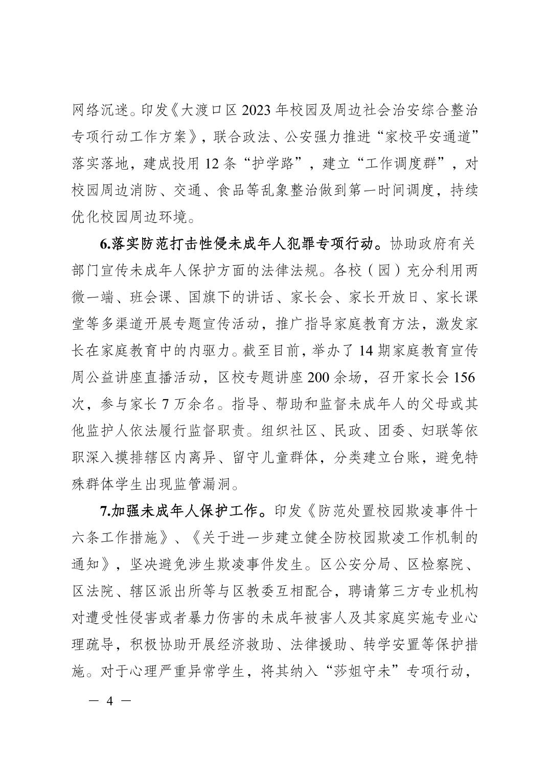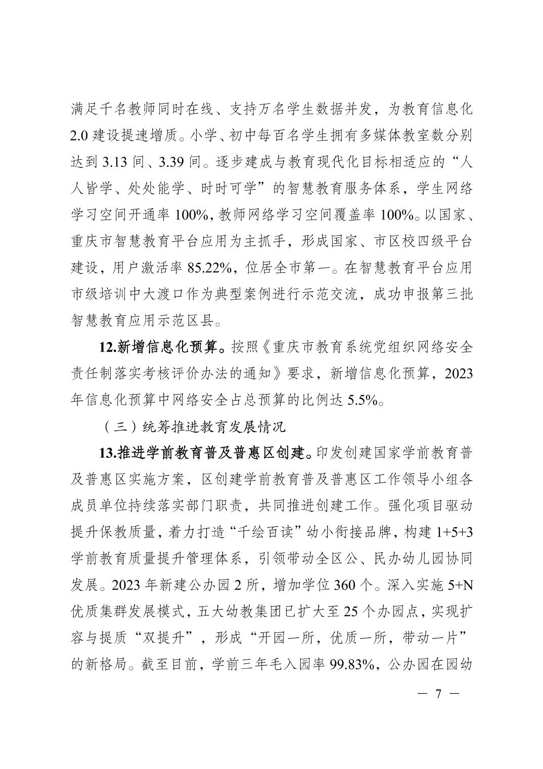 重庆市大渡口区人民政府办公室关于报送2024年履行教育职责情况自查自评报告的函
