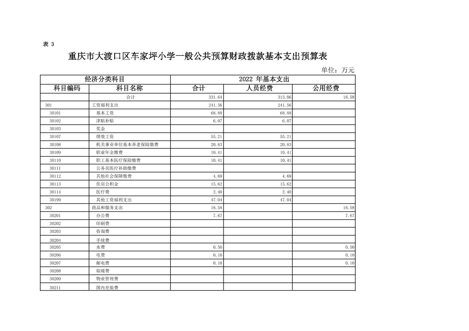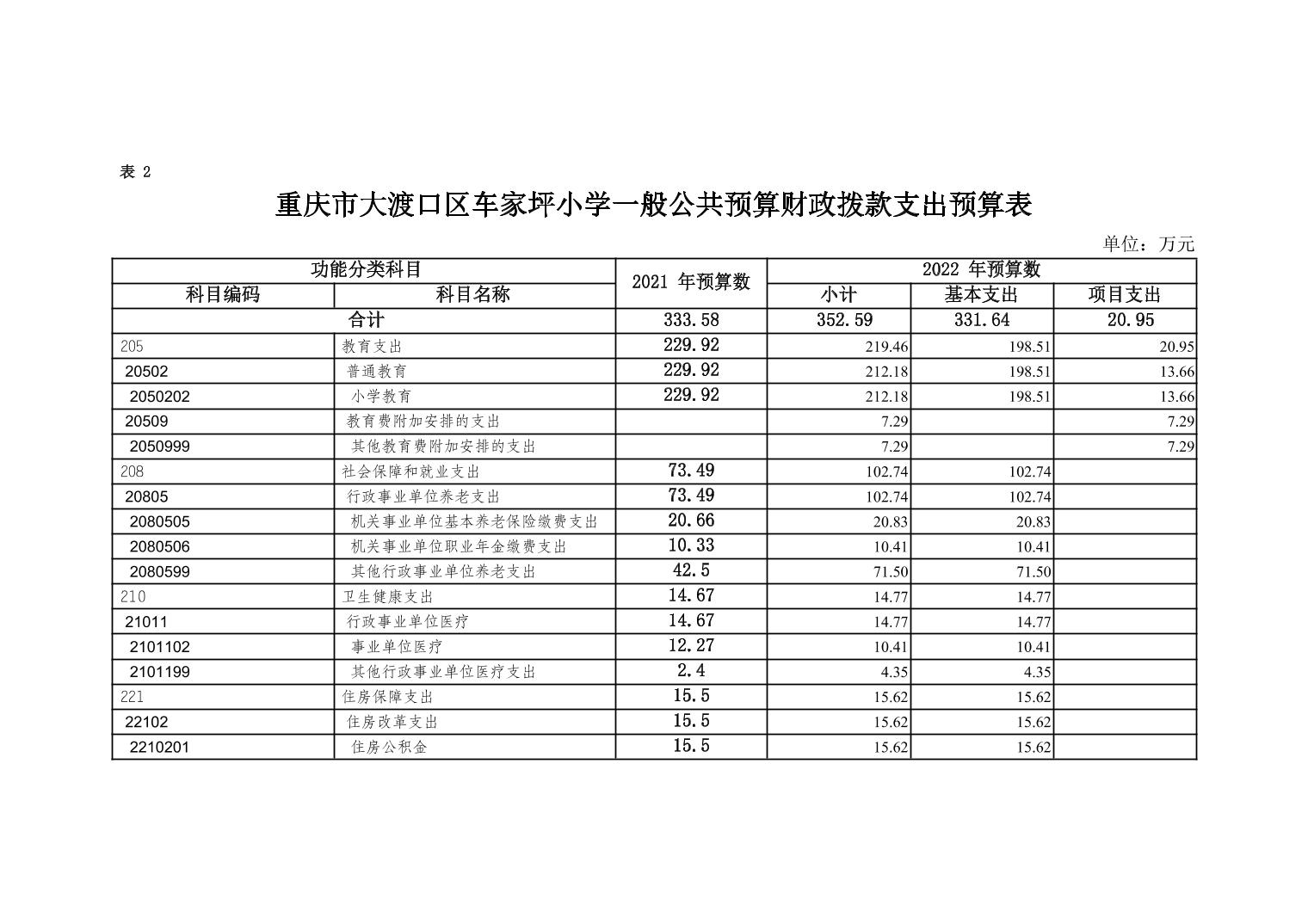 重庆市大渡口区车家坪小学2022年单位预算情况说明